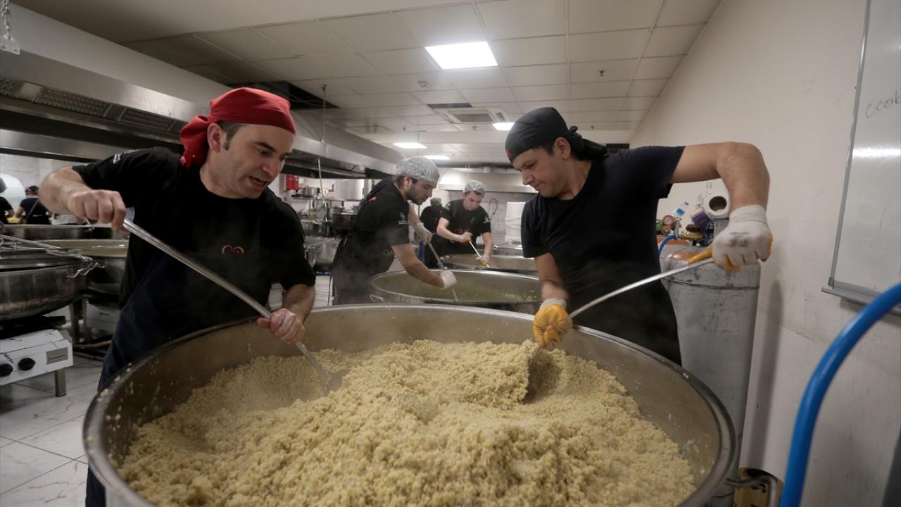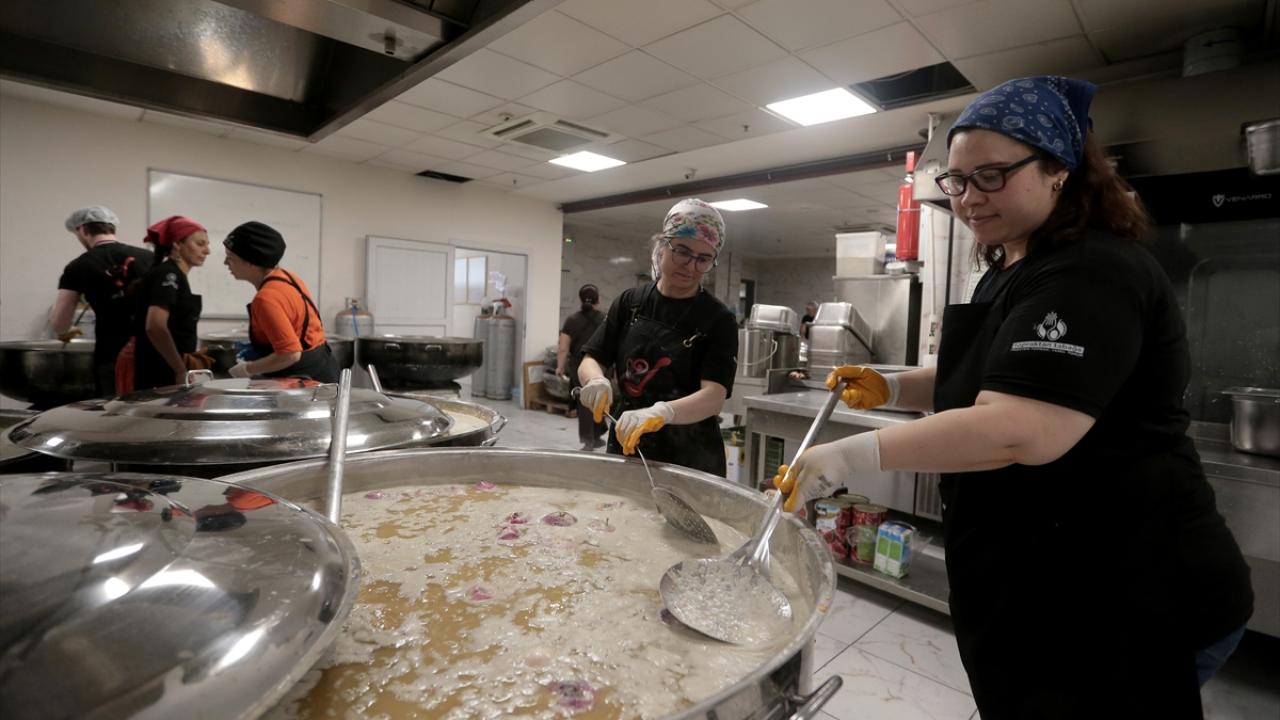 İlk depremlerden 4 gün sonra gönüllülerle Hatay`ın İskenderun ilçesine gelen iki şef, Muhyiddin İbni Arabi Erkek Öğrenci Yurdu`nun mutfağında Hataylı afetzedeler için yemek üretimini sabah, öğle, akşam ve sahur öğünleri için vardiya usulü sürdürüyor.