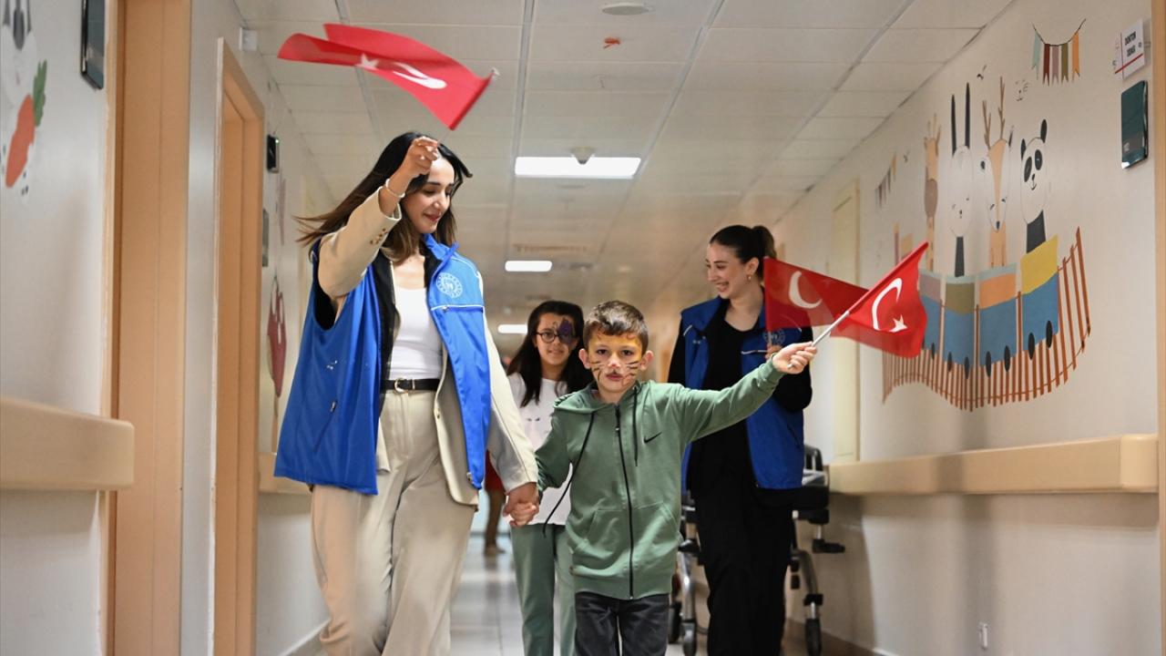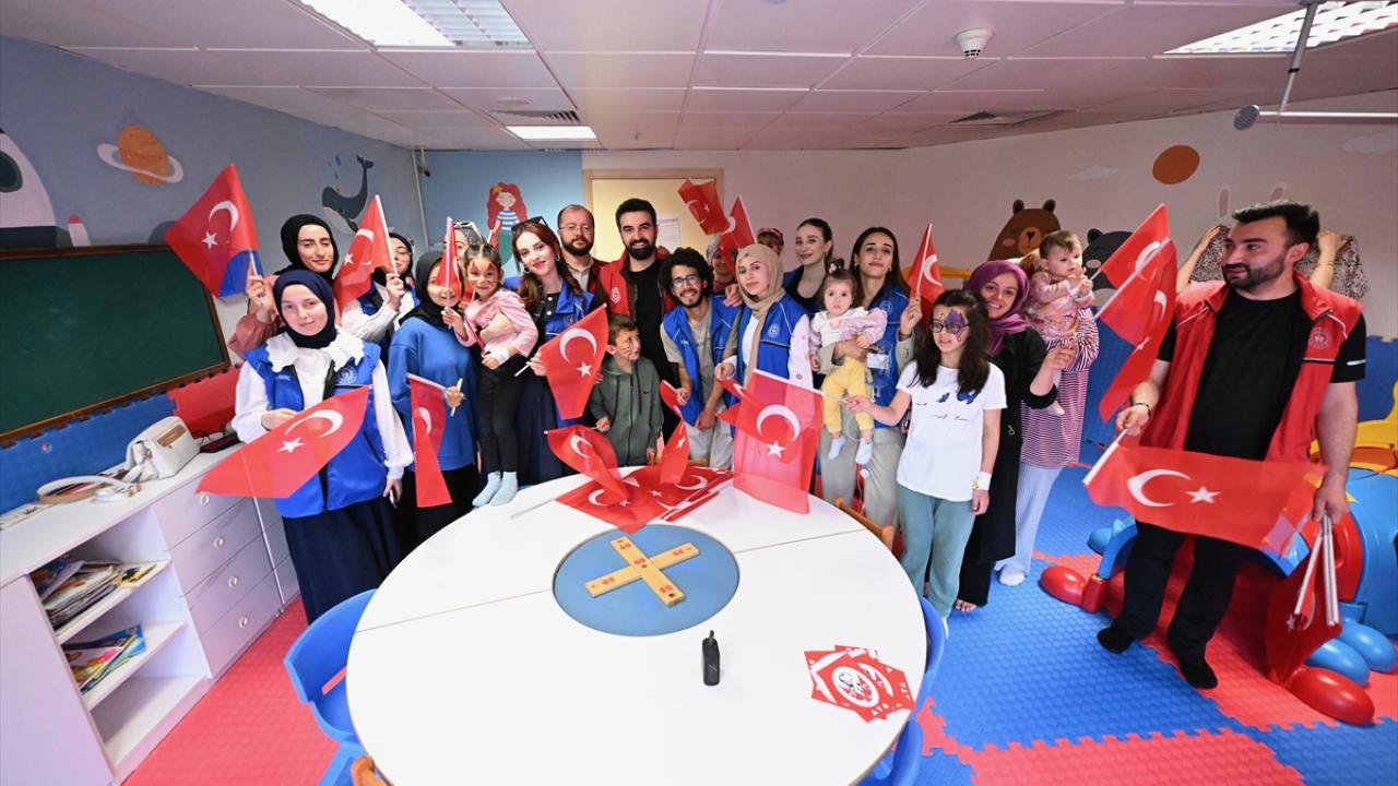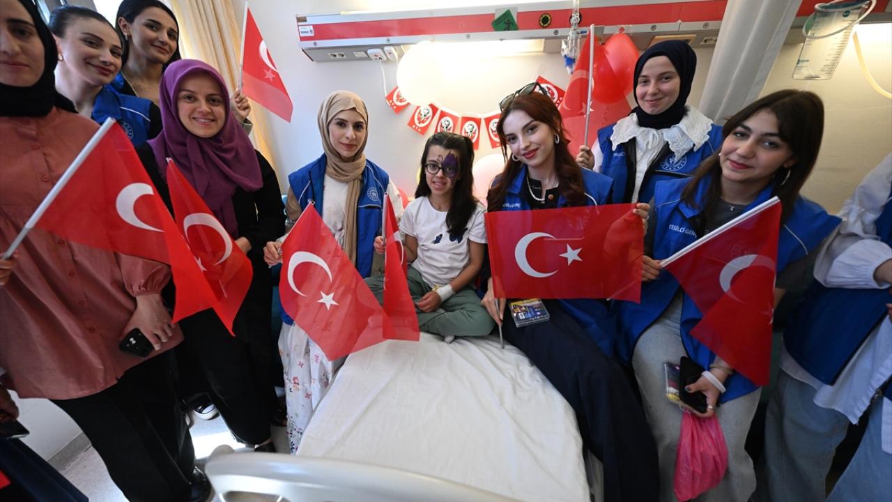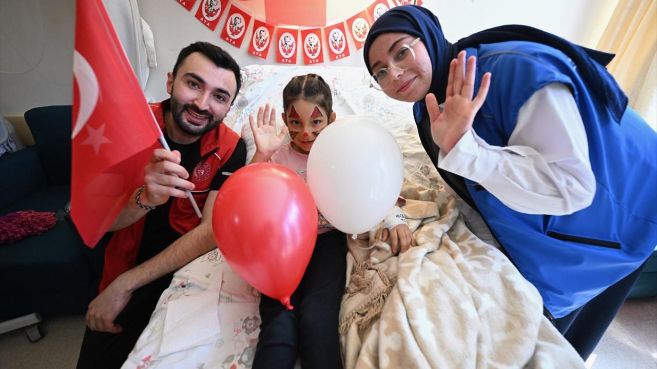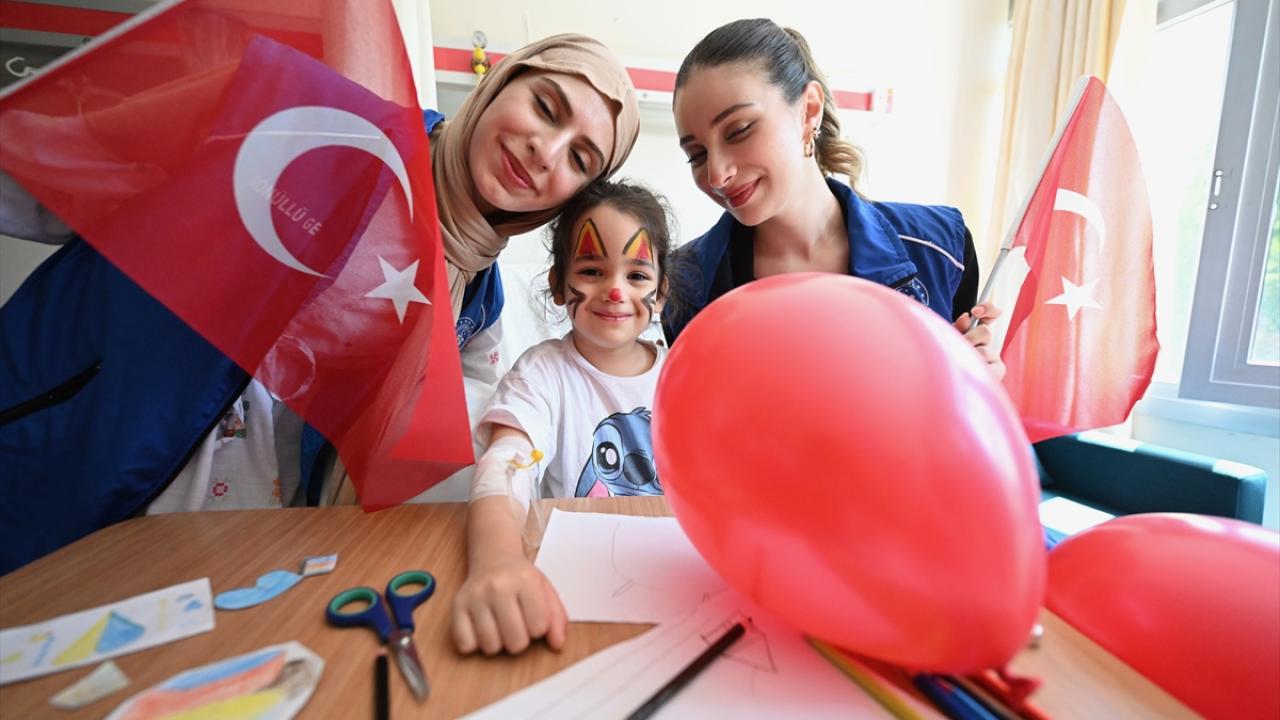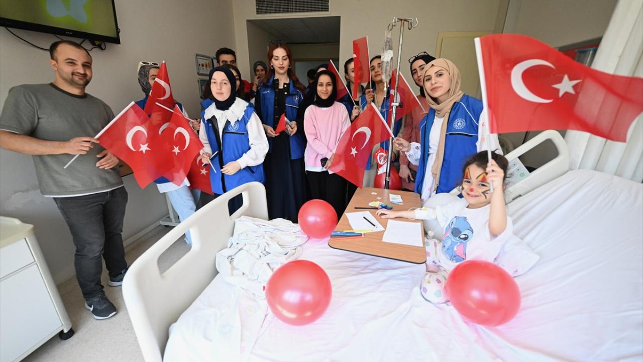 Çeşitli rahatsızlıkları nedeniyle bayramı hastanede geçirmek zorunda kalan çocukların odalarını Türk bayrağı ve balonlarla süsleyen gençler, çeşitli etkinliklerle çocukların gönüllerine dokunup, bayram coşkusu yaşamalarını sağlıyor.