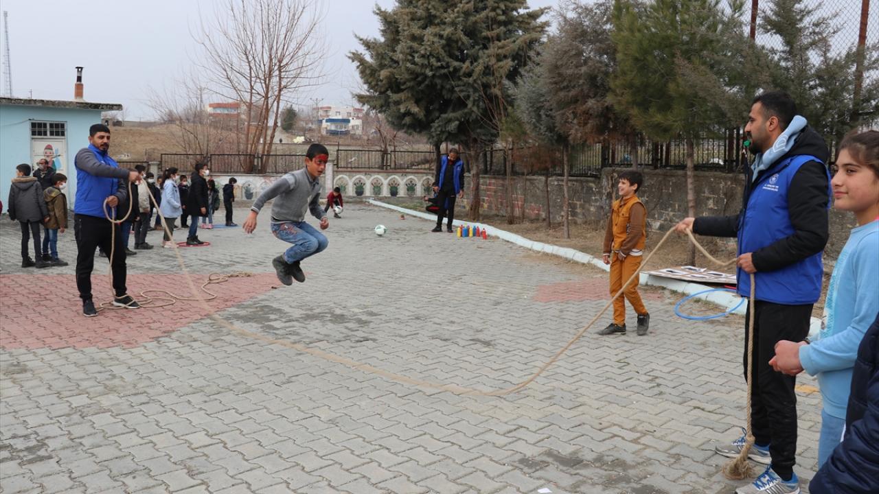 Beşiri ilçesi Yaylıca köyüne de giden gençler, okul bahçesinde düzenledikleri etkinlikte çocuklarla ip atladı, halat çekti, çuval yarışı yaptı, müzik eşliğinde oyunlar oynadı.