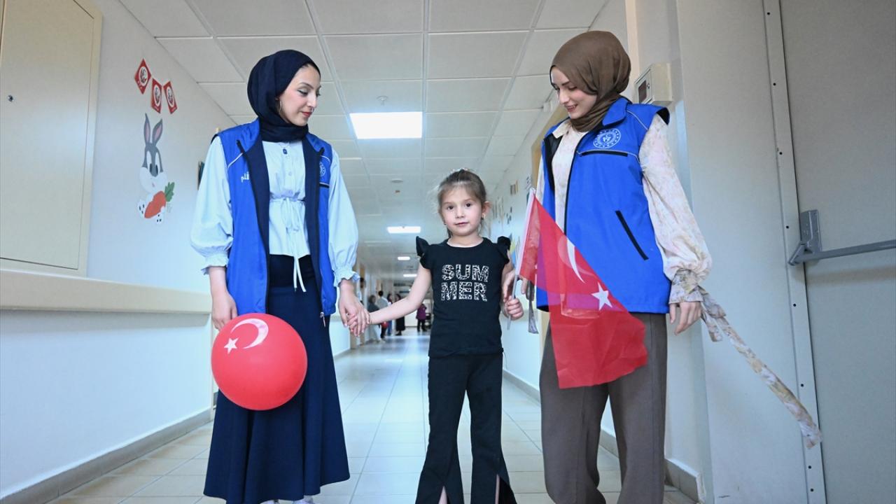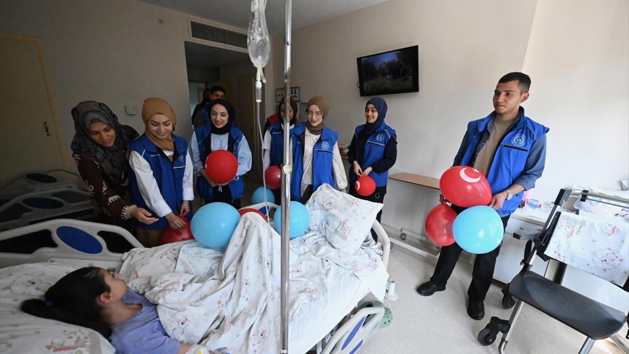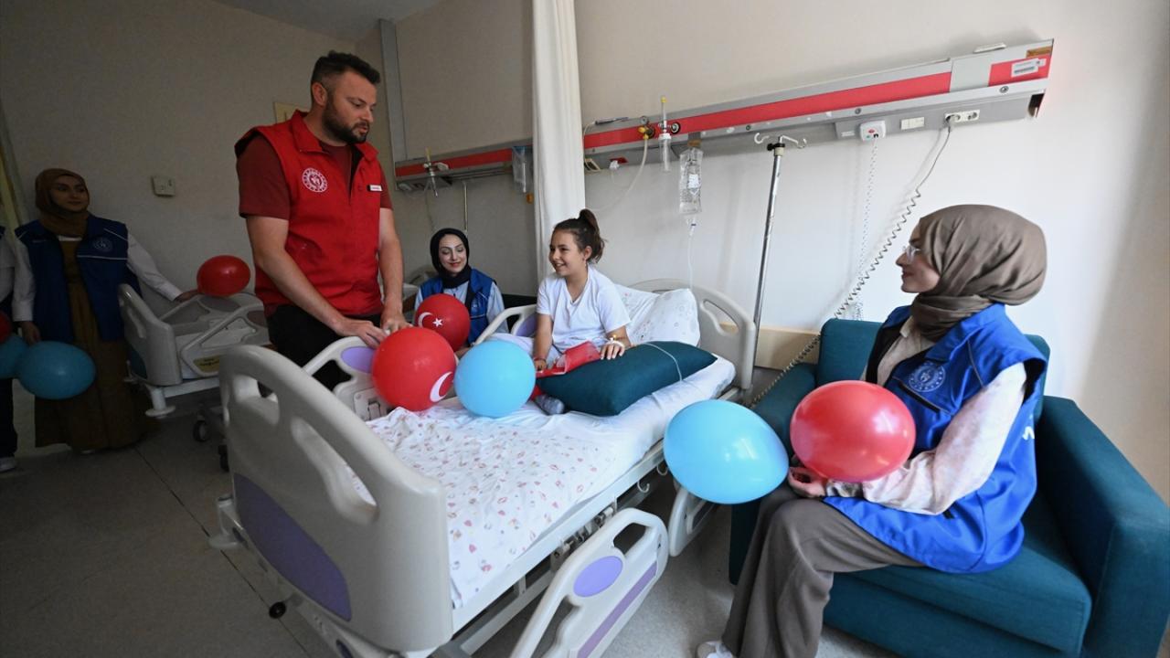 Rahatsızlıkları nedeniyle okula gidemeyen çocukları, tedavi gördüğü hastane odalarında ellerinde balonlarla ziyaret eden Gençlik Merkezi gönüllüleri, onlara karnelerinin yanı sıra çeşitli hediyeler verdi.