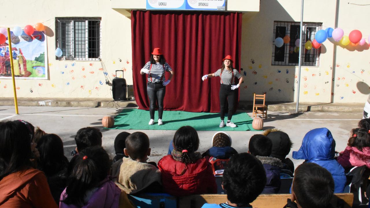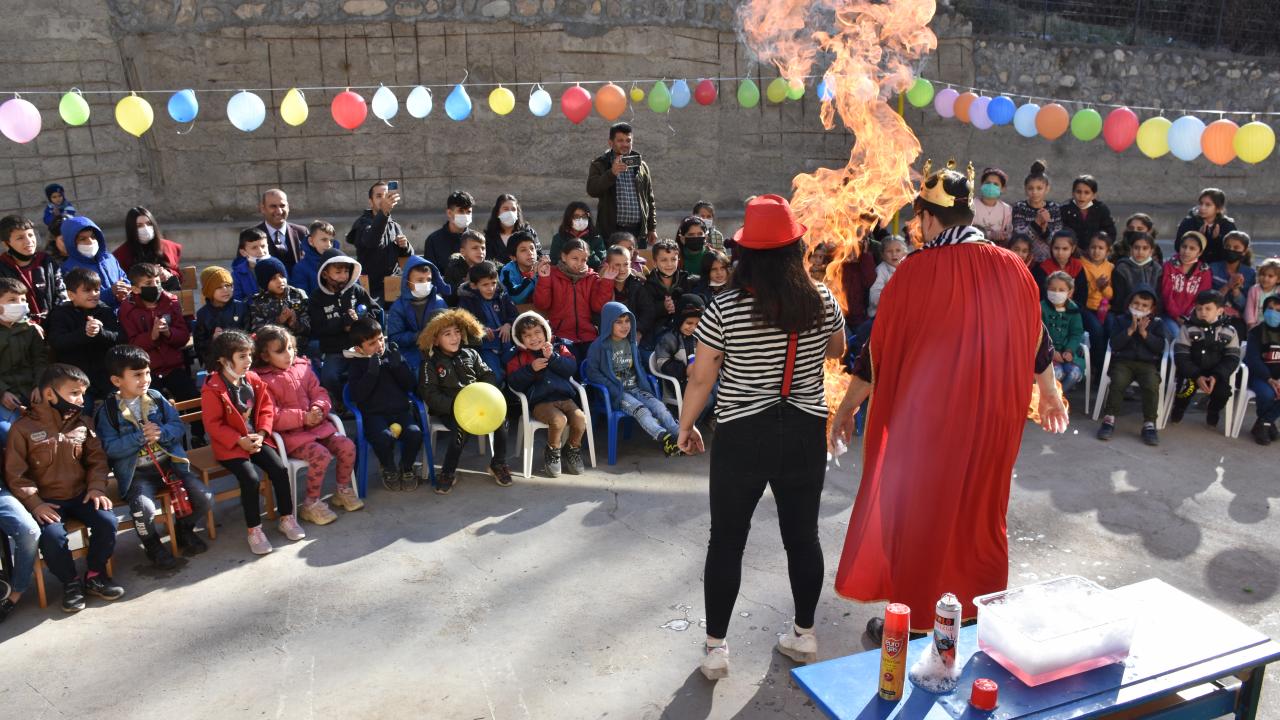 Valilik ve İlçe Milli Eğitim Müdürlüğünün desteğiyle düzenlenen etkinliklerde, öğretmenler çocuklara çeşitli hediyeler de veriyor.