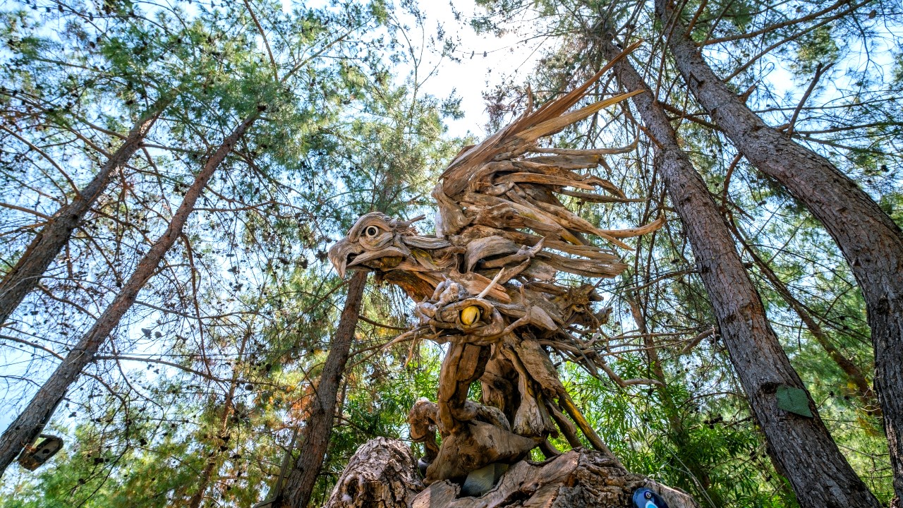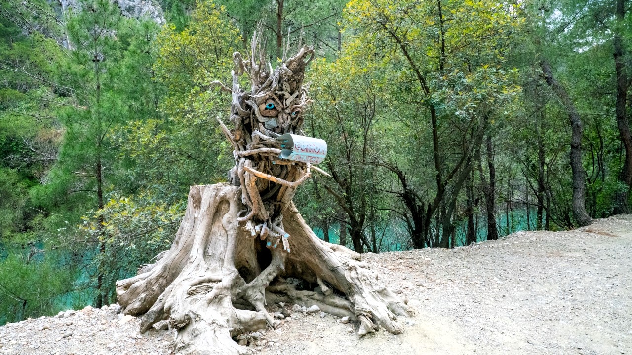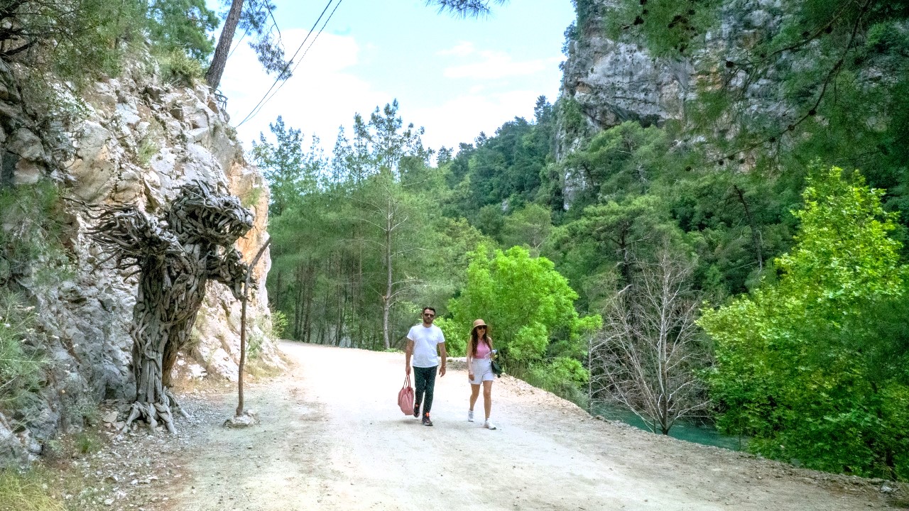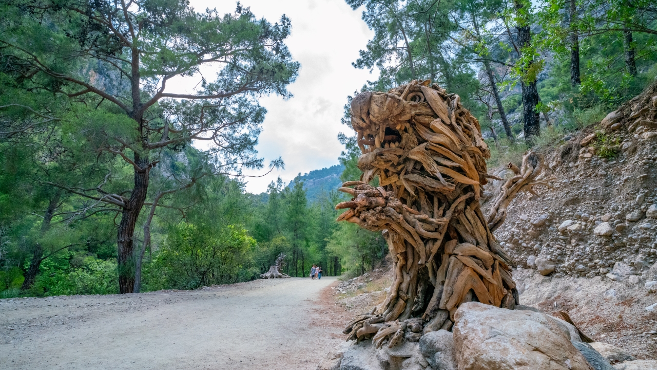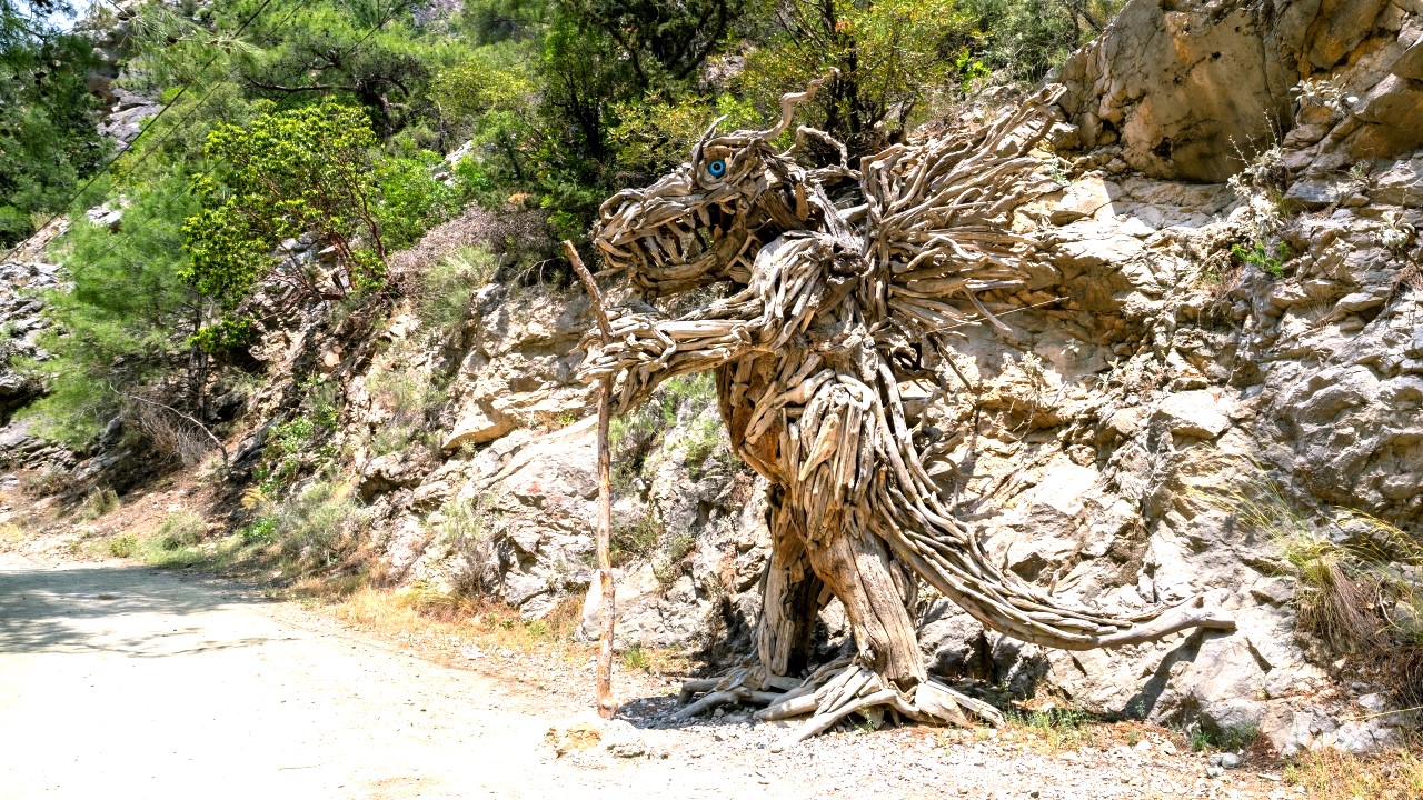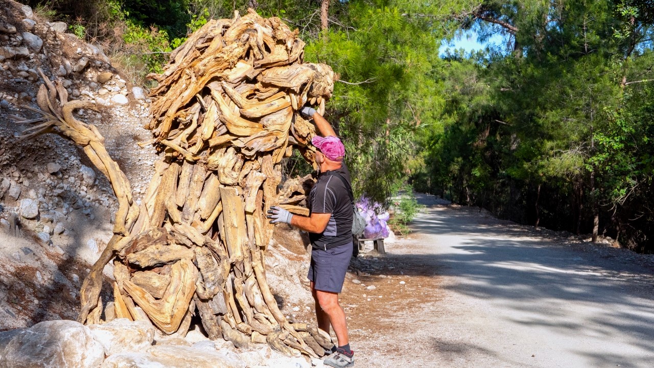 Antalya'da yaşayan Rus sanatçı Mikhail Tchernega'nın ağaç parçalarından yaptığı ve Göynük Kanyon yolu üzerinde sergilediği heykelleri çevreye güzellik katıyor.