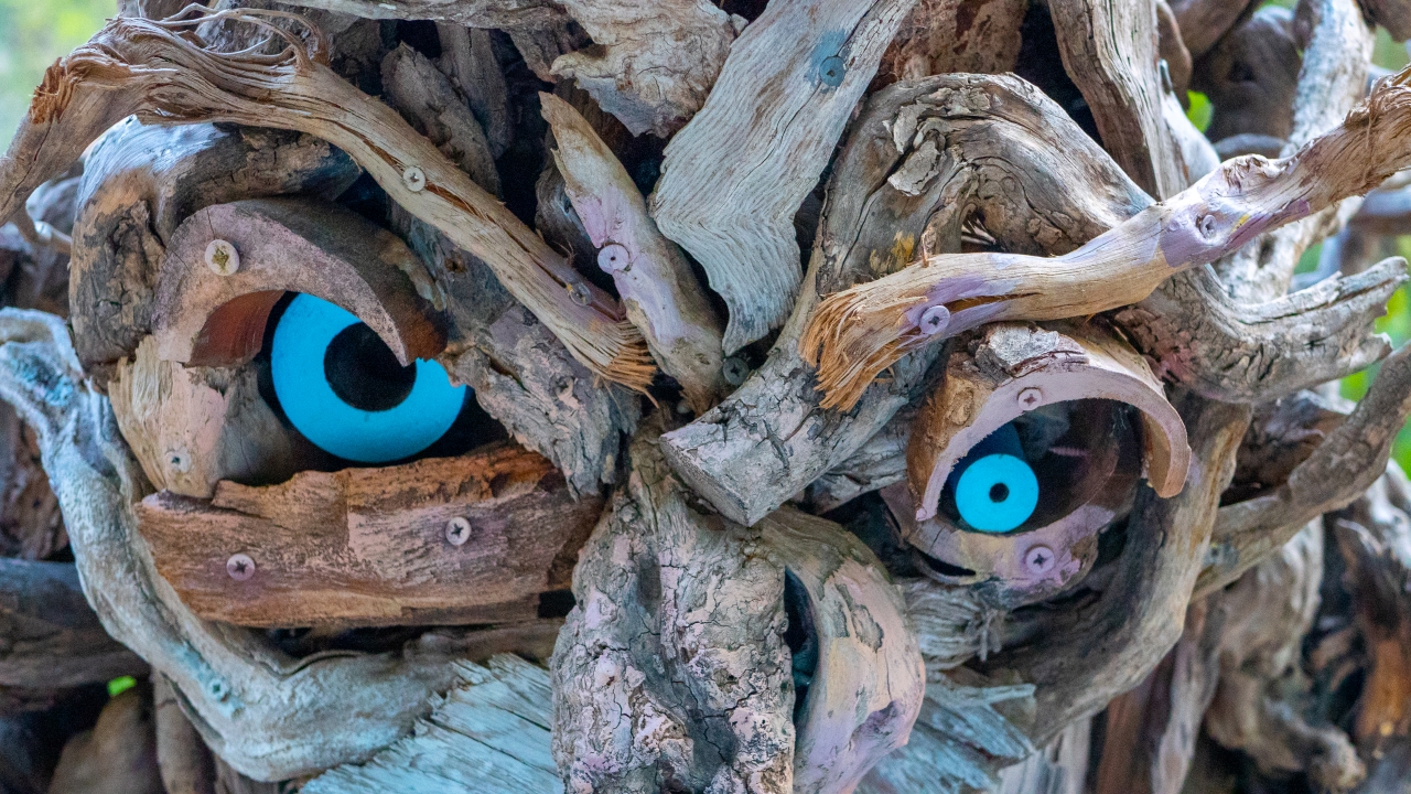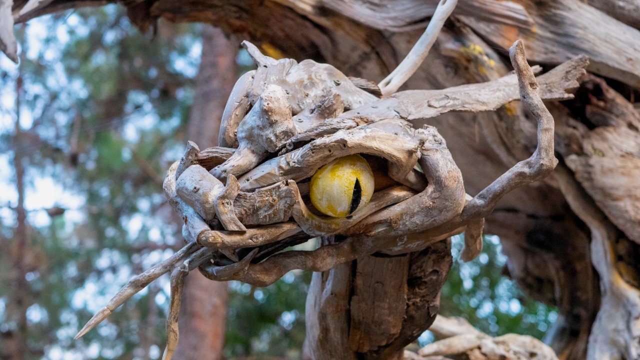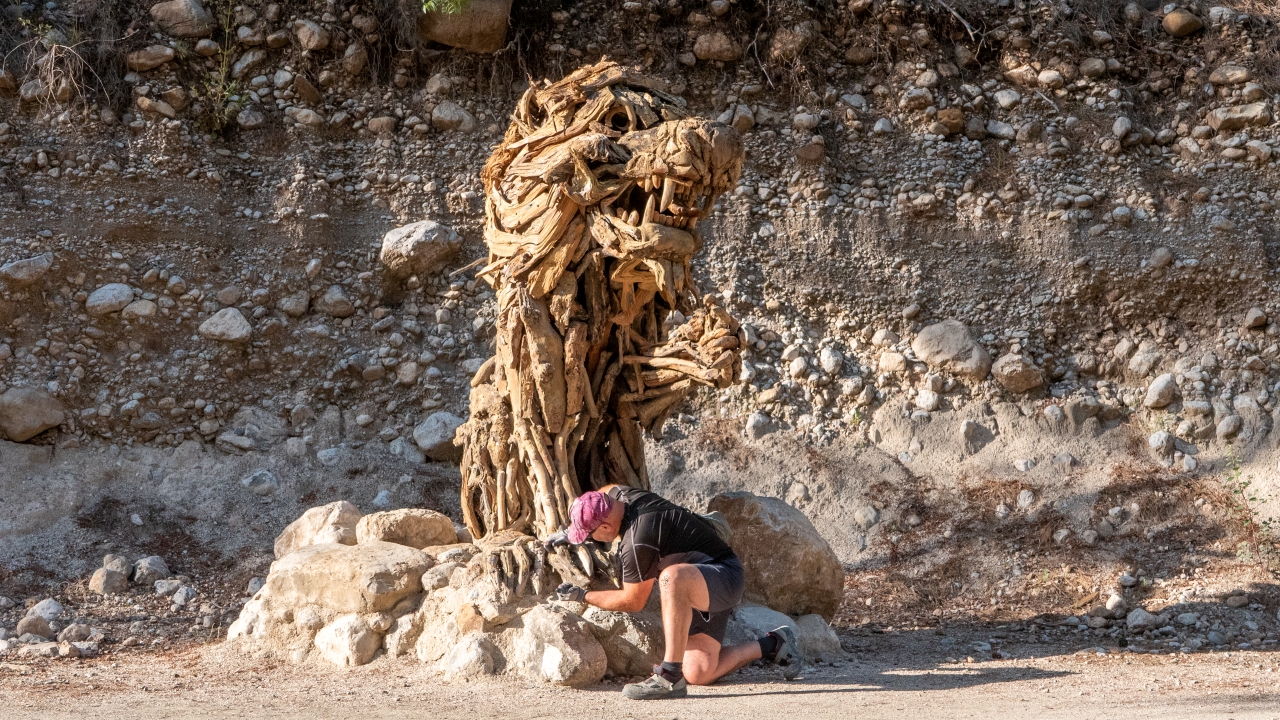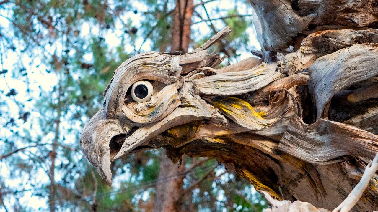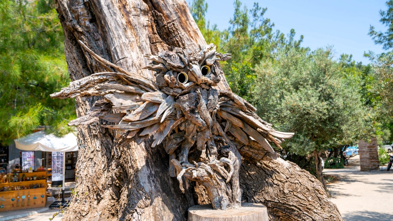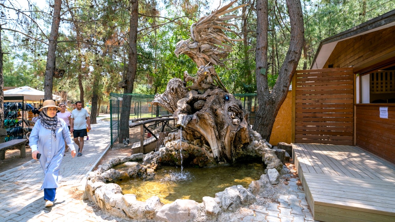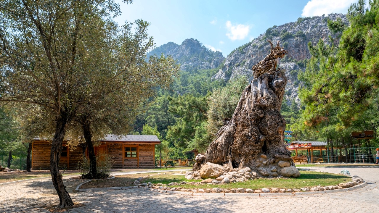 Antalya'da yaşayan Rus sanatçı Mikhail Tchernega'nın ağaç parçalarından yaptığı ve Göynük Kanyon yolu üzerinde sergilediği heykelleri çevreye güzellik katıyor.