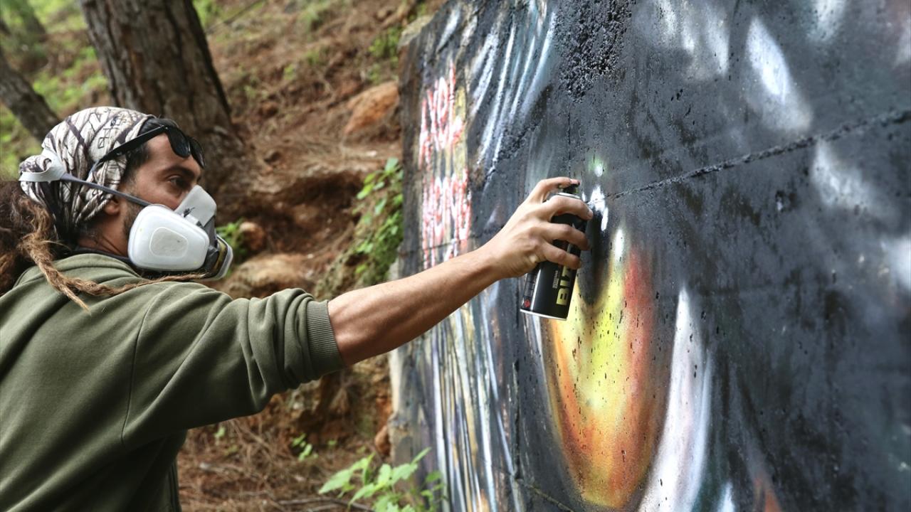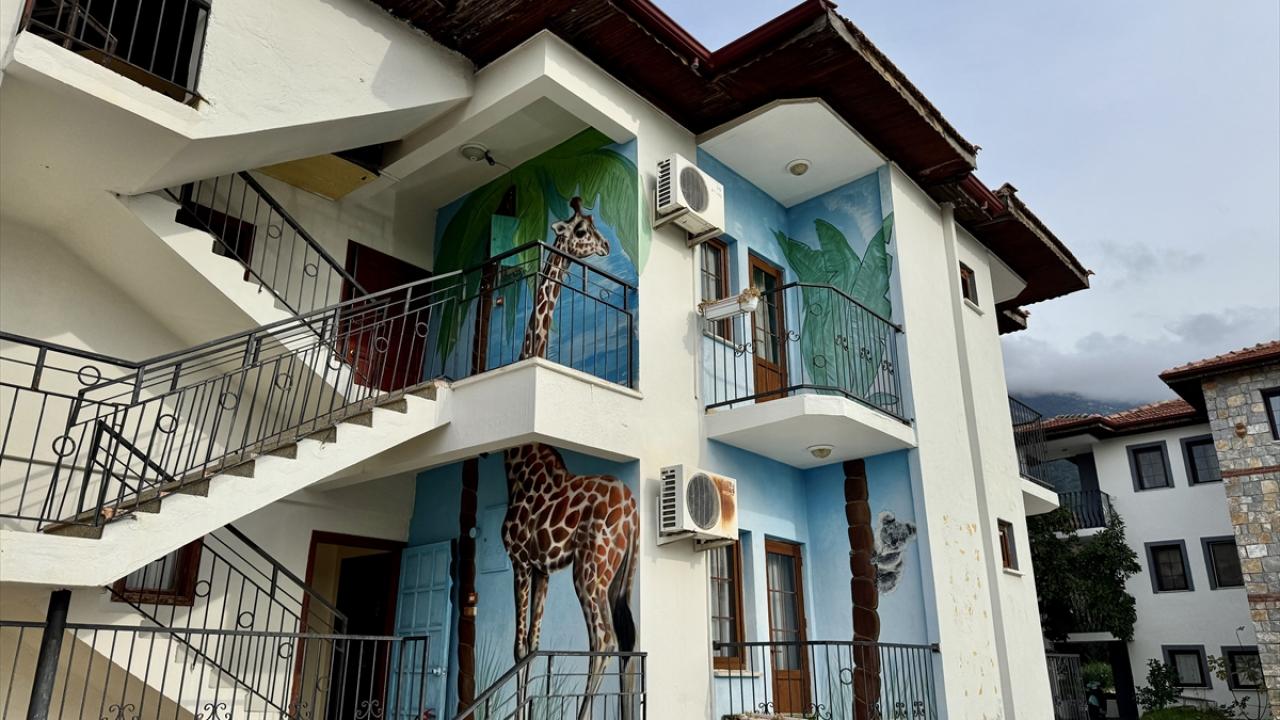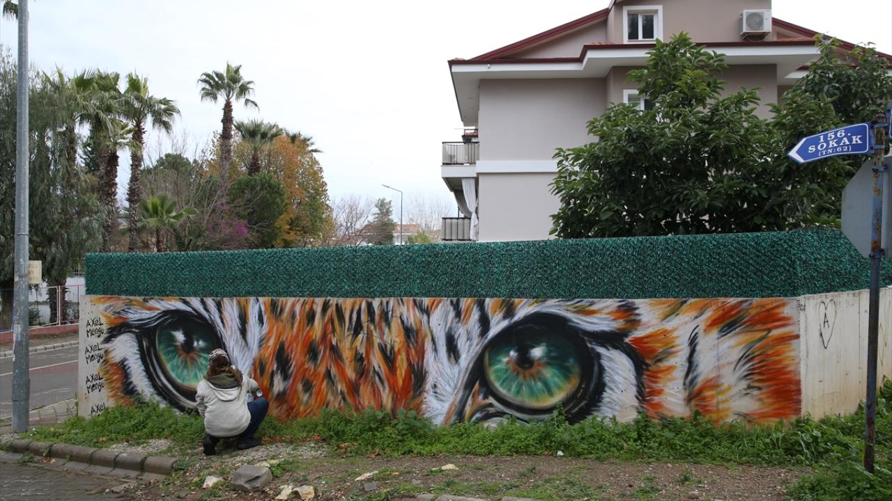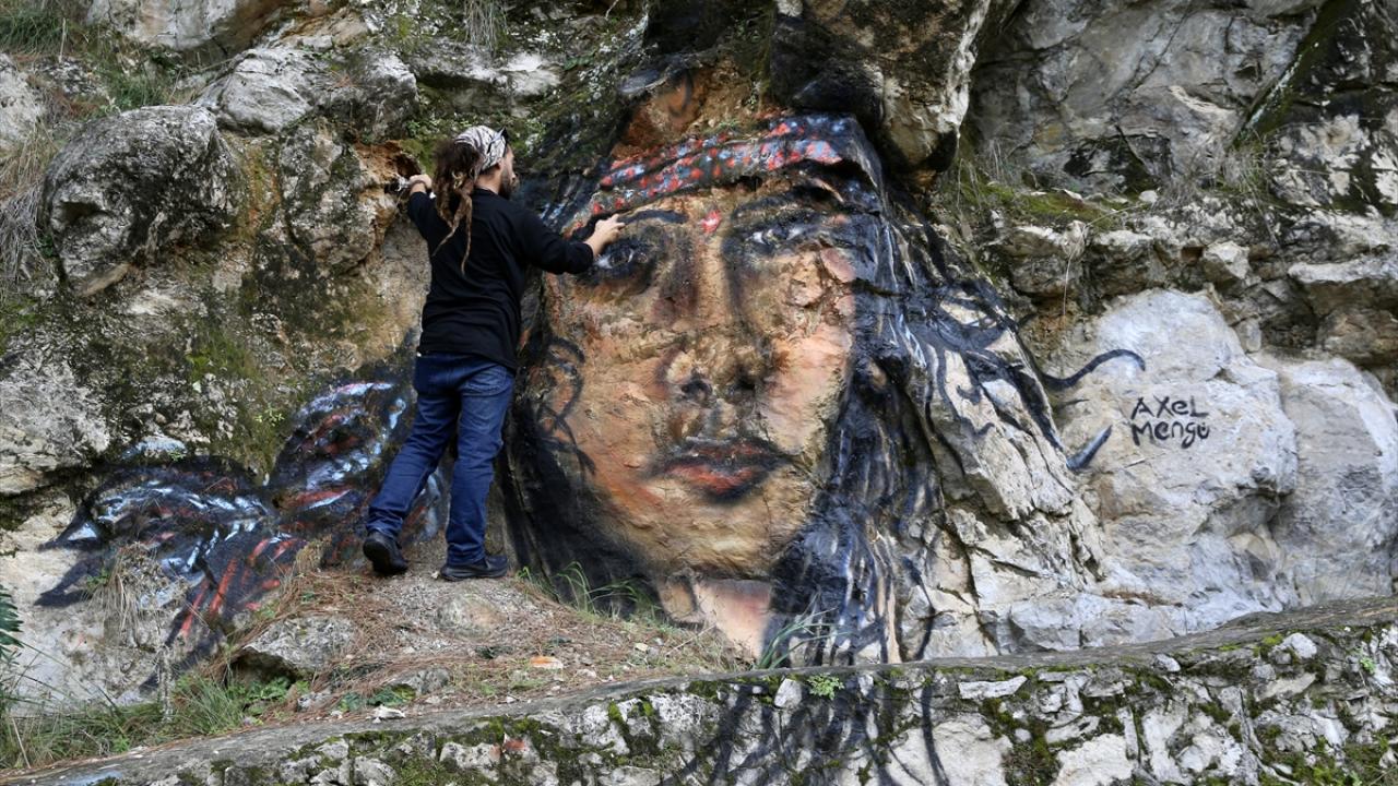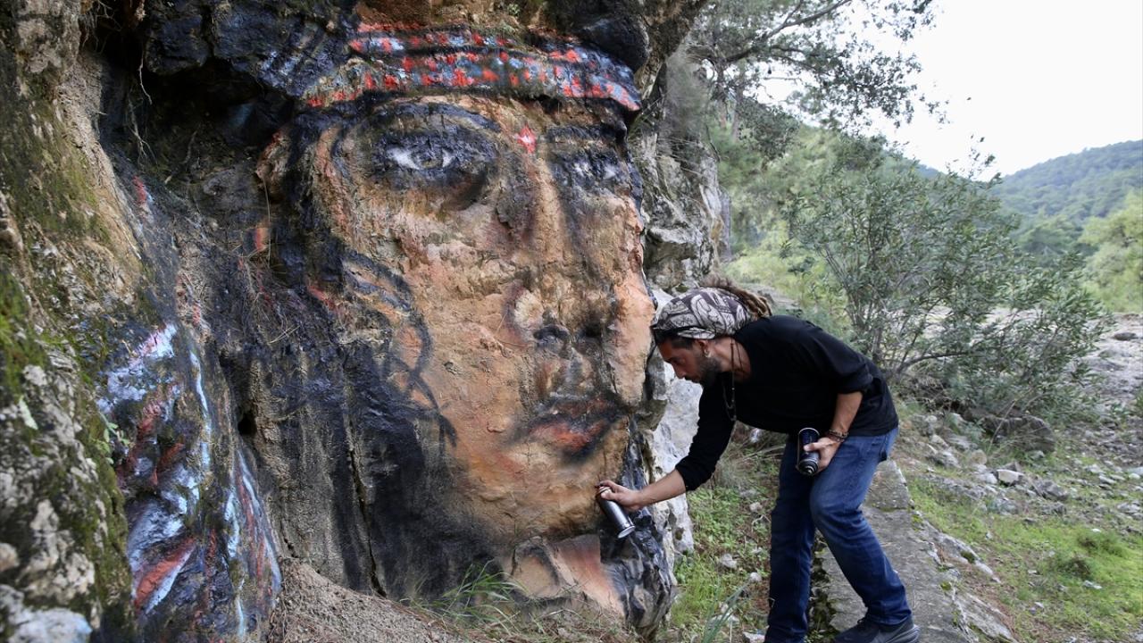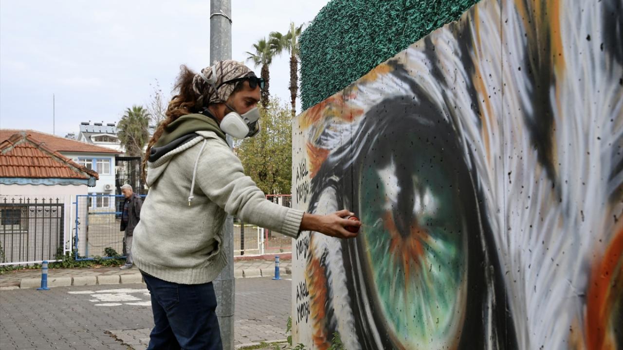 Halk dilinde "grafiti" olarak bilinen duvar resimleri yapan mural sanatçısı Axel Mengü, Muğla'nın turistik ilçesi Fethiye'de trafo, bina duvarları ile kayaları kendi imkanlarıyla renklendiriyor.