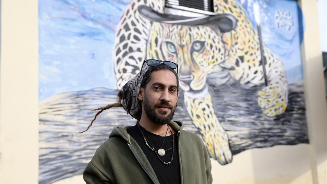 "Grafiti" sanatçısı Axel Mengü, turistik ilçeye renk katıyor