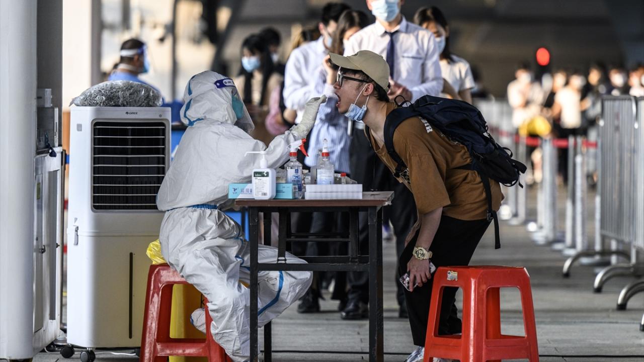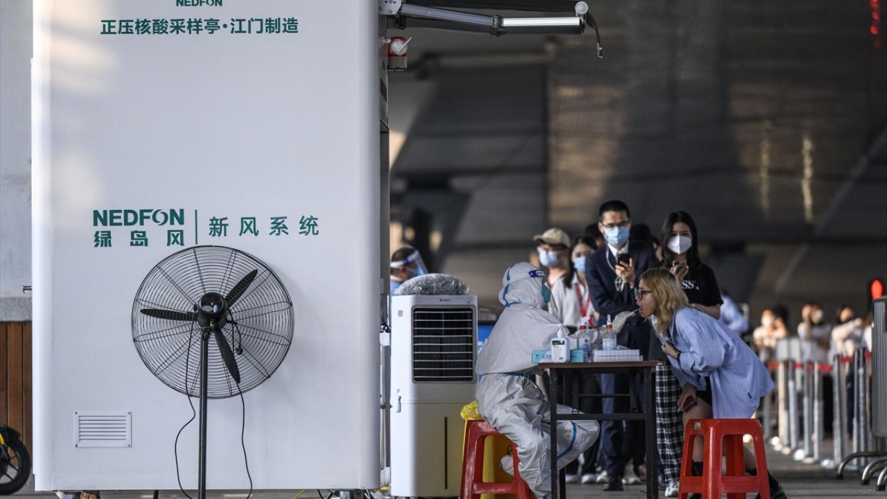 Fotoğrafta, geçici COVID-19 test merkezlerinde vatandaşlara nükleik asit testi uygulanırken görüntülendi.