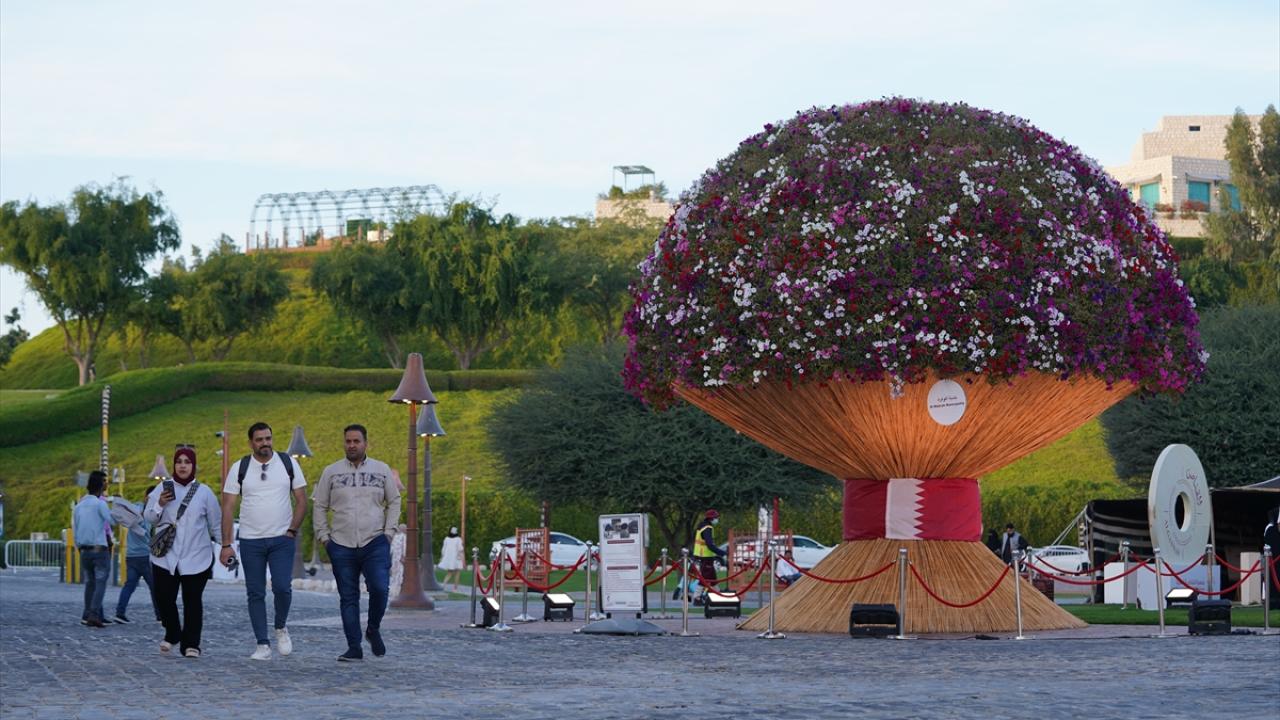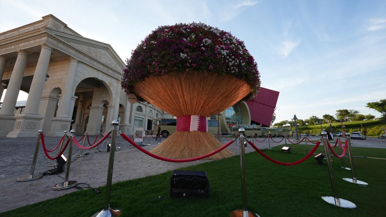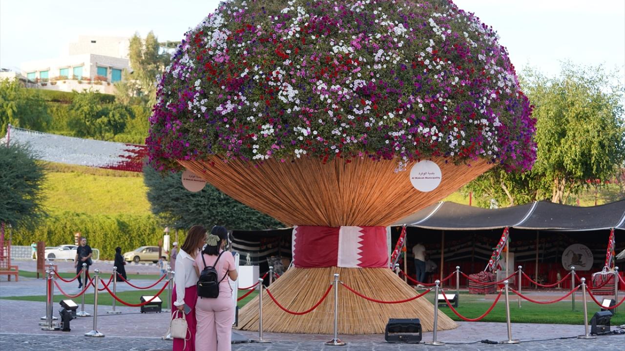Guinness Rekorlar Kitabı'na giren dünyanın en büyük doğal buketi, Katar'ın başkent Doha'daki Katara Kültürel Köyü'nde sergileniyor.