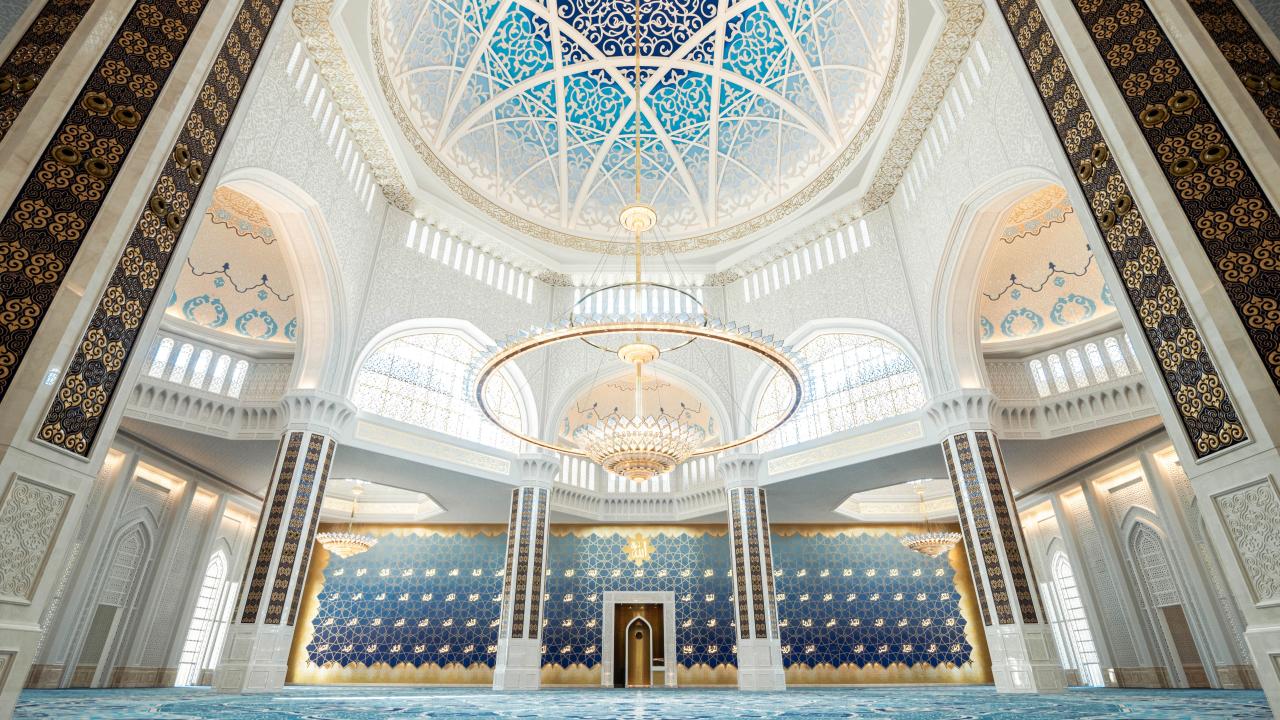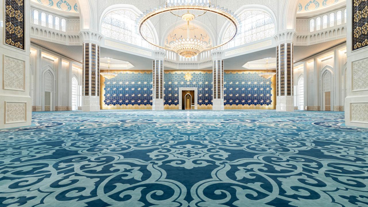 Görkemli mimarisi ve heybetli yapısıyla Nur Sultan şehrinin birçok yerinden görülebilen Nur Sultan Büyük Camii, türünün dünyadaki en büyük örneklerini bir arada bulundurması ile Guinness Dünya Rekorlarına aday.