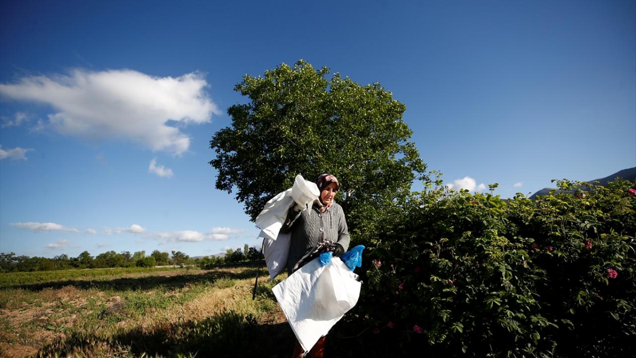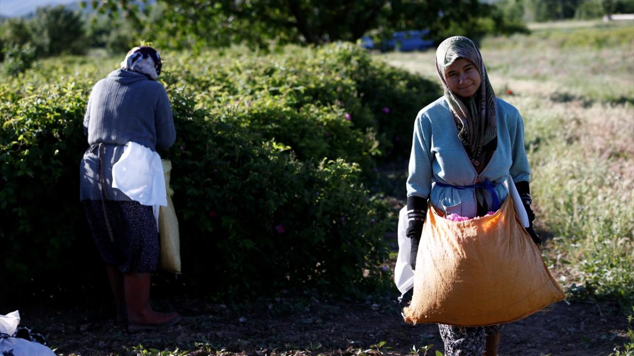 Sabahın erken saatlerinde evlerinden çıkarak servislerle gül bahçelerine gelen kadın işçiler, günün ilk ışıklarıyla gül çiçeği toplamaya başlıyorlar. Bellerine bağladıkları çuvallarla istenilen büyüklüğe ulaşmış gül çiçeklerini büyük bir özenle toplayan üreticiler, kilogram başına ortalama 12-13 lira kazanıyor.