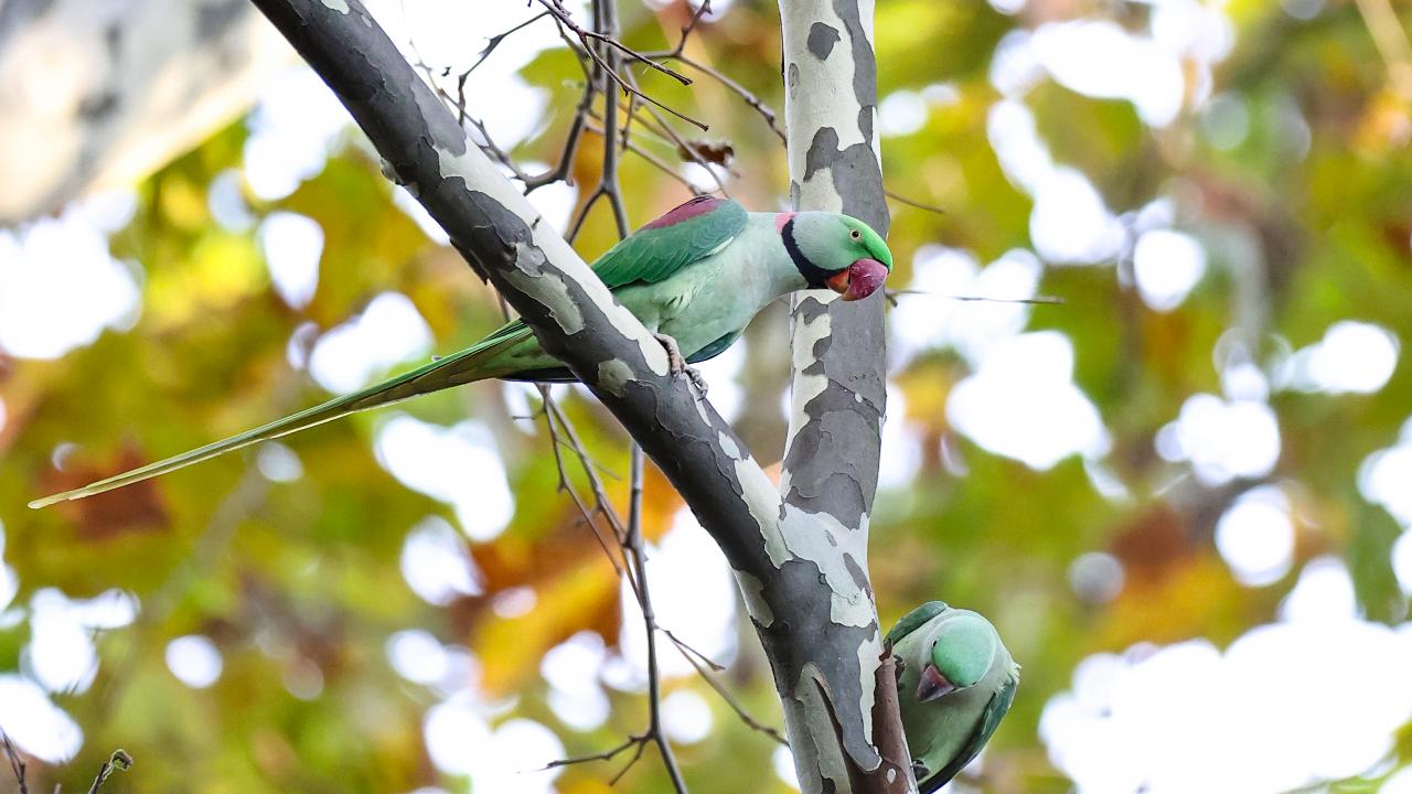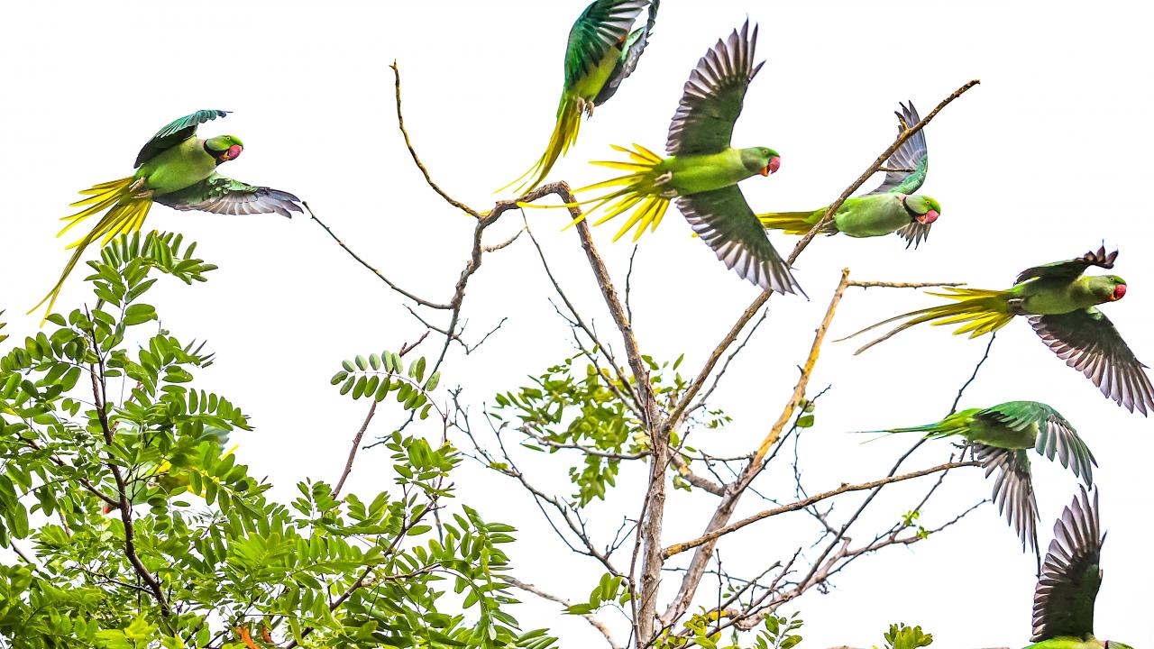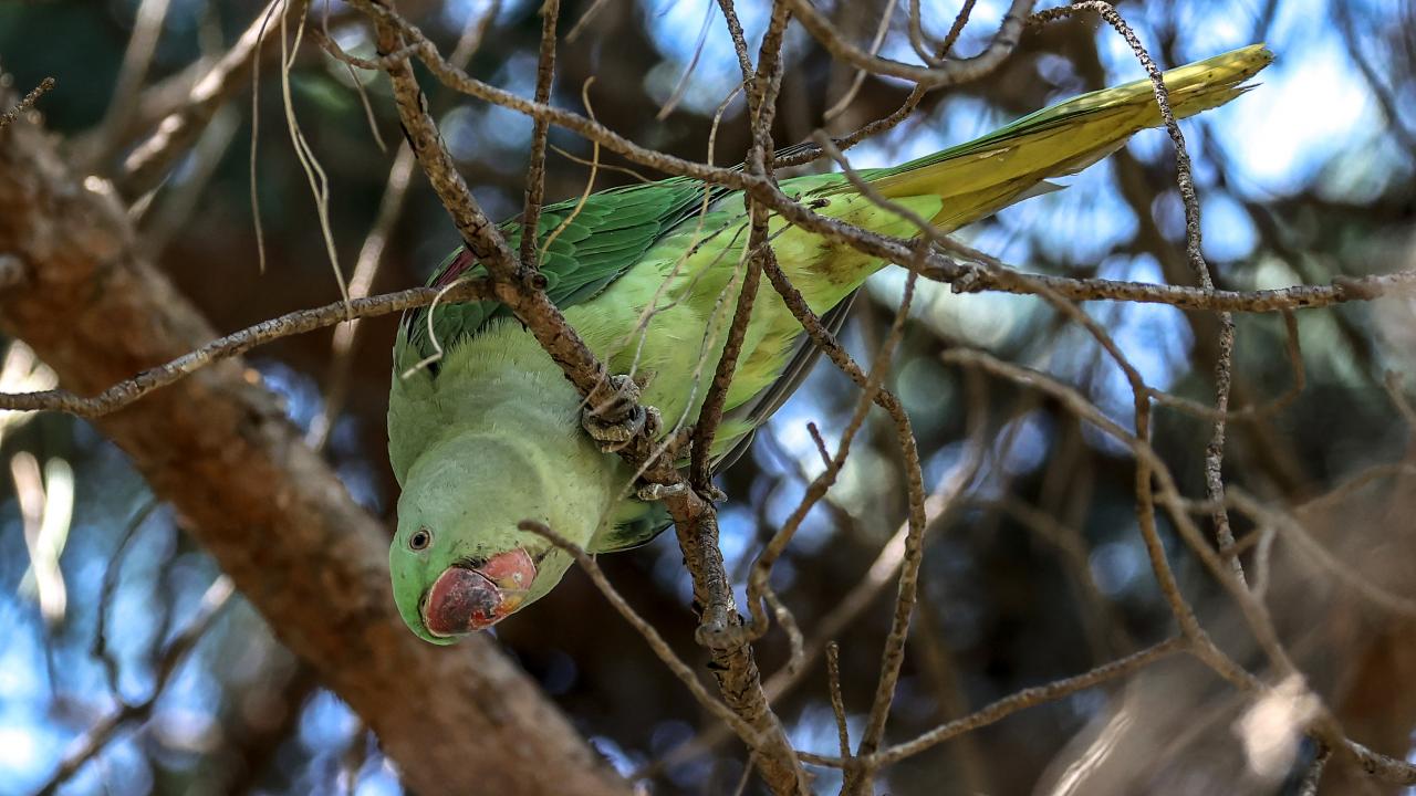 İstanbul'da özellikle parklar, korular ve yeşil alanlarda sıkça görülen yeşil papağanlar (Psittacula Krameri) en sık görüldükleri Gülhane parkında görüntülendi.