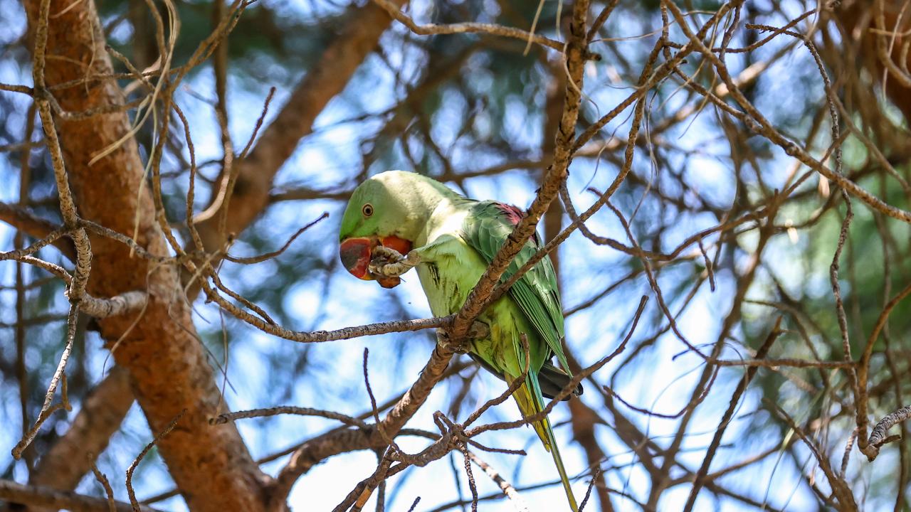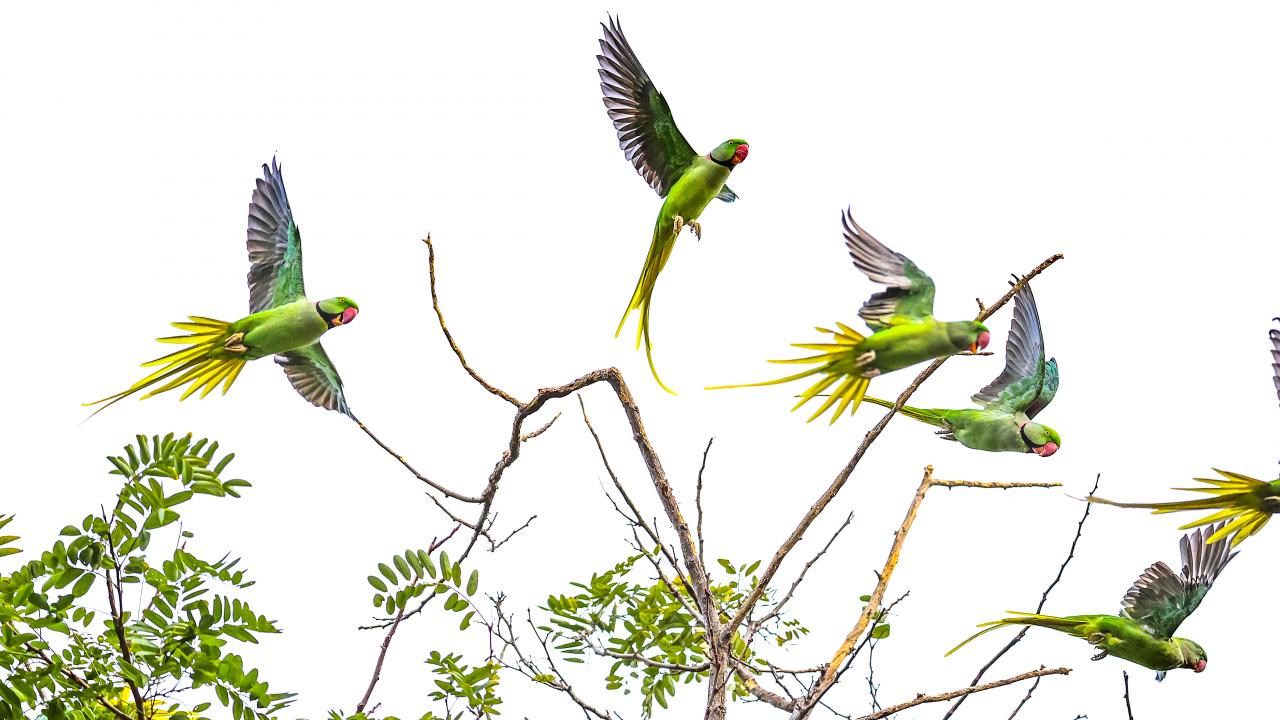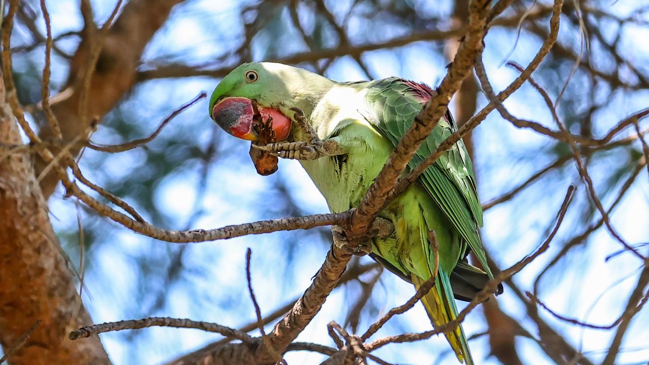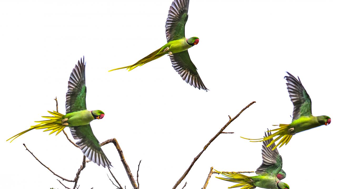 İstanbul'da özellikle parklar, korular ve yeşil alanlarda sıkça görülen yeşil papağanlar (Psittacula Krameri) en sık görüldükleri Gülhane parkında görüntülendi.