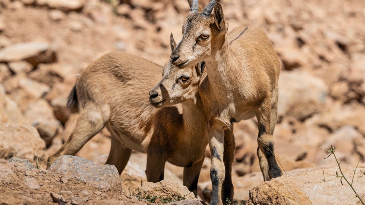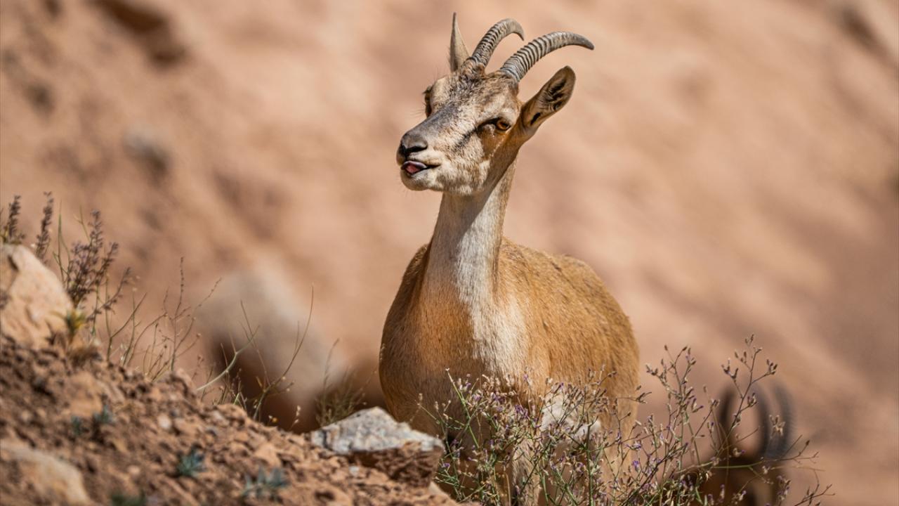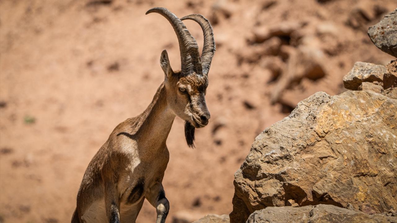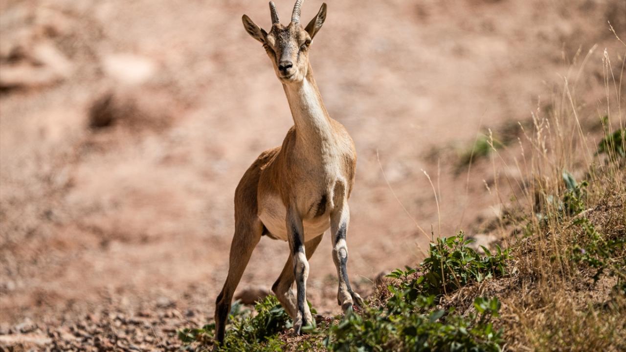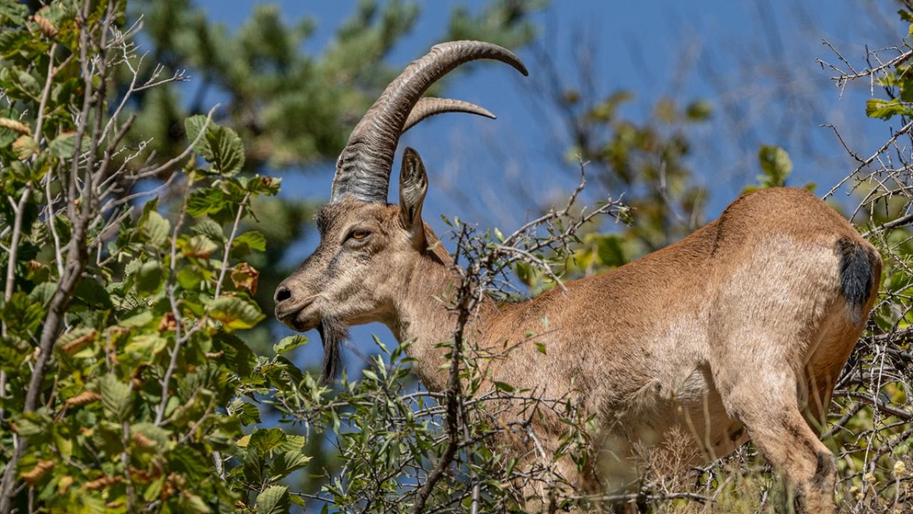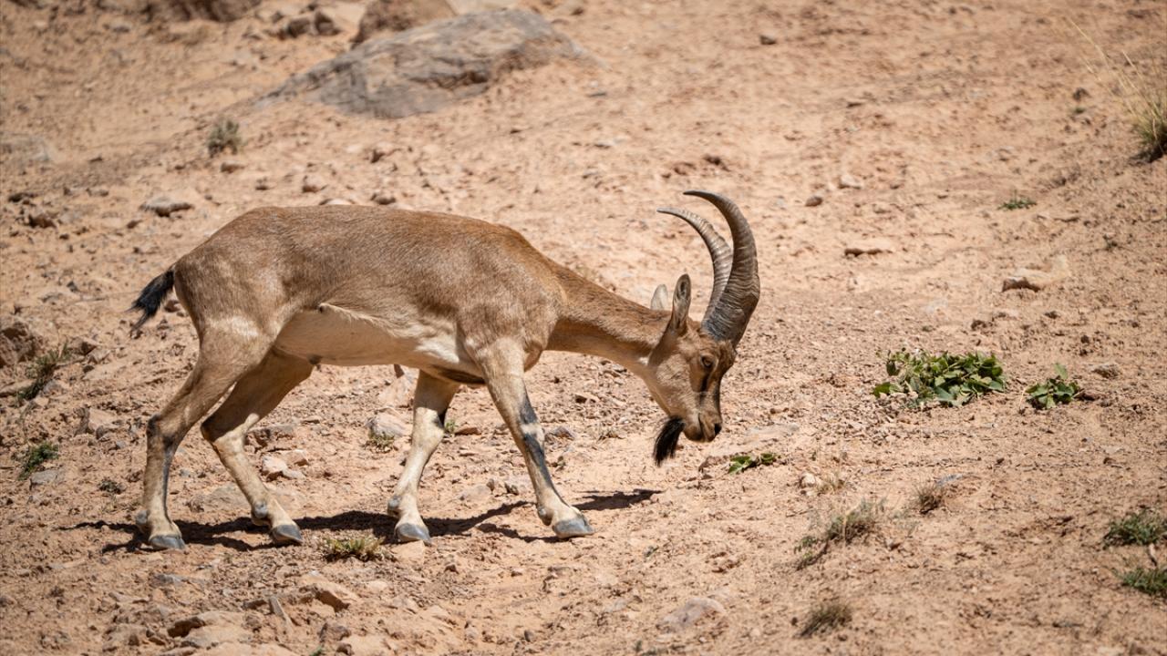 Zorlu arazi koşullarında beslenen ve zaman zaman yüksek kayalıklara tırmanan yaban keçileri, sürünün olgun üyeleri ve ilk kışını yaşayacak oğlaklarıyla yoluna devam ediyor.