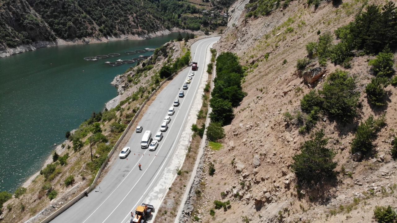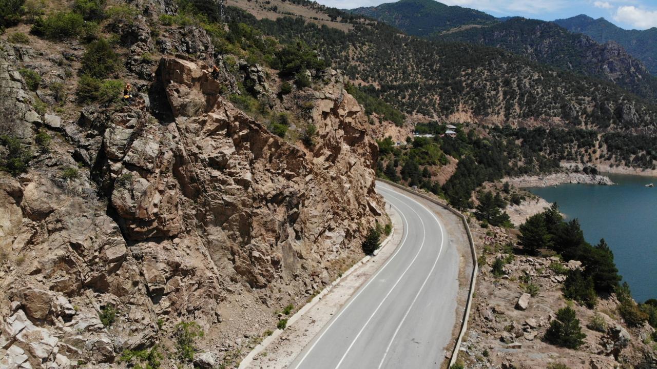 Yola çok yakın bir noktada bulunan dağların yamaçlarında yer alan kayaların her an düşmeye hazır görüntüsü vatandaşları korkutuyor. Karayolları ekipleri ve endüstriyel dağcılar ise geçmişte ölümlü ve yaralamalı kazalarında yaşandığı yol güzergâhında yaptıkları çalışmalarla vatandaşların güvenli bir şekilde seyahat etmesini sağlıyor. Profesyonel endüstriyel dağcılar belirlenen alanlarda, karayolunda gerekli güvenlik önlemleri alındıktan sonra halatlarla yamaçlara tırmanarak levye, kriko yönetimiyle riskli kayaları düşürerek kaza riskini en aza indiriyor.