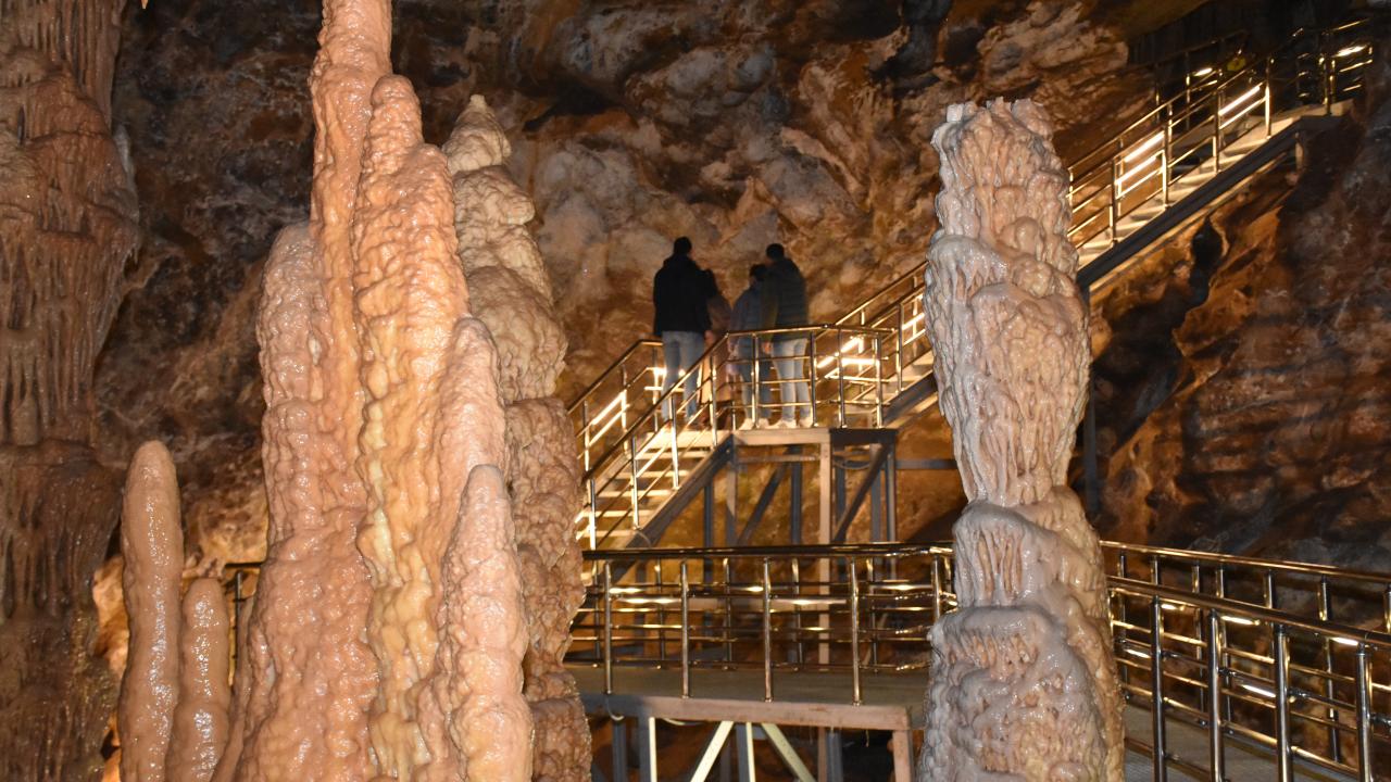Kent merkezine 17 kilometre mesafedeki Karaca Mağarası, 12 ile 17 derece arası sıcaklığıyla ziyaretçilerine serinletici bir ortam sağlıyor.
