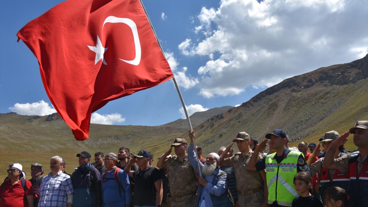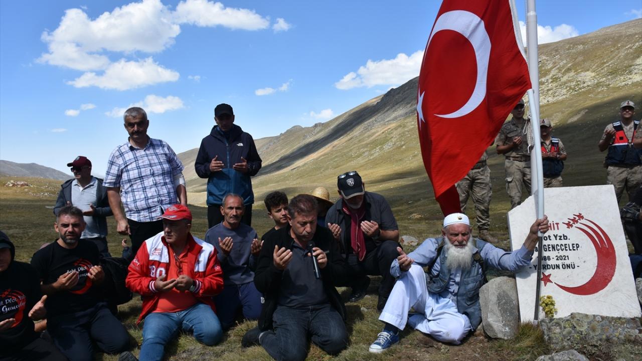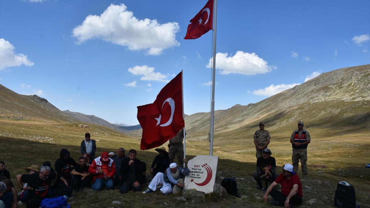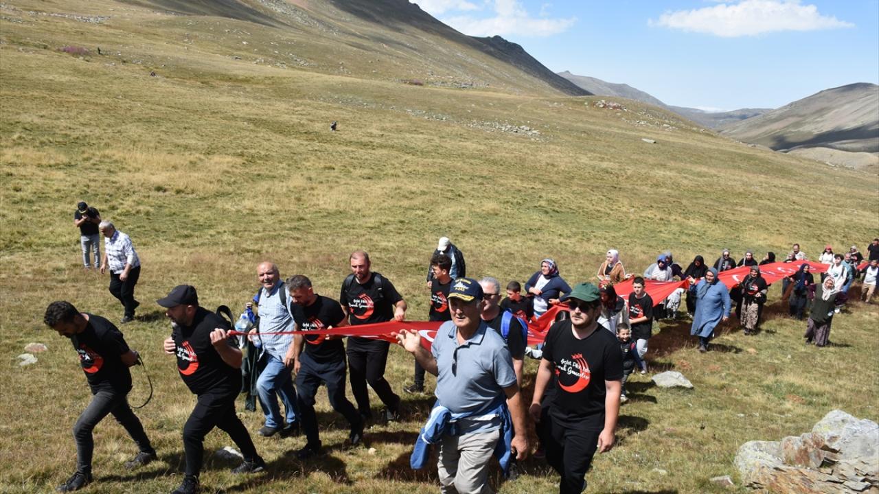 Merkeze bağlı 3 bin 82 rakımlı Deveboynu Yaylası`nda bir araya gelen Gençcelep`in yakınları ve vatandaşlar, Türk bayrağıyla yaklaşık 5 kilometre yürüyerek Yurt önü mevkisine geldi.