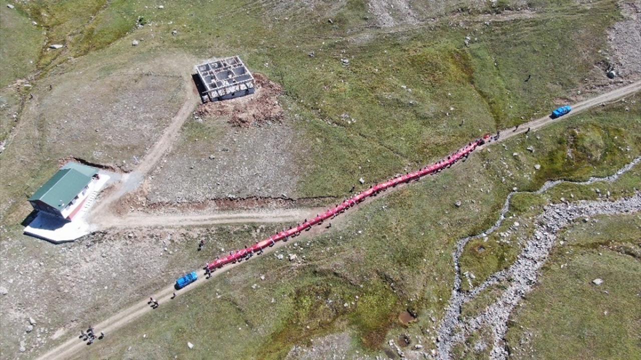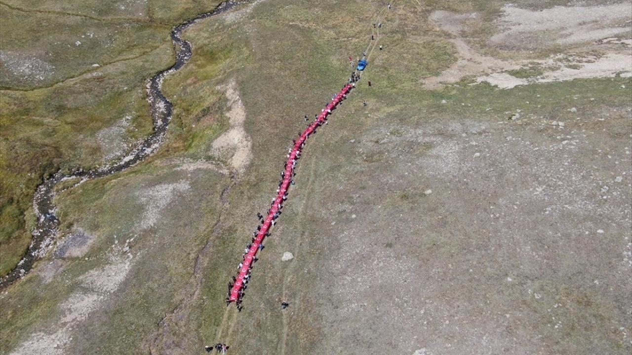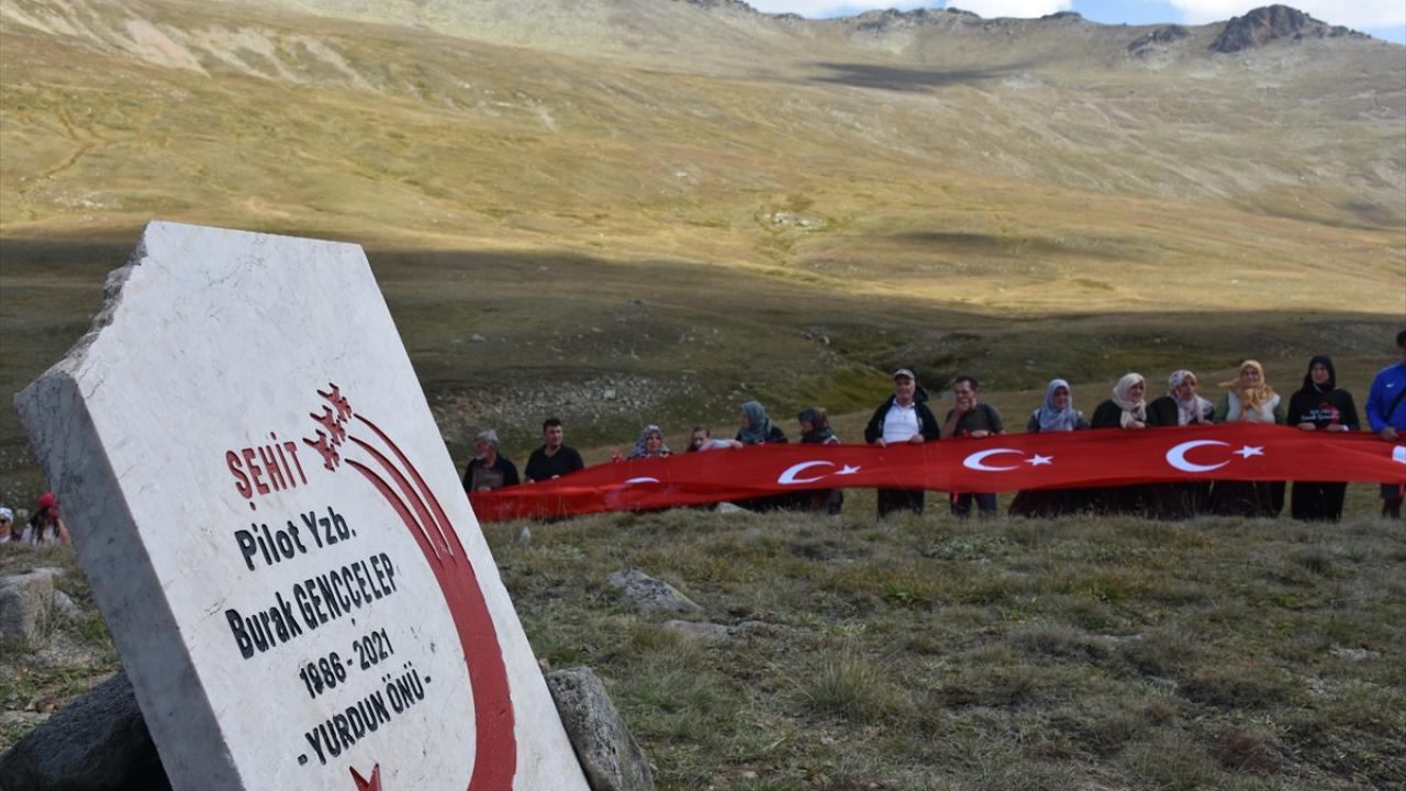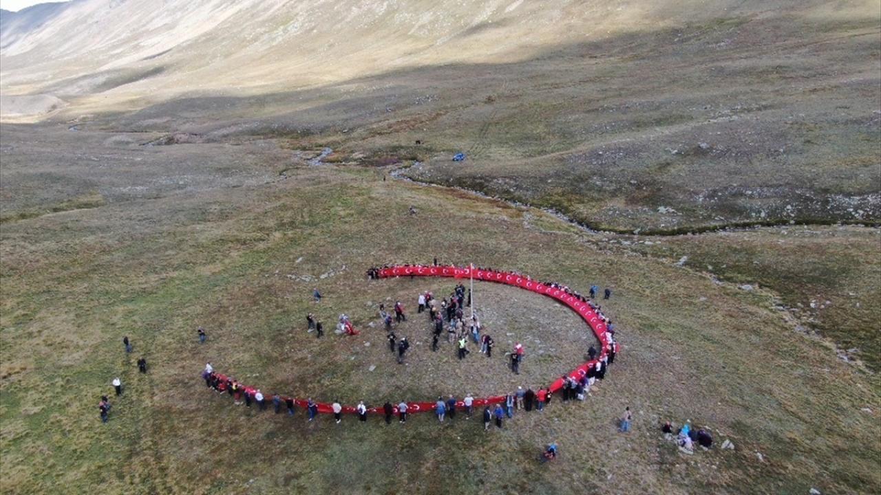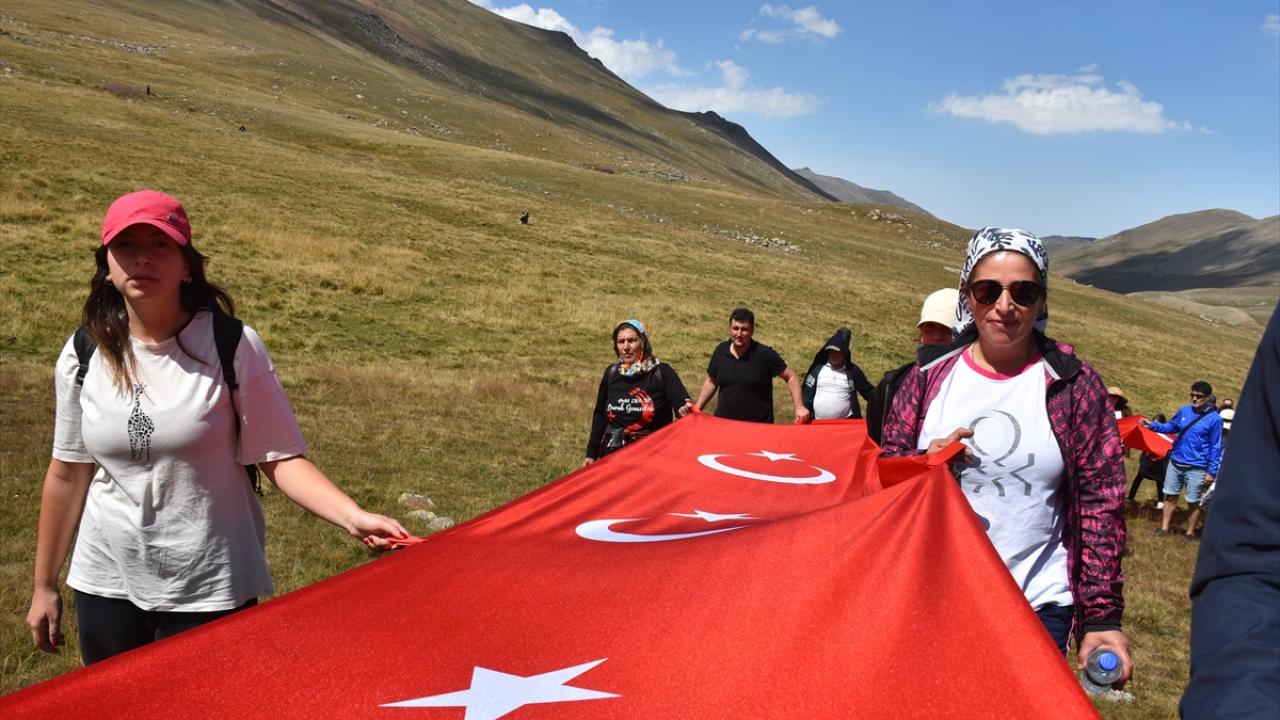 Merkeze bağlı 3 bin 82 rakımlı Deveboynu Yaylası`nda bir araya gelen Gençcelep`in yakınları ve vatandaşlar, Türk bayrağıyla yaklaşık 5 kilometre yürüyerek Yurt önü mevkisine geldi.