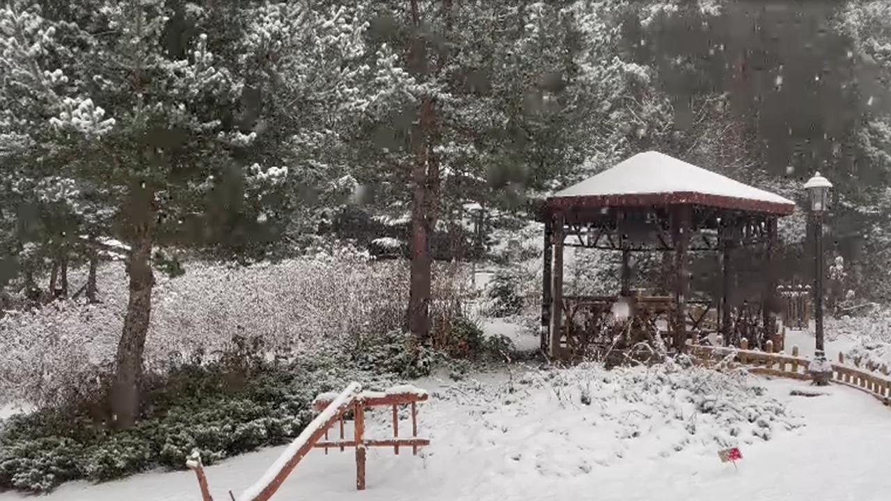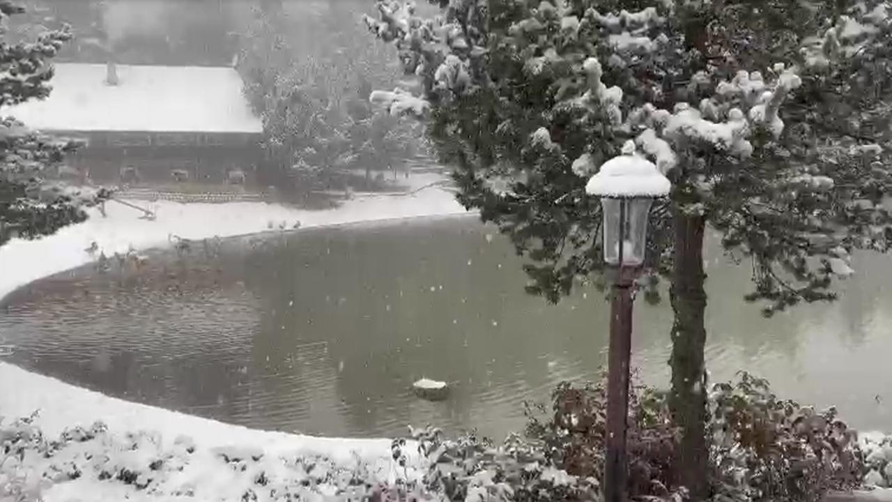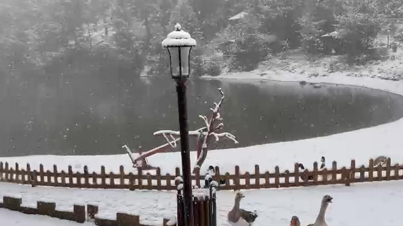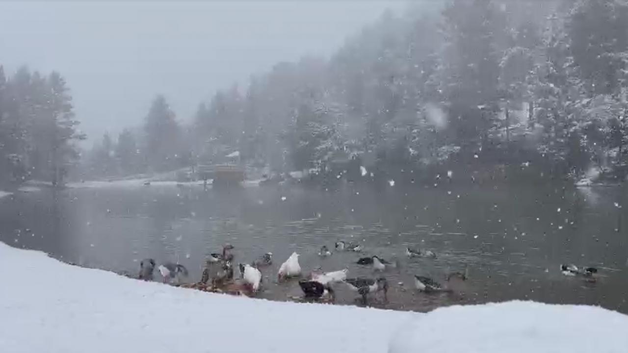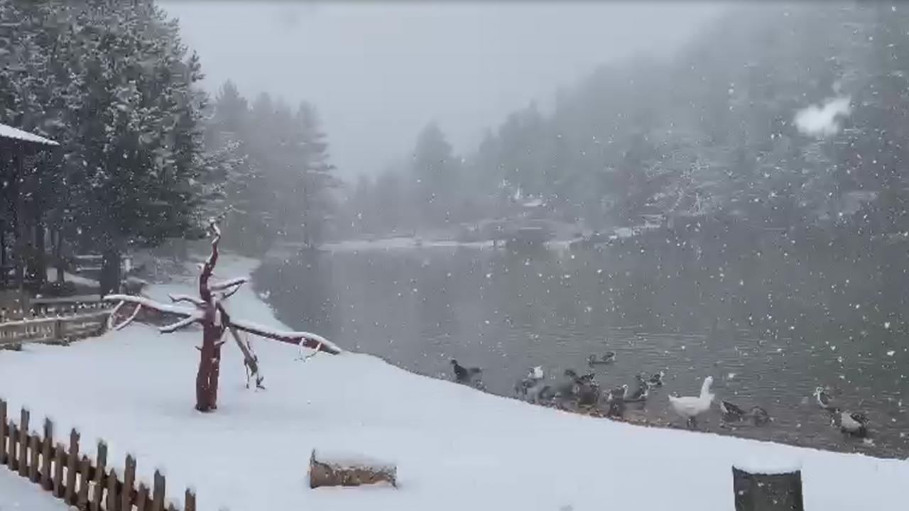 Zigana Dağı'nın yamacında bulunan ve "huzur veren mekan" olarak adlandırılan Limni Gölü Tabiat Parkı'nda kar yağışı etkili oldu.