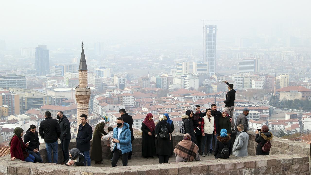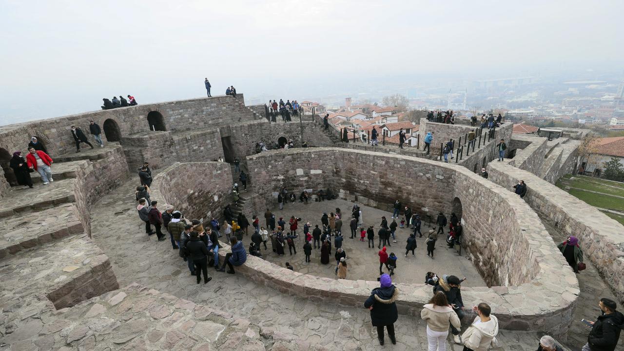 Yeni yılın ilk gününde güzel havayı fırsat bilen başkentliler Ankara Kalesi'ni gezdi.