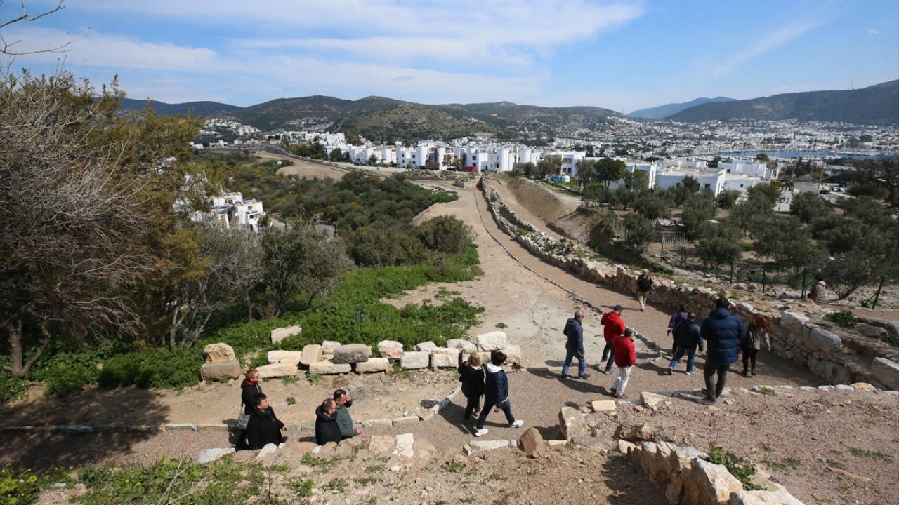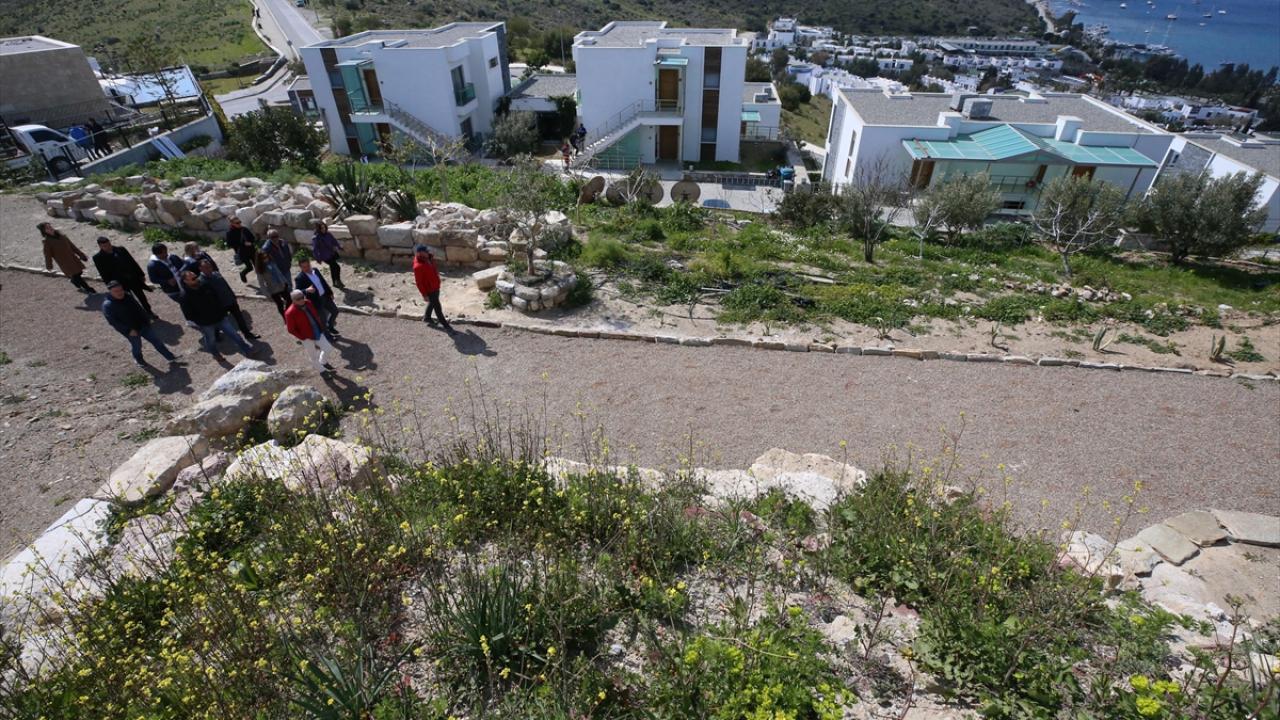Muğla'nın Bodrum ilçesinde kazı çalışmalarıyla gün yüzüne çıkartılan tarihi sur duvarlarında Bodrum Belediye Başkanı Ahmet Aras ve tur rehberleri, gezi ve inceleme yaptı.