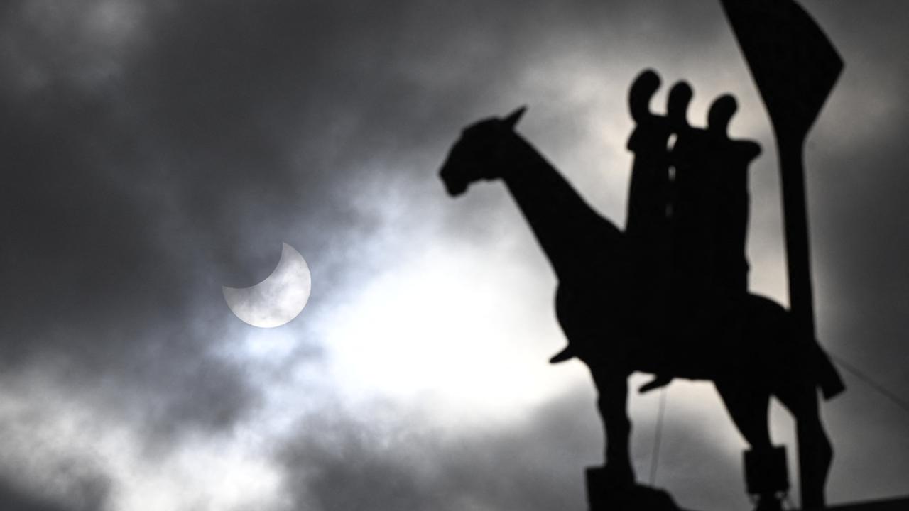 Parçalı güneş tutulması 25 Ekim 2022`de Stockholm`ün merkezinde görüntülendi.