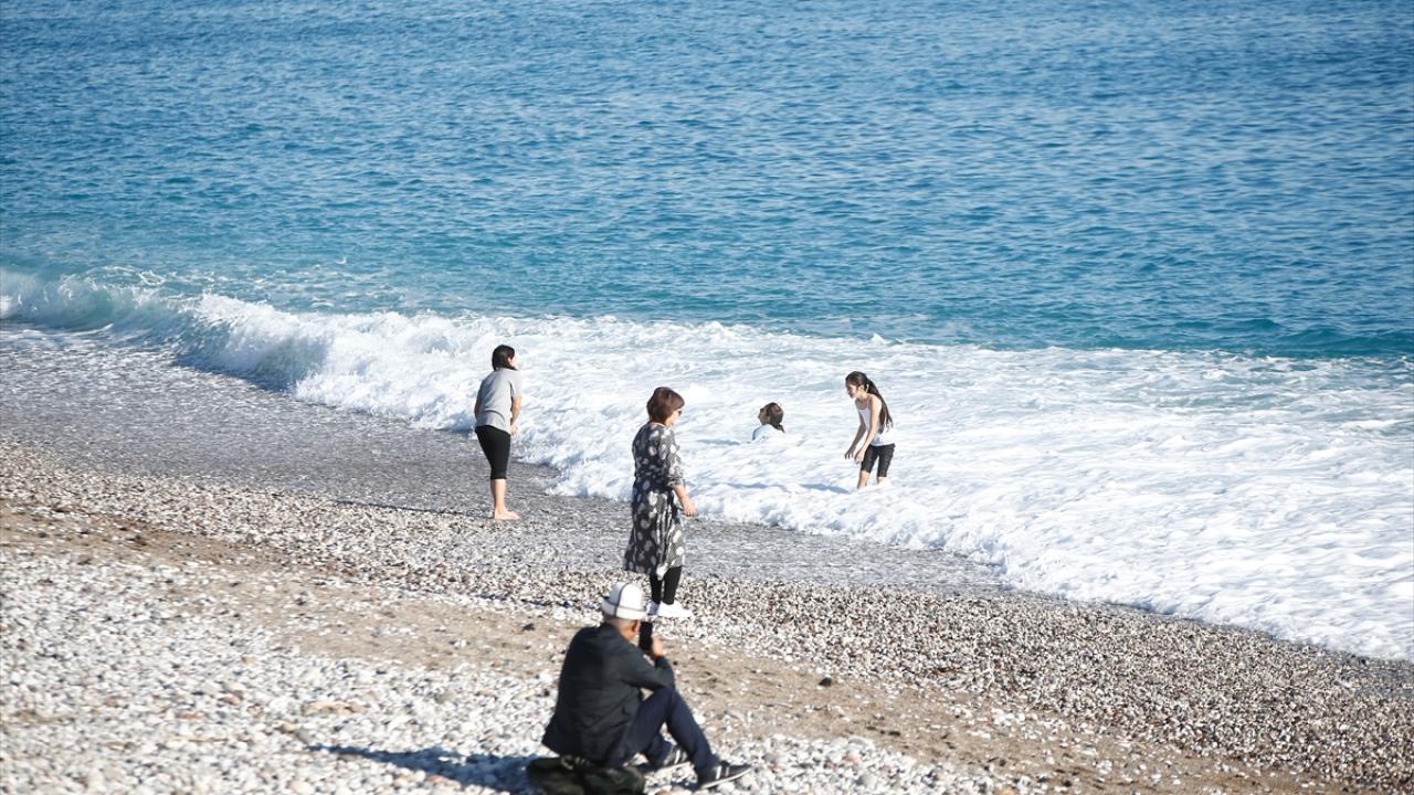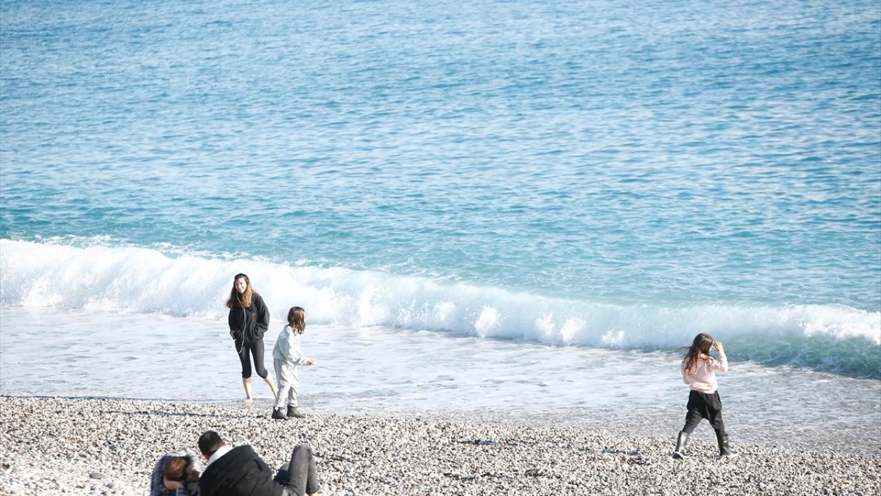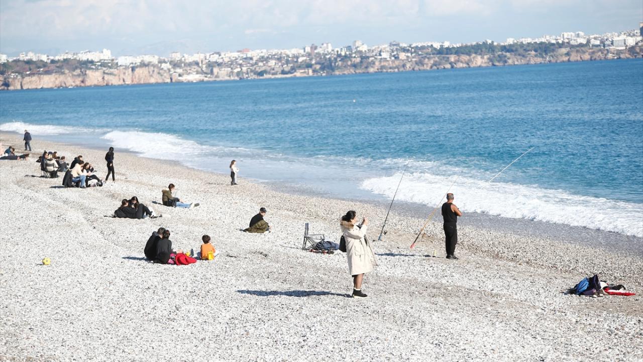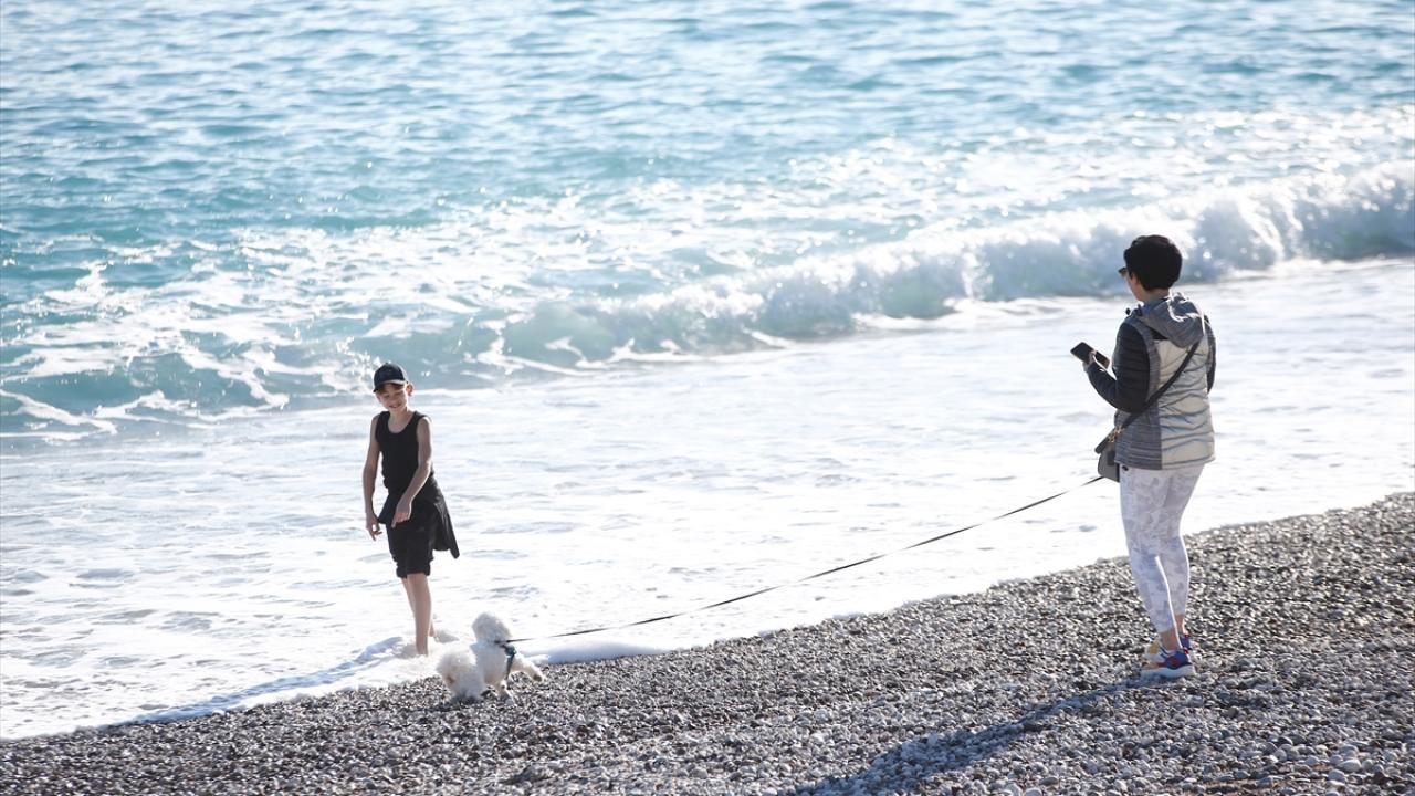 Antalya'da güneşli havayı değerlendirmek isteyenler, Konyaaltı Sahili'nde yürüyüş yaptı.