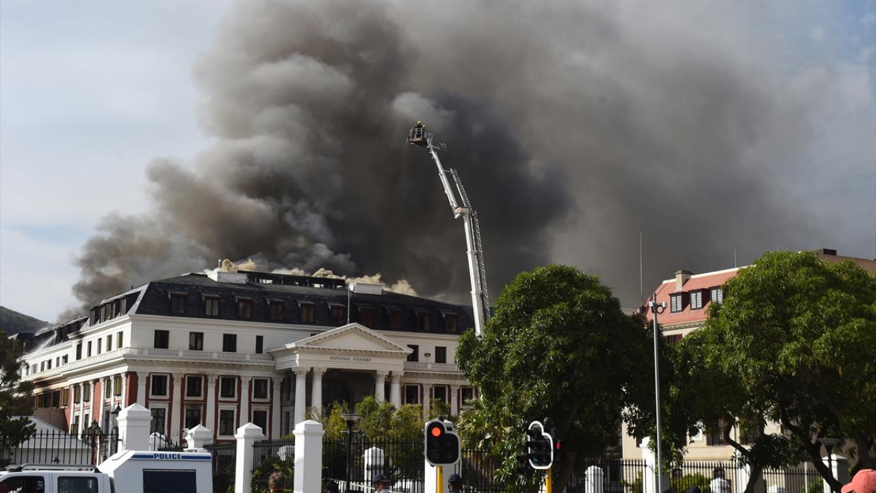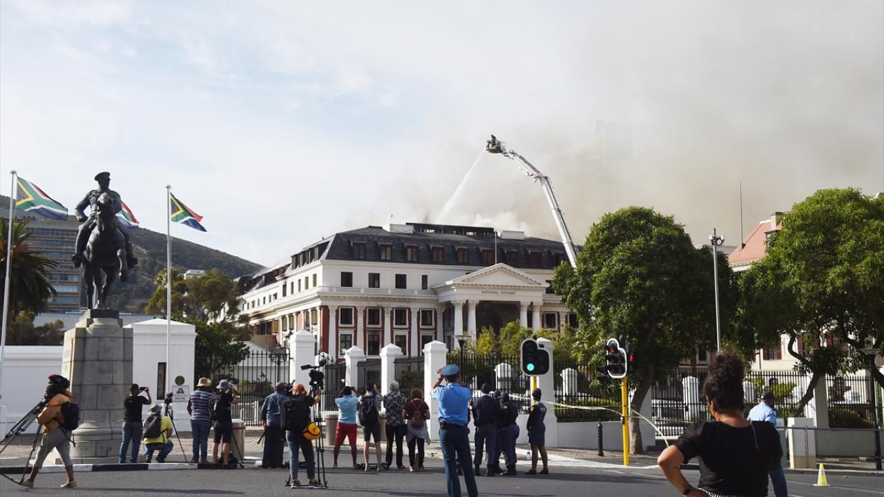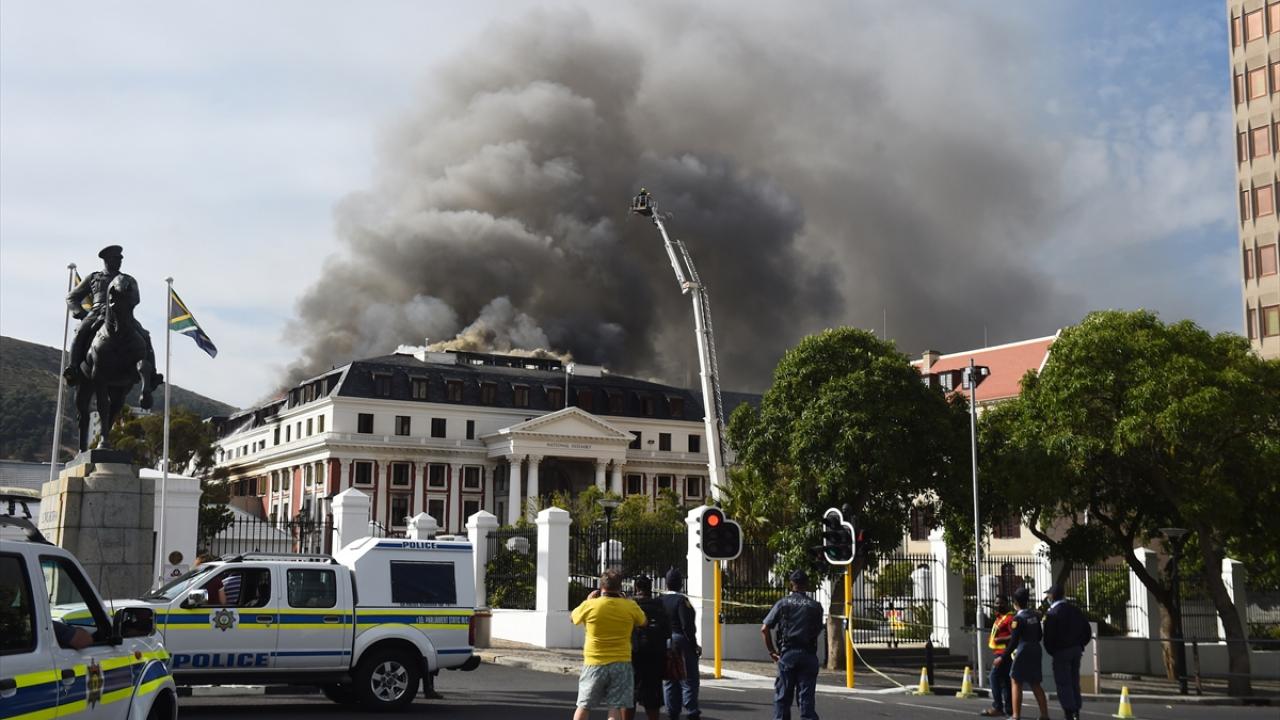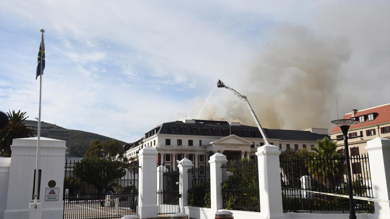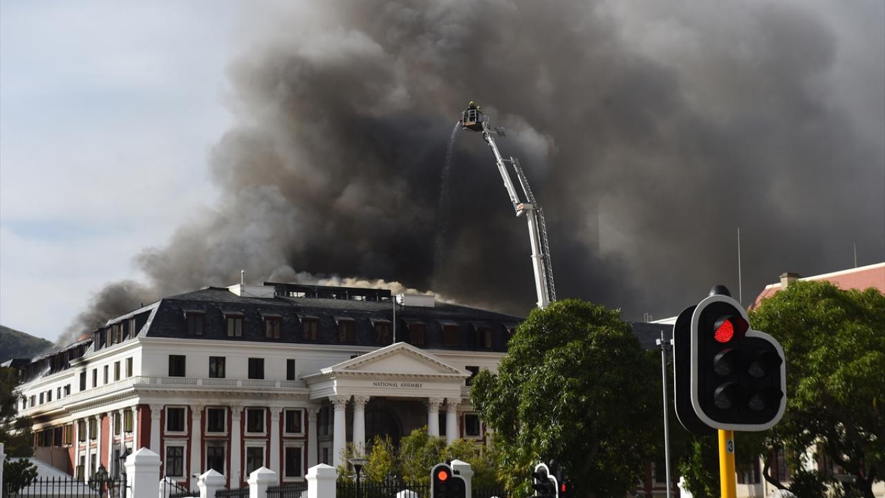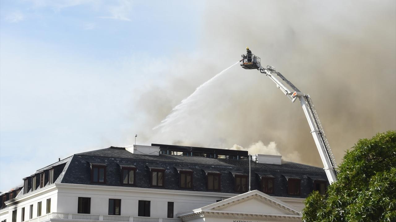Yangının Ulusal Meclis`in çatısında meydana geldiğini anlatan Carelse, 34 itfaiyecinin 6 yangın söndürme aracıyla yangına müdahale ettiğini söyledi.