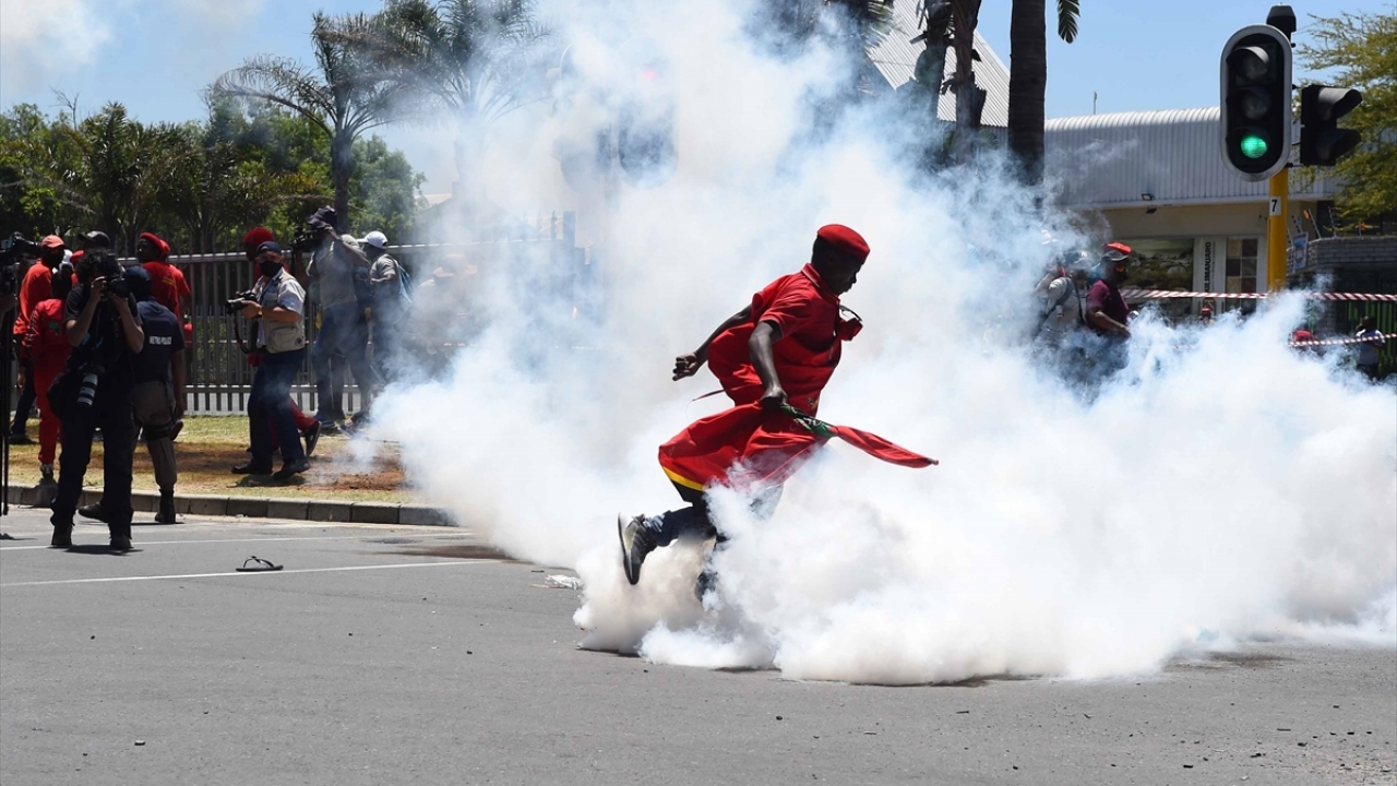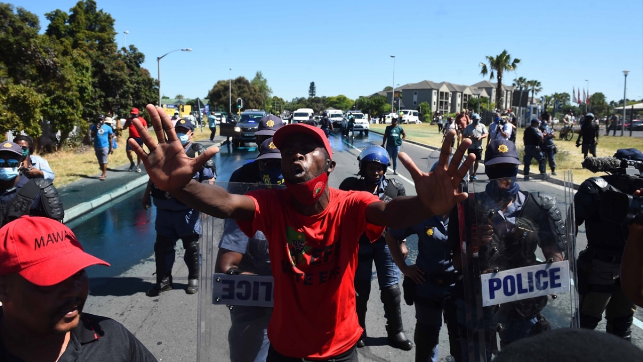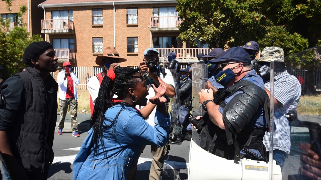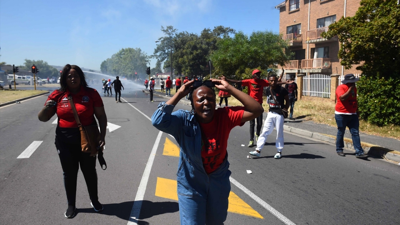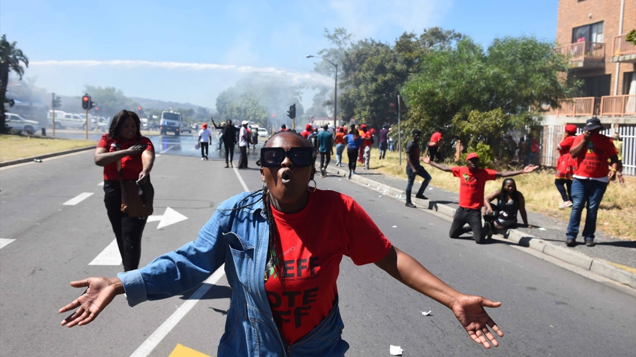 Güney Afrika'nın Cape Town kentinde toplanan Ekonomik Özgürlük Savaşçıları (EFF) hareketi mensupları, Brackenfell Lisesi'nde meydana gelen ırkçı uygulamaları protesto etti.