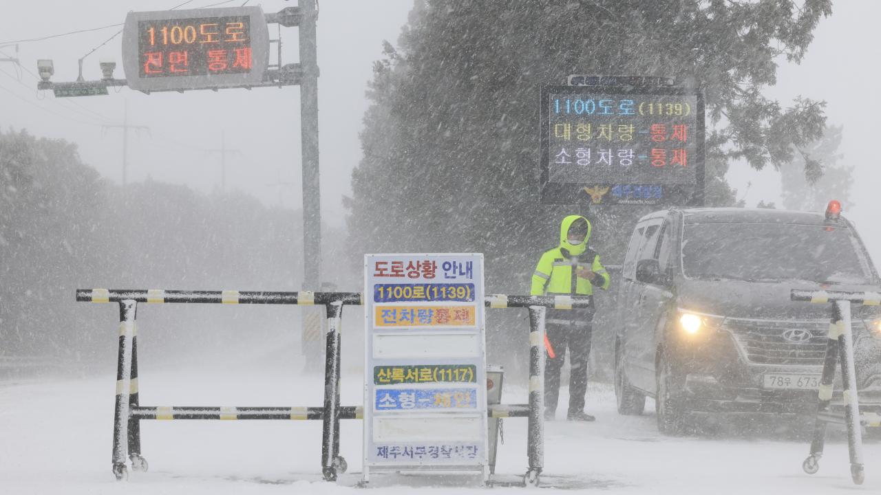 Güney Kore`de kar fırtınalarının yaşandığı güneydeki Jeju Adası`nda 476 hava yolu seferi iptal edildi.