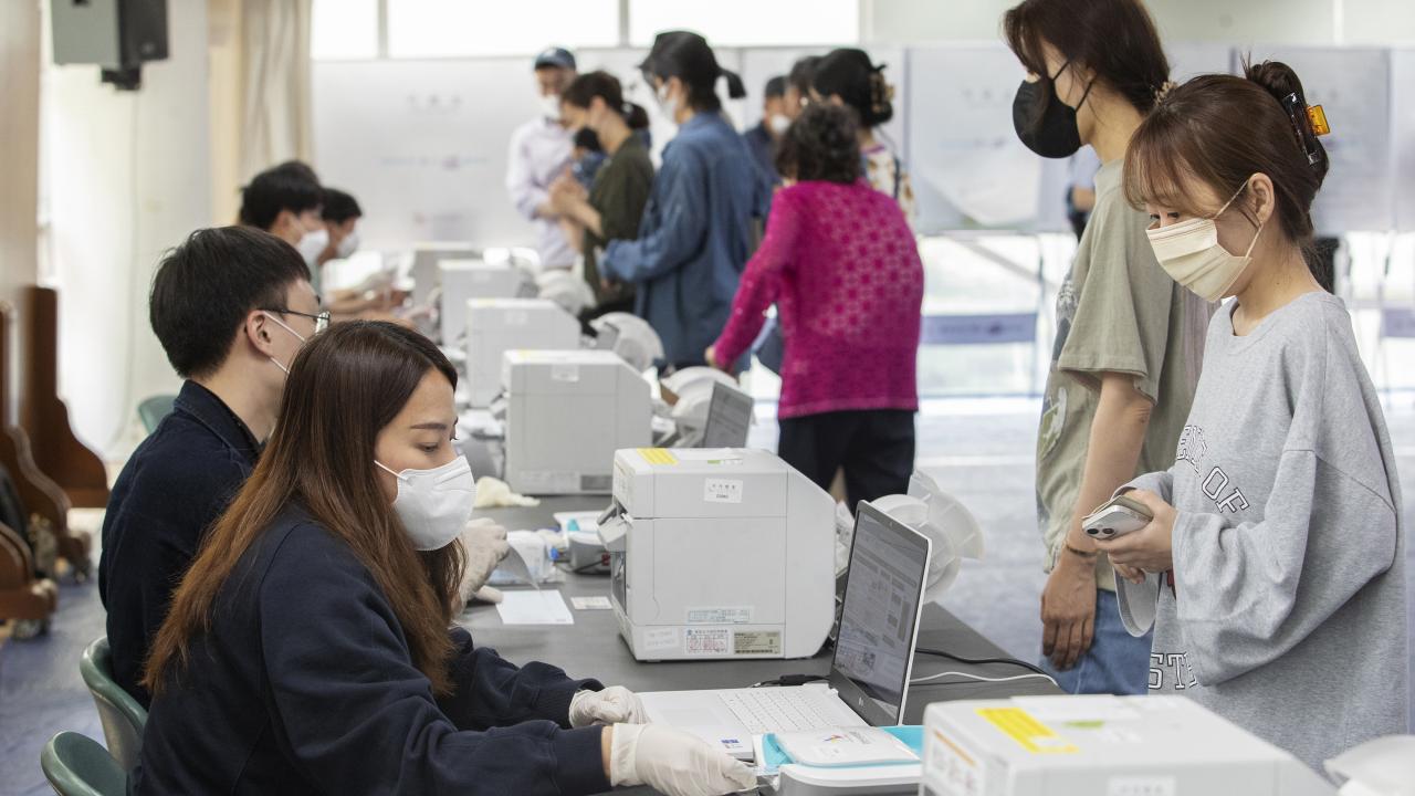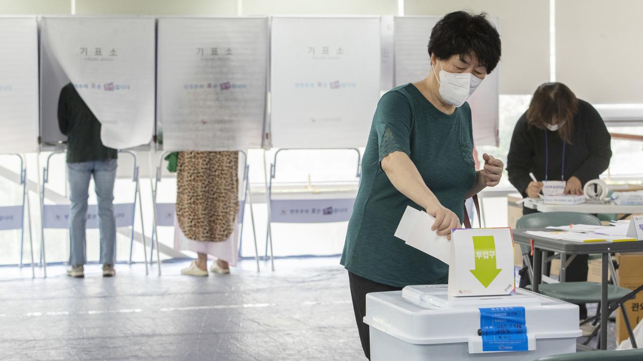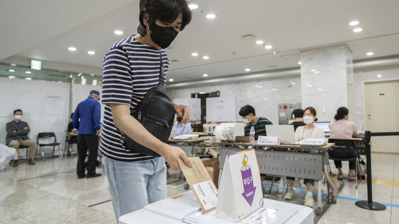 Güney Kore'nin Seul kentinde vatandaşlar, erken yerel seçim sırasında oy kullanmak üzere oy merkezlerine geldi.