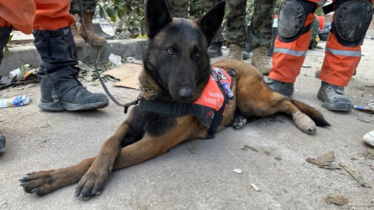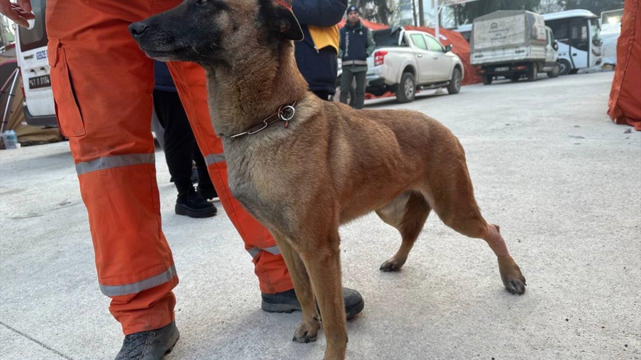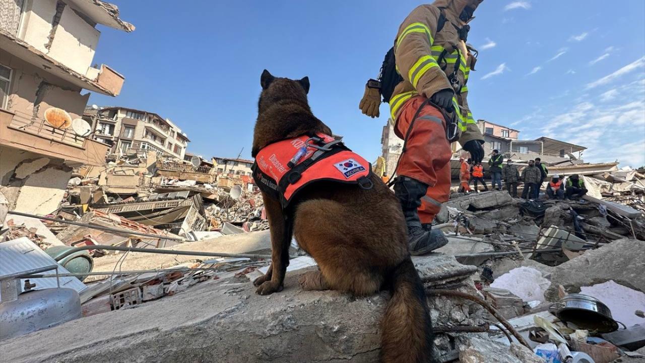 "Asrın felaketi" olarak nitelenen Kahramanmaraş merkezli depremlerin ardından, Güney Kore'den kurtarma çalışmalarına destek için gelen ekipte yer alan özel eğitimli 3 köpek, yaralı ayaklarındaki bandajlarla çalışmalara devam ediyor.