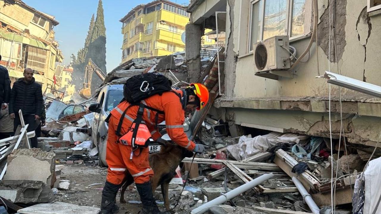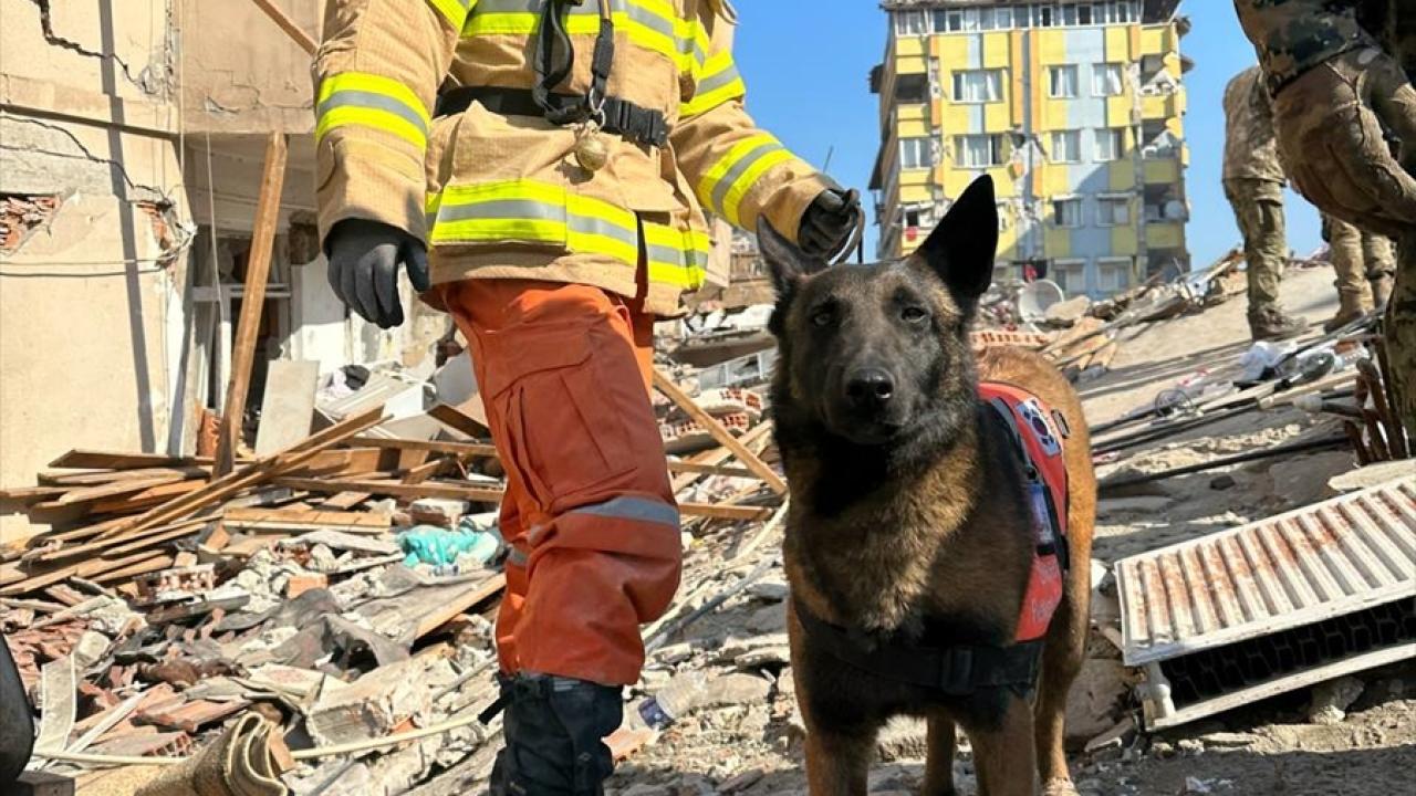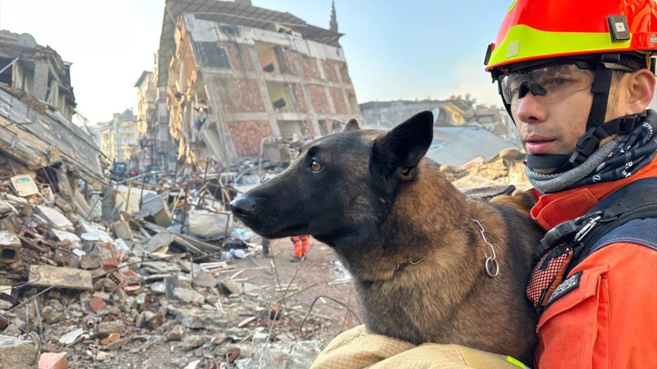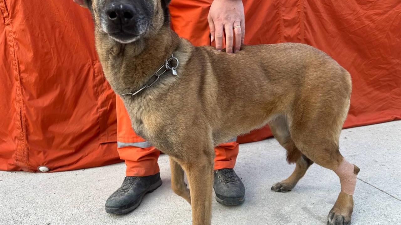 "Asrın felaketi" olarak nitelenen Kahramanmaraş merkezli depremlerin ardından, Güney Kore'den kurtarma çalışmalarına destek için gelen ekipte yer alan özel eğitimli 3 köpek, yaralı ayaklarındaki bandajlarla çalışmalara devam ediyor.