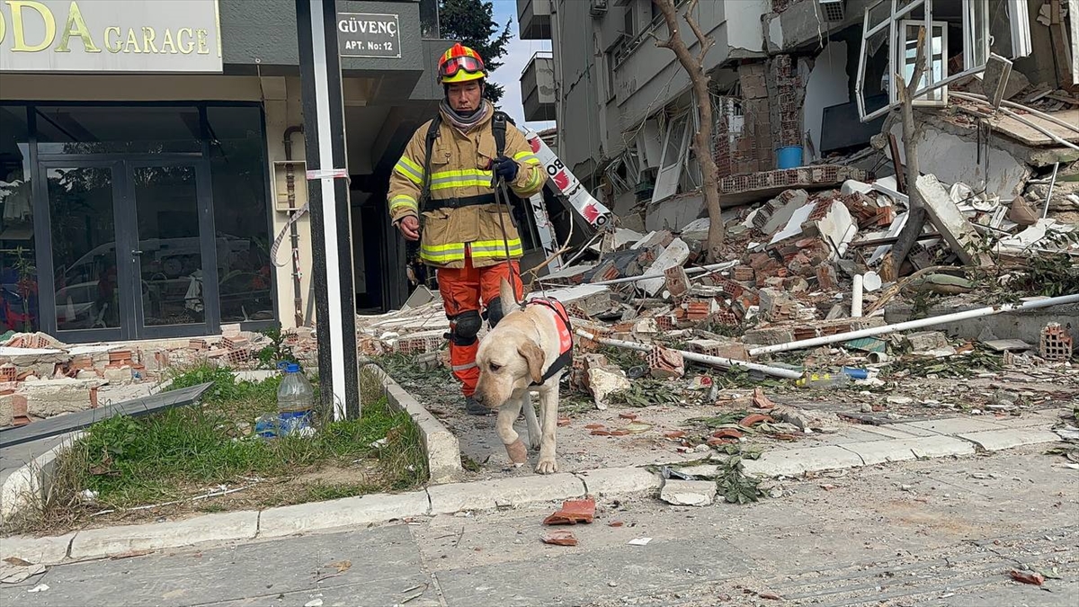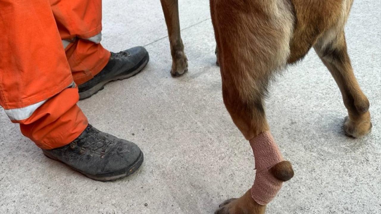 Güney Koreli 3 arama kurtarma köpeği ayaklarındaki bandajlarla çalışıyor