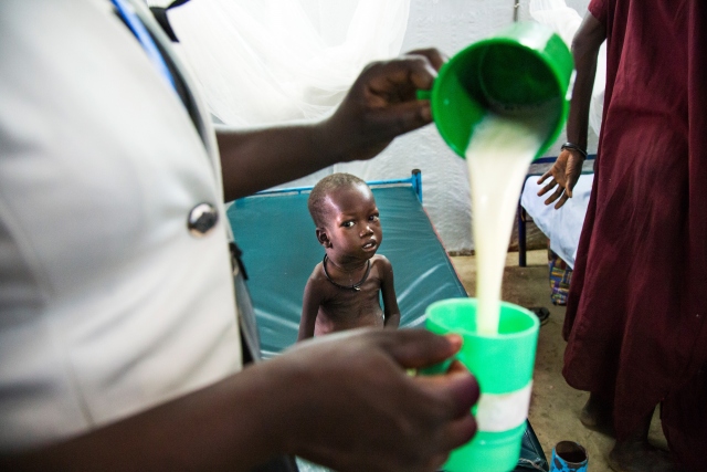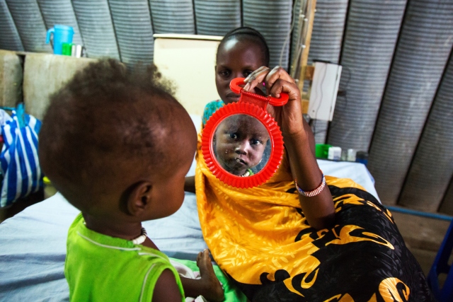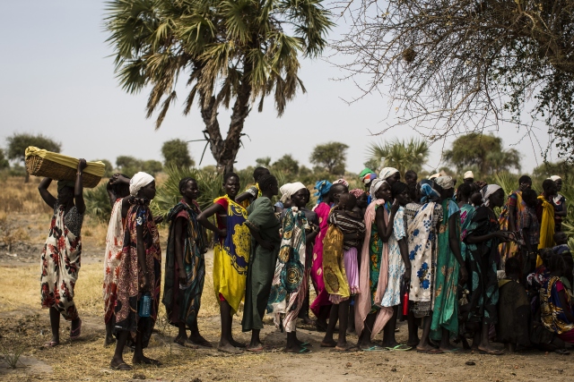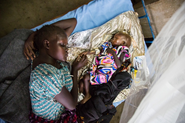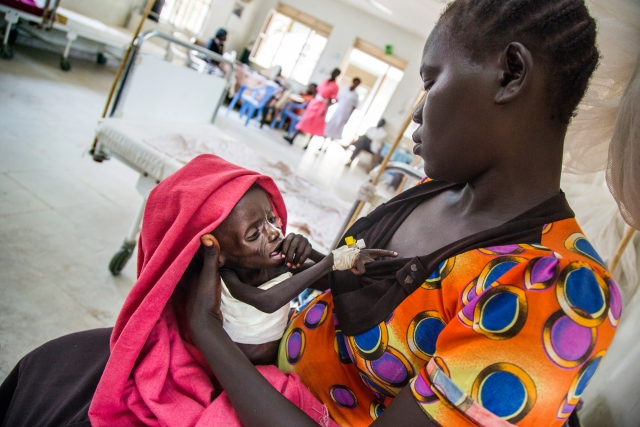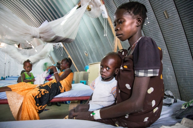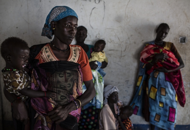 Güney Sudan'da devam eden çatışmalar ve kıtlık sebebiyle artış gösteren açlık sorunu en çok çocukları etkiliyor. Güney Sudan'ın kuzeyinde yer alan Nimini köyünde kadınlar, çocuklarıyla birlikte yardım kuruluşlarına ait mobil sağlık ocaklarında tedavi için sıra bekledi.