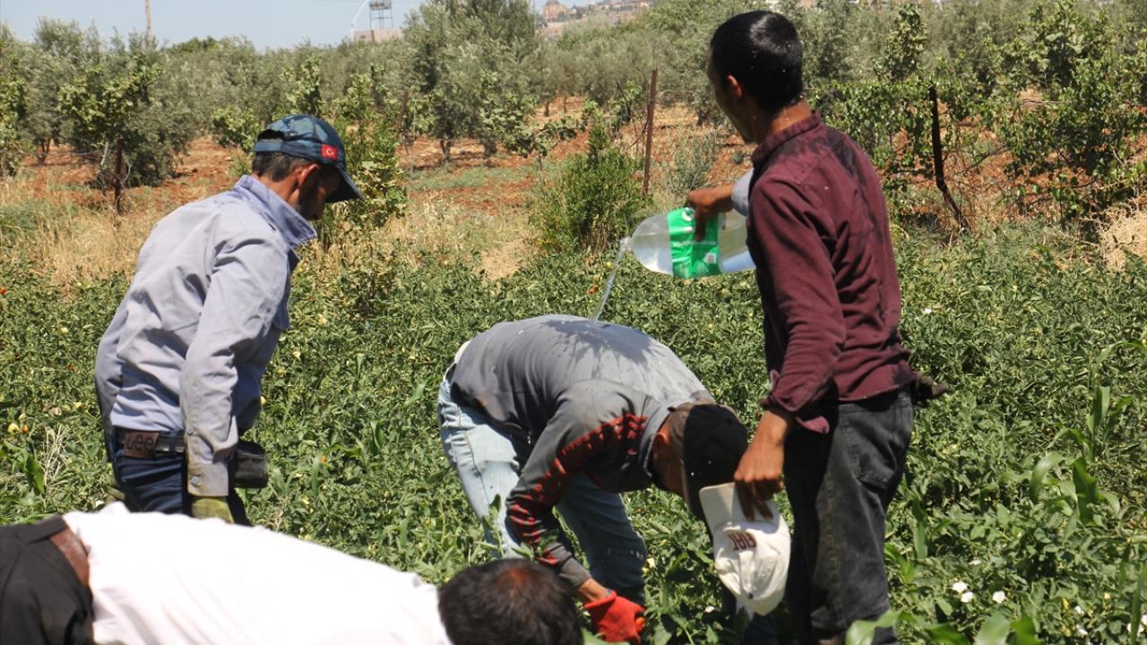 Çiftçiler ise günün erken saatlerinde tarlanın yolunu tutarak ürünlerini hasat ediyor, bunaltıcı sıcaklara karşı üzerlerine su döküyor ve öğlen saatlerinde ise dinlenmeye çekiliyor.