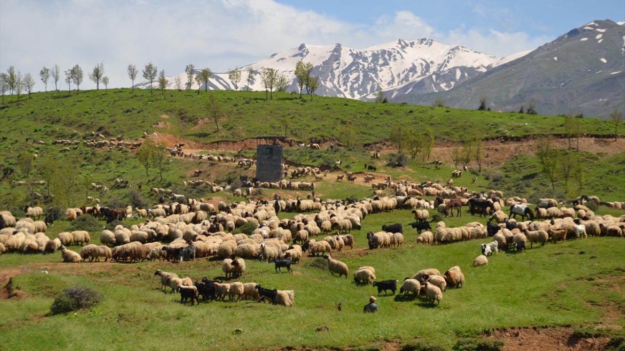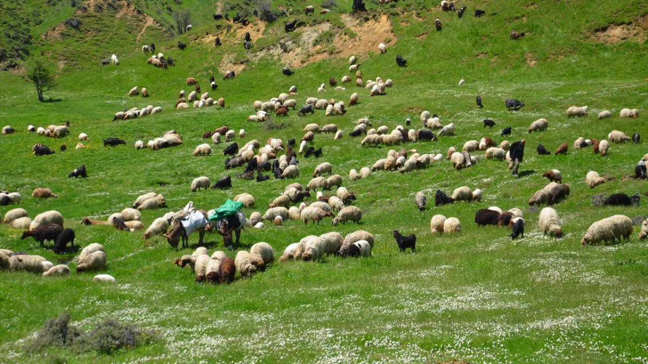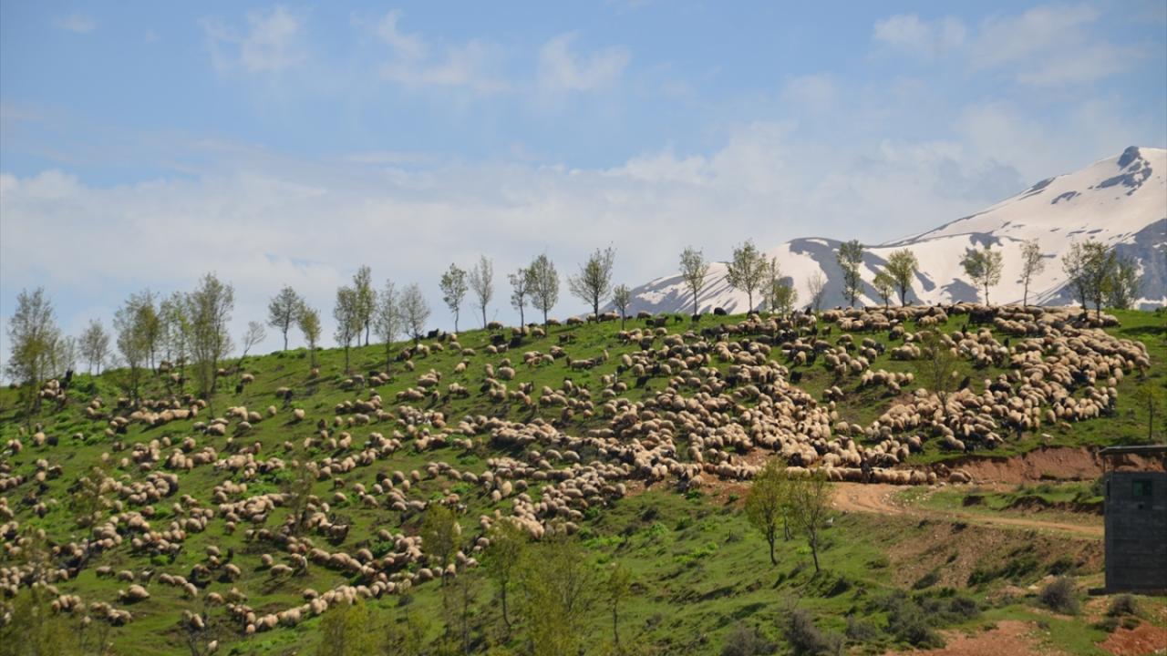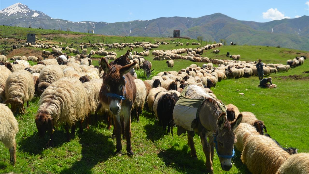 Diyarbakır ve Mardin'den yaklaşık bir ay önce küçükbaş hayvanlarını yüksek rakımlı yaylalara götürmek için yola çıkan göçerler, Muş'un Şenyayla bölgesine geldi.