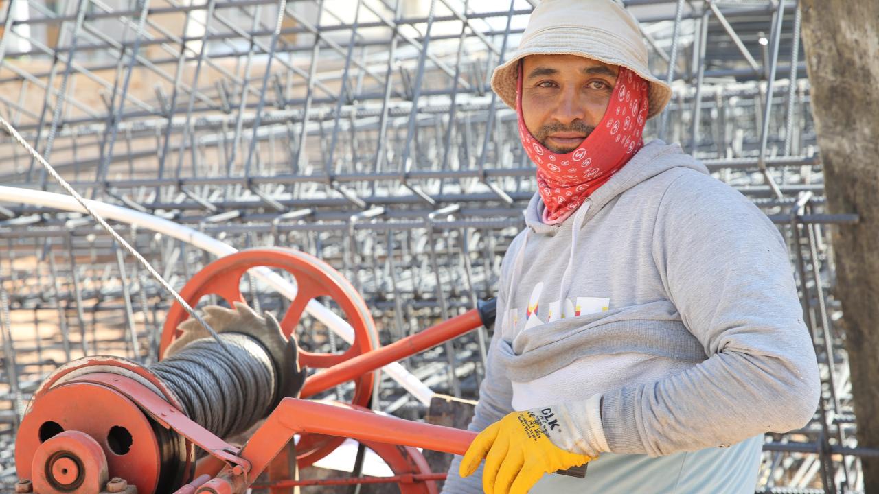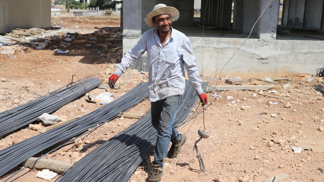 İnşatta demir ustası Şaban Tergek de sıcakta çalışmanın zor olduğunu belirterek, "Sıcaktan terliyoruz ama mesleğimizde alın teri var." ifadelerini kullandı.