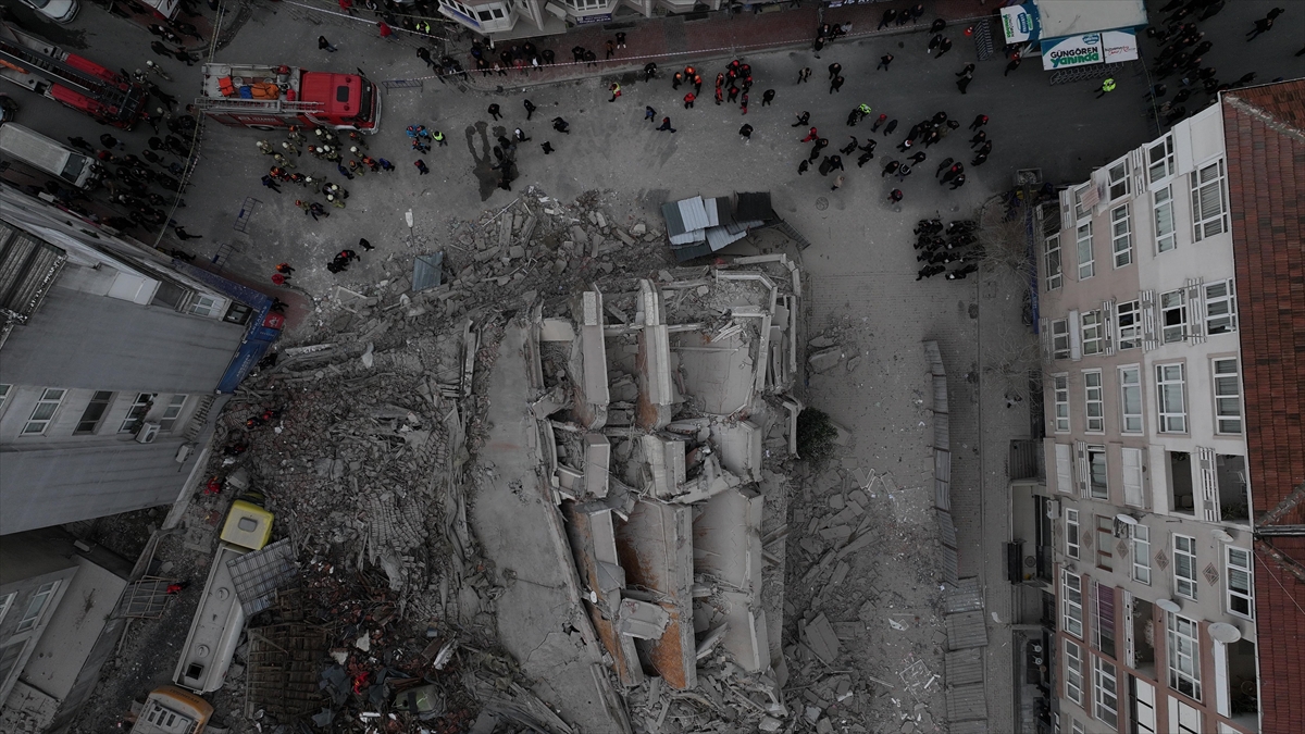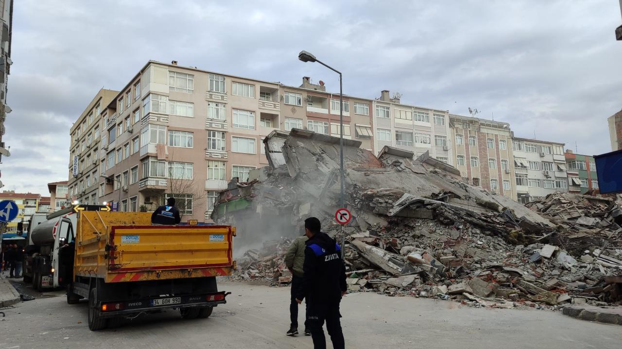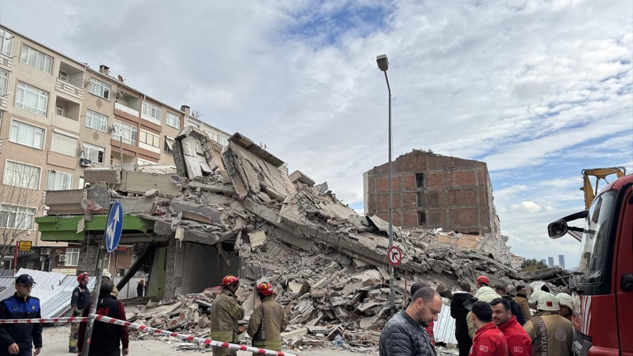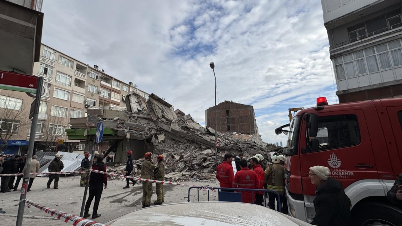 Çöken binanın çevresine güvenlik şeridi çekilirken, enkazda tedbir amaçlı arama çalışması başlatıldı.