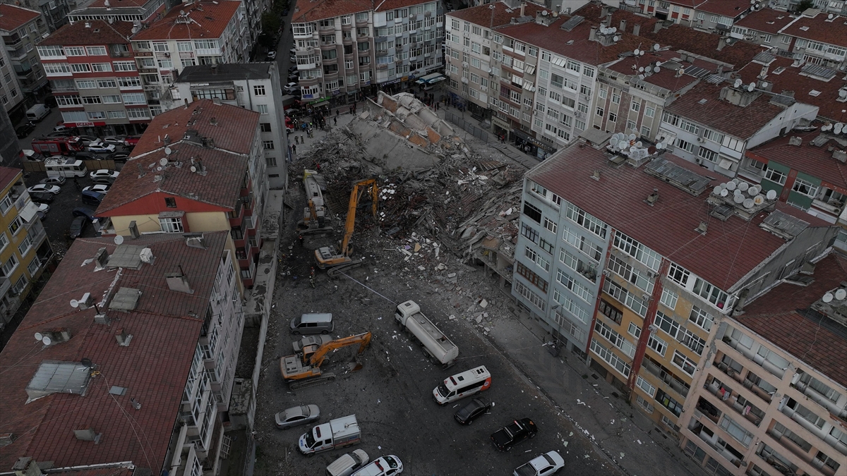 Görüntülerde, çökme sırasında bölgedeki vatandaşların olay yerinden uzaklaşmaya çalışması, bir otomobilin son anda enkaz altında kalmaktan kurtulması ve etrafın tozla kaplanması yer aldı.