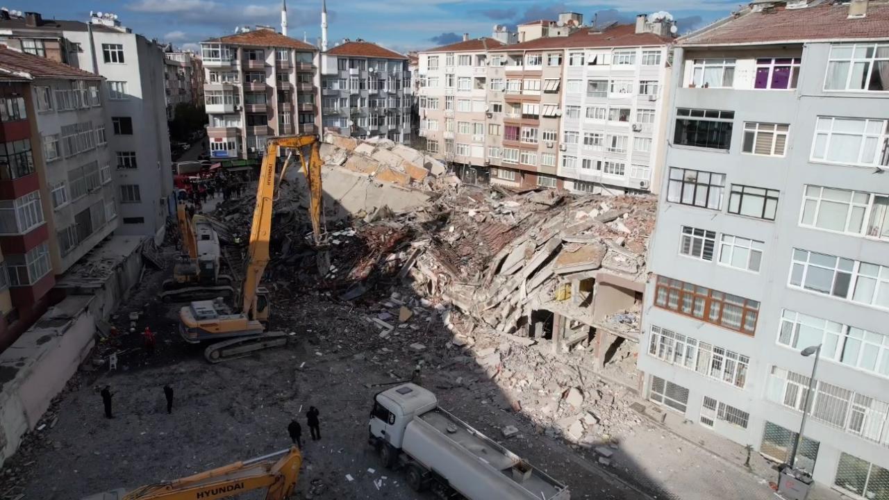 Haznedar Mahallesi Marmara Caddesi`nde boşaltılan ve yıkımına başlanan, 3 katı iş merkezi, 3 katı da konut olarak kullanılan 6 katlı binada, çalışmalar sırasında çökme meydana geldi.