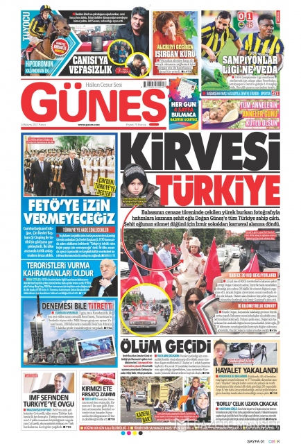 Günün gazete manşetleri (14 Mayıs Pazar)
