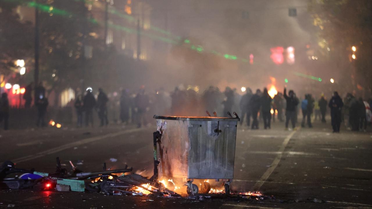 Başbakan İraki Kobakhidze’nin AB katılım müzakerelerini 2028’e kadar askıya alması kararını eleştiren göstericiler, 28 Kasım`da başlattıkları eylemlerini başkent Tiflis`te sürdürdü.