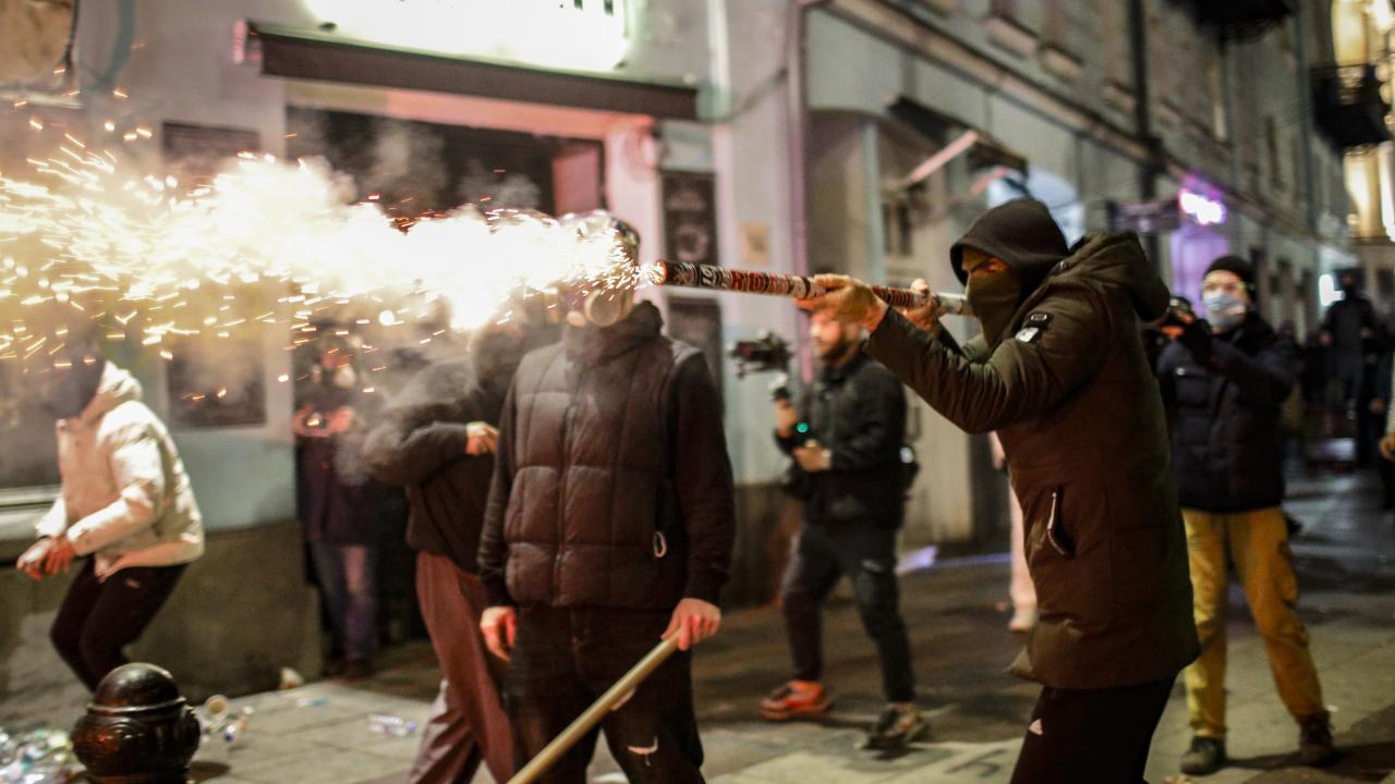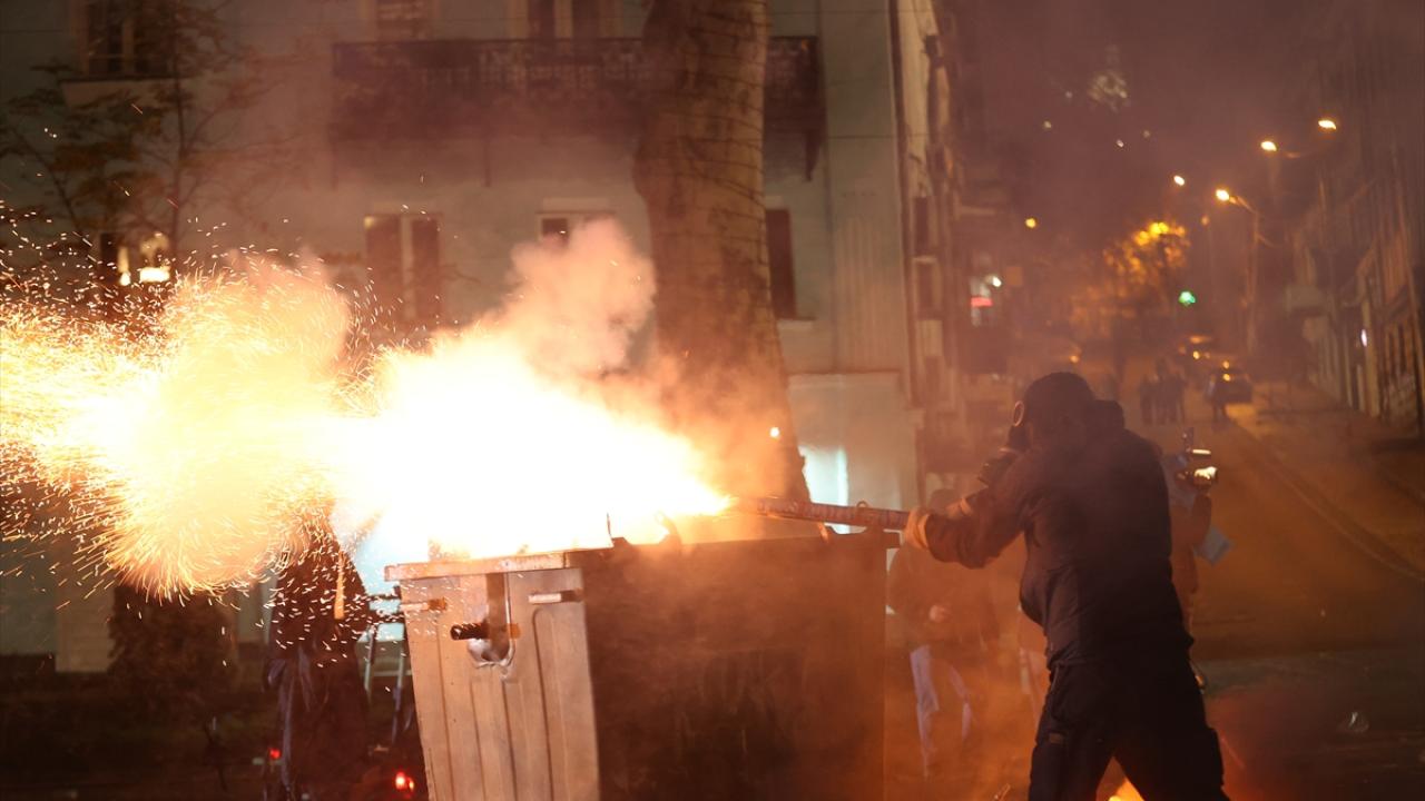 Bazı göstericiler ise piroteknik ve molotofkokteyli atmaya başlayınca polis parlamentonun önündeki caddeyi kontrolü altına aldı.