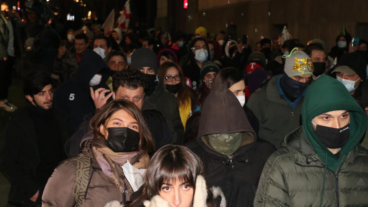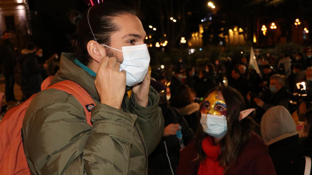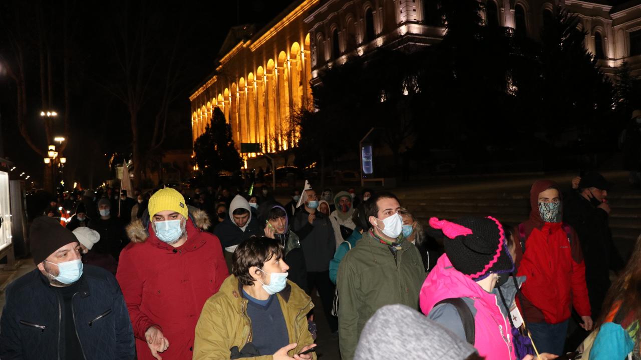 Tedbirleri kapsamında gece sokağa çıkma kısıtlamasına rağmen parlamento binasının önünden yürüyüşe geçen göstericiler, yaklaşık 10 kilometrelik mesafe katetti ve ardından Ana Dil Parkı`na gelerek gösterilerini burada sürdürdü.