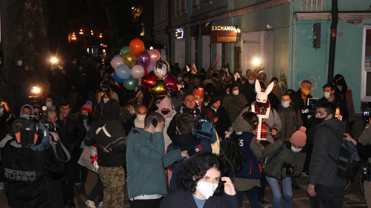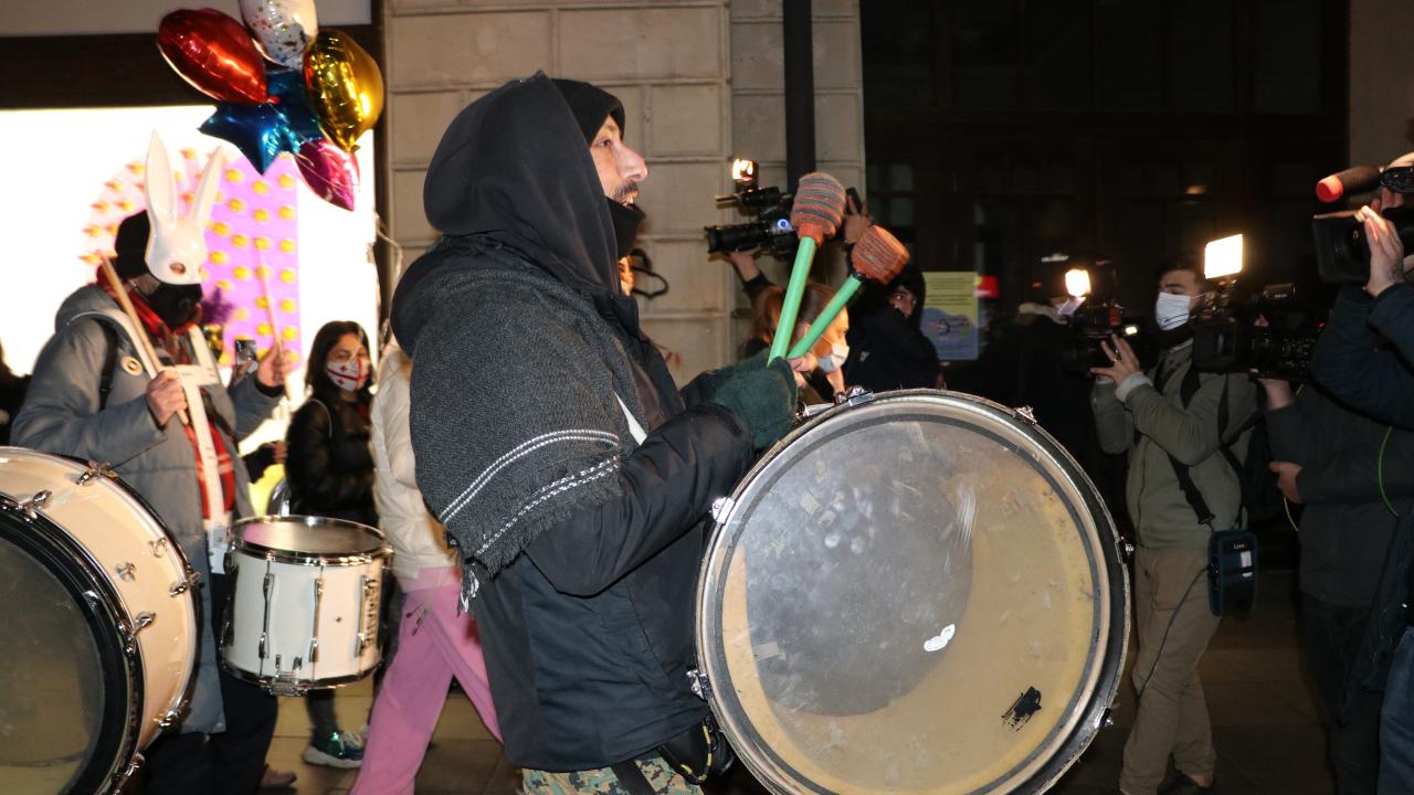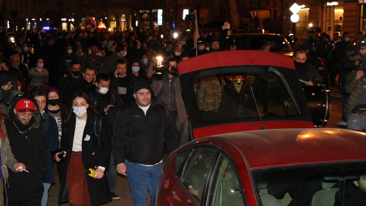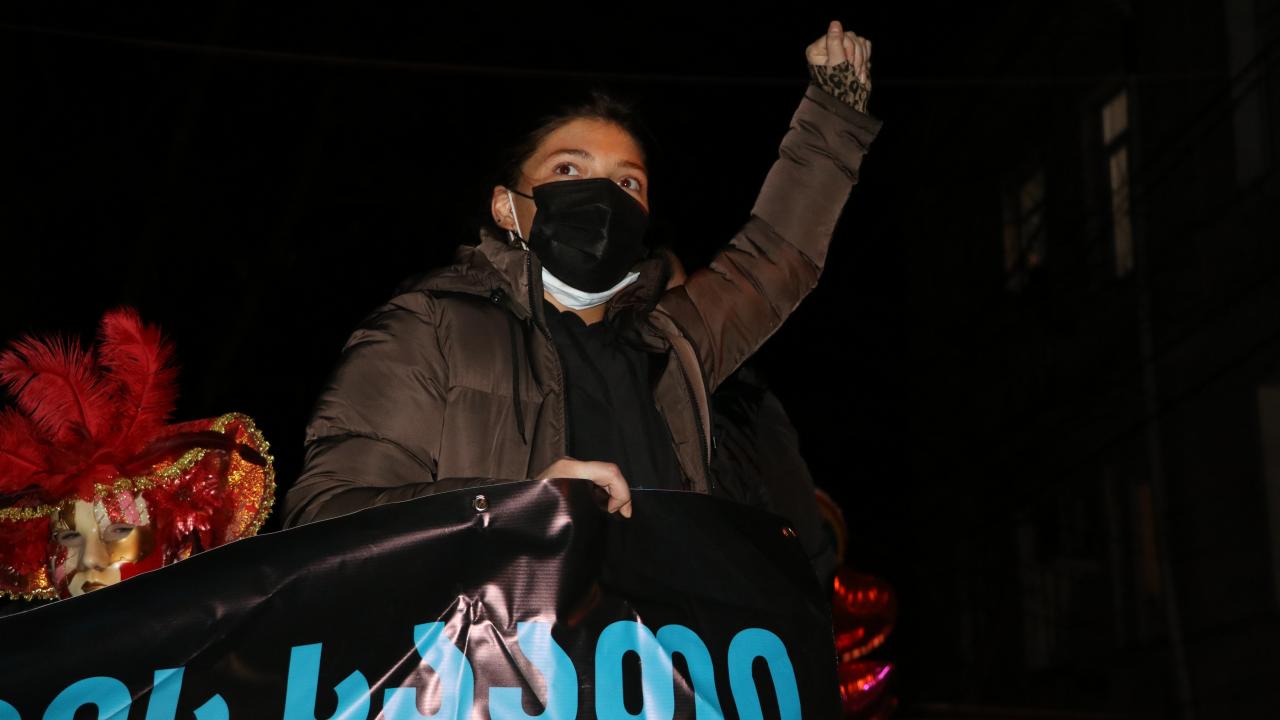 Tedbirleri kapsamında gece sokağa çıkma kısıtlamasına rağmen parlamento binasının önünden yürüyüşe geçen göstericiler, yaklaşık 10 kilometrelik mesafe katetti ve ardından Ana Dil Parkı`na gelerek gösterilerini burada sürdürdü.