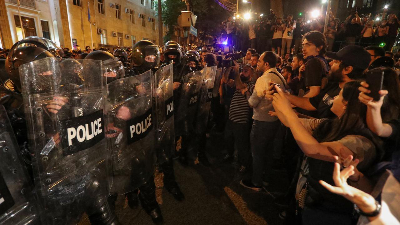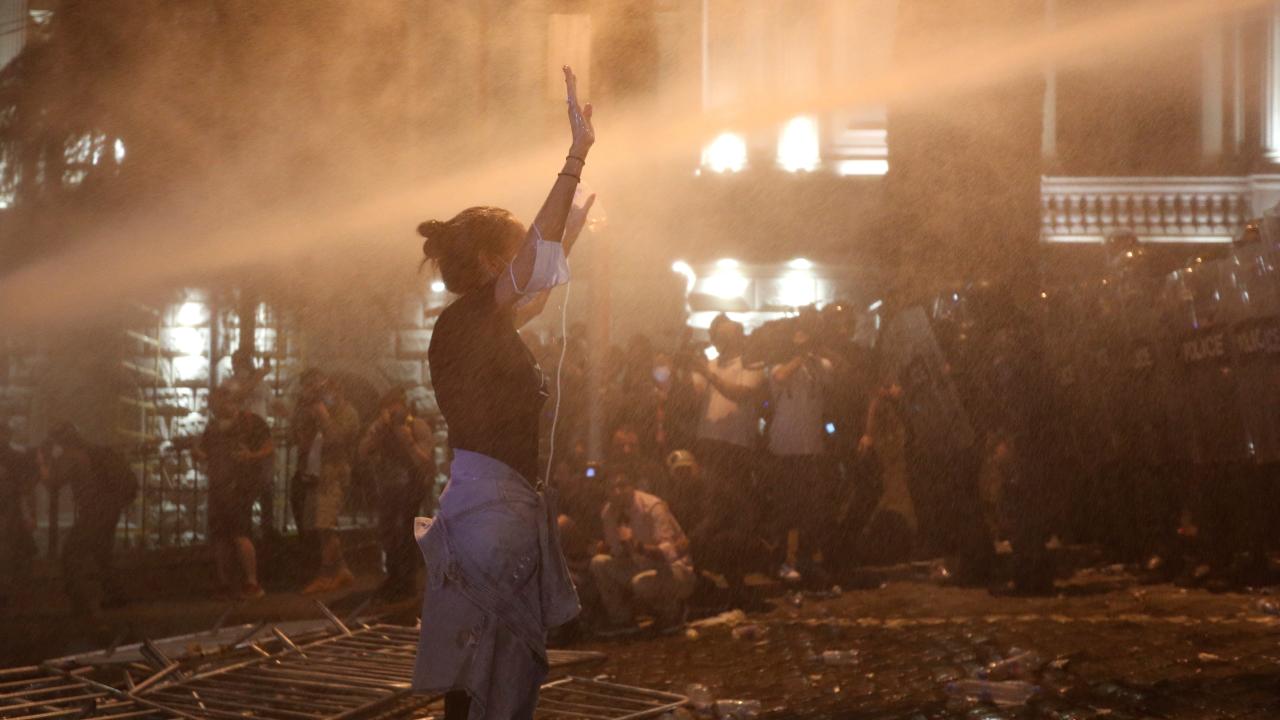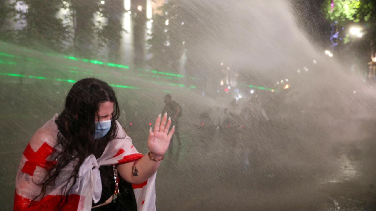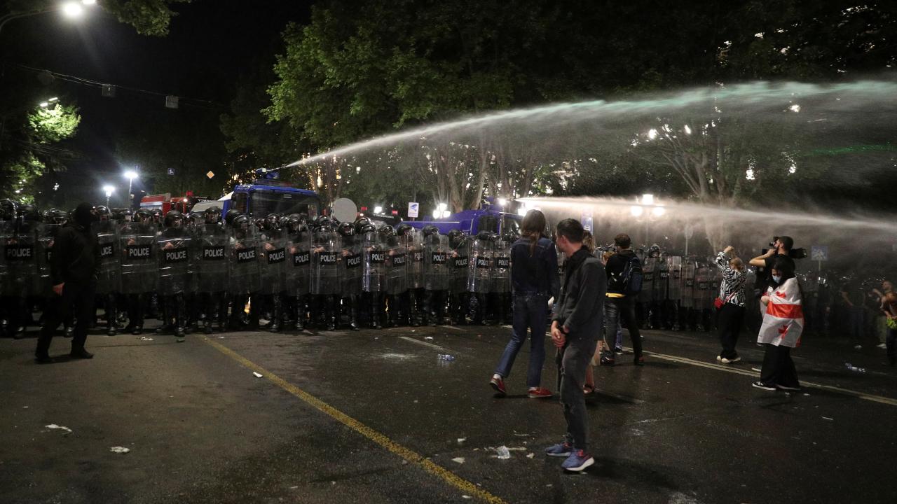 Gürcistan'da güvenlik güçleri, "yabancı etkinin şeffaflığı" konulu yasa tasarısını protesto ederken parlamento binasını kuşatarak girişleri kapatmaya çalışan göstericilere biber gazı ve tazyikli suyla müdahale etti.