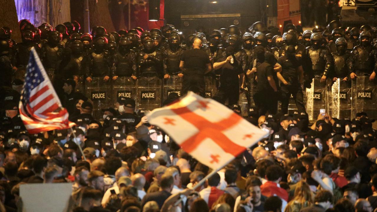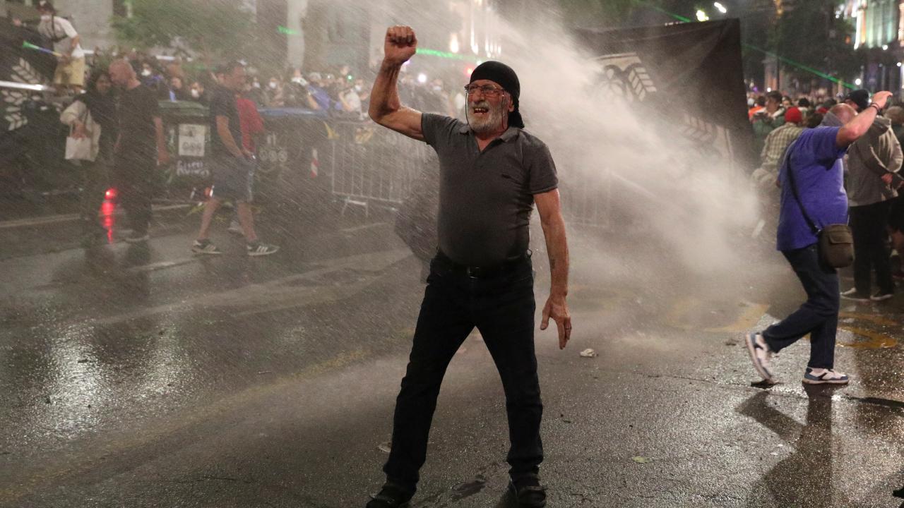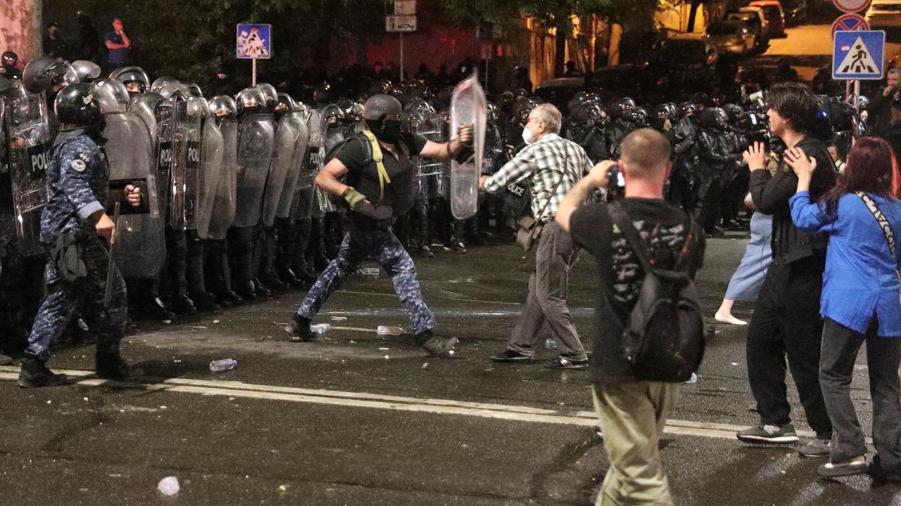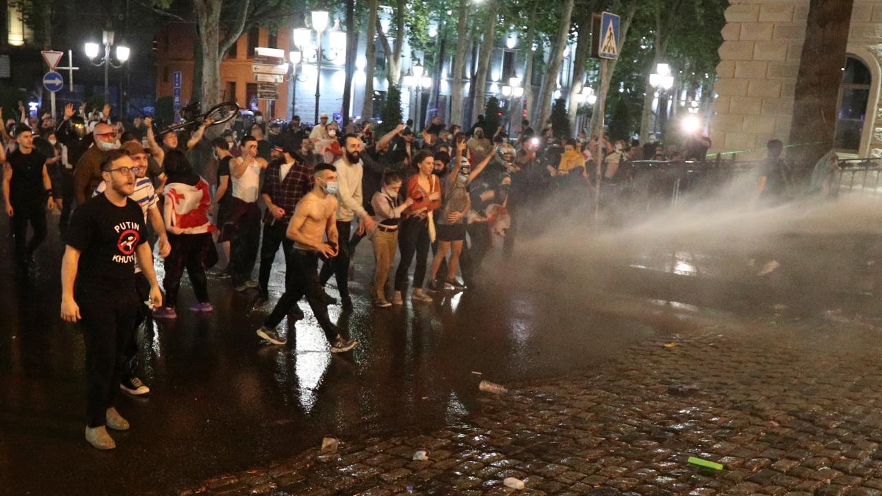 Gürcistan'da güvenlik güçleri, "yabancı etkinin şeffaflığı" konulu yasa tasarısını protesto ederken parlamento binasını kuşatarak girişleri kapatmaya çalışan göstericilere biber gazı ve tazyikli suyla müdahale etti.