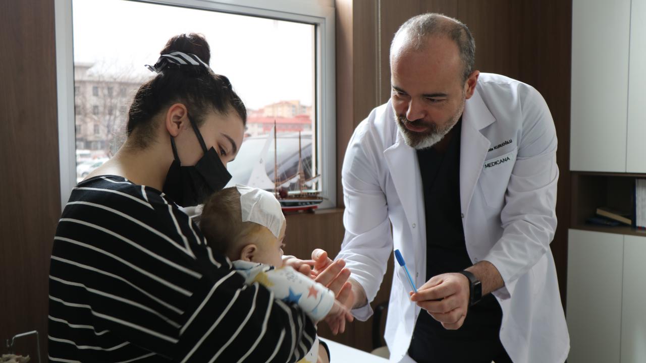 4,5 aylık bebeğin beyninde hidrosefaliye yol açabilecek tümöre rastladıklarını ifade eden Medicana İnternational Samsun Hastanesi Beyin ve Sinir Cerrahisi Uzmanı Doç. Dr. Enis Kuruoğlu, “Çocukluk çağı santral sinir sistemi tümörleri çok görülen tümörlerdir. Lösemiden sonra çocuklukta en sık karşılaştığımız tümörler bunlar. Niko`da 4,5 aylık bir bebek. Ailesi, bebeğin başındaki büyüme ve beslenme bozukluğu şikayeti ile başvurdu. Niko bize geldiğinde aşırı derecede halsiz ve aktif olmayan bir yapısı vardı. Biz de beyin emar(MR) sonucunu değerlendirdik. Beyninde tümörle karşılaştık. Bebeğimiz aynı zamanda down sendromlu. Down sendromunda da özellikle beyin boşlukları tümörleri sıklıkla görülebilir. İnceleme sonucunda beynin içinde bulunan sıvı dolu kısmı dolduran ve ‘hidrosefali’ dediğimiz beyinde basınç artışına neden olan tümörle karşılaştık” dedi.