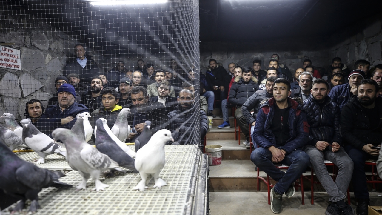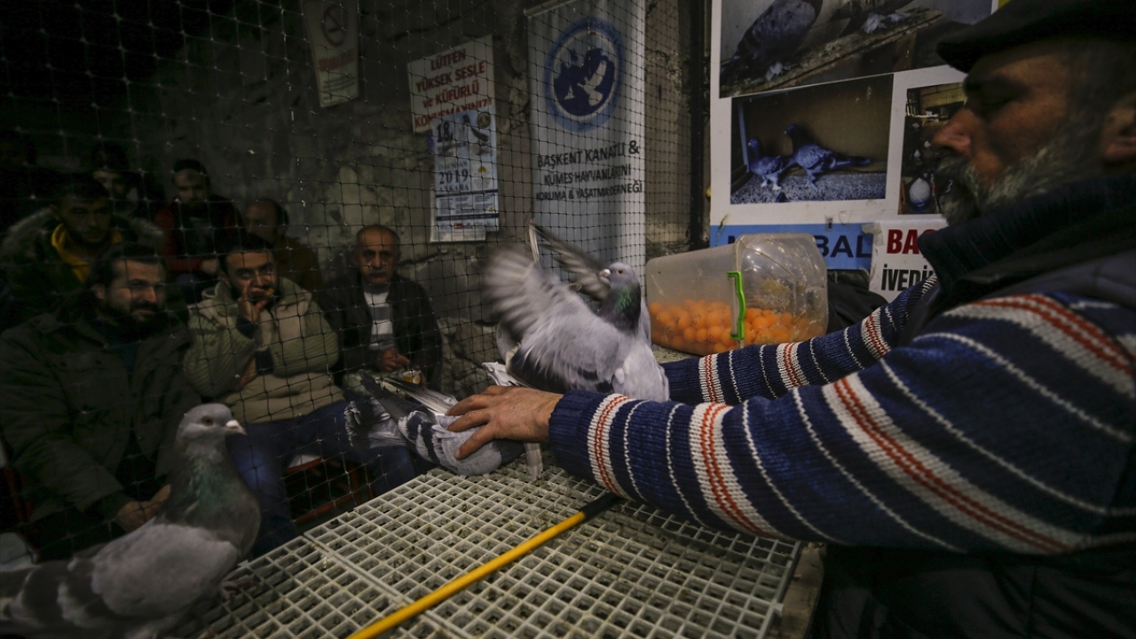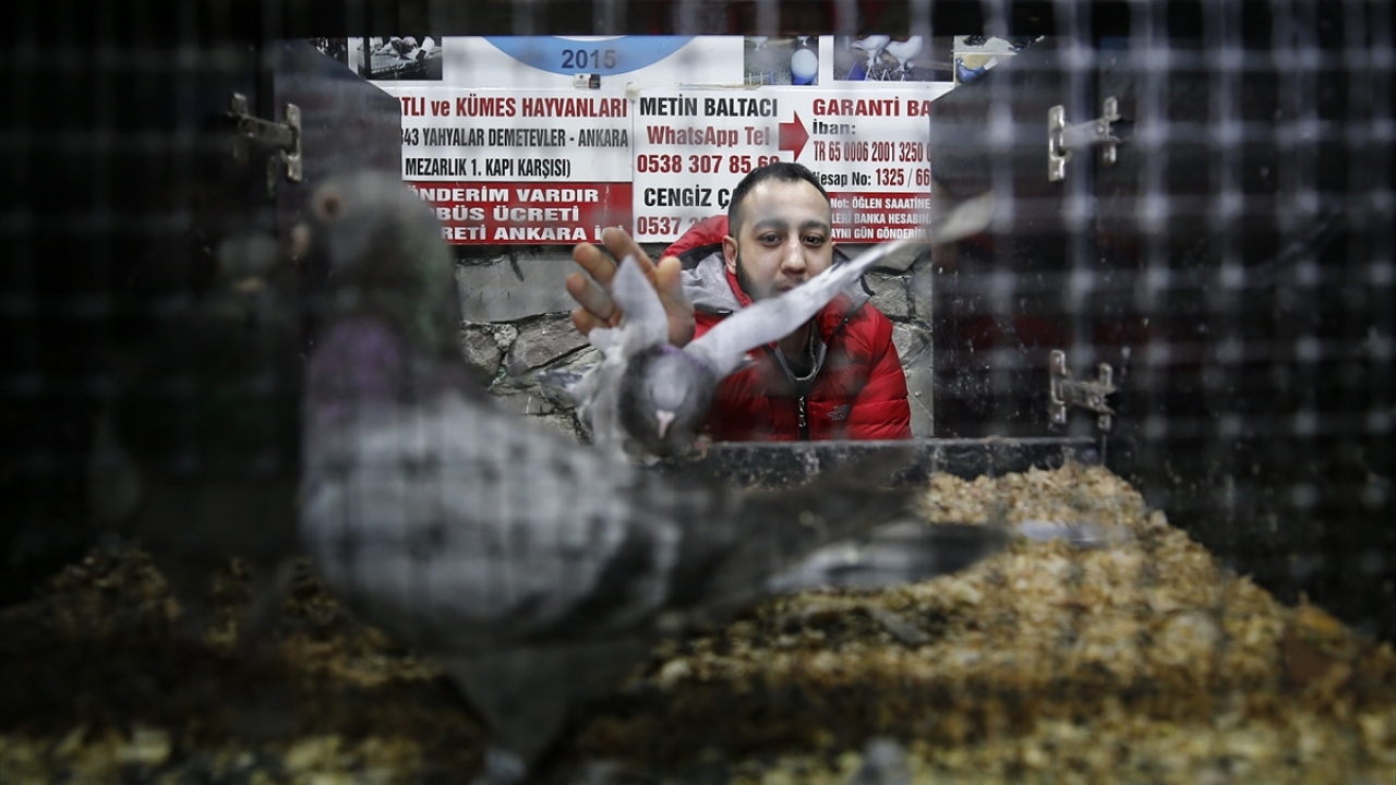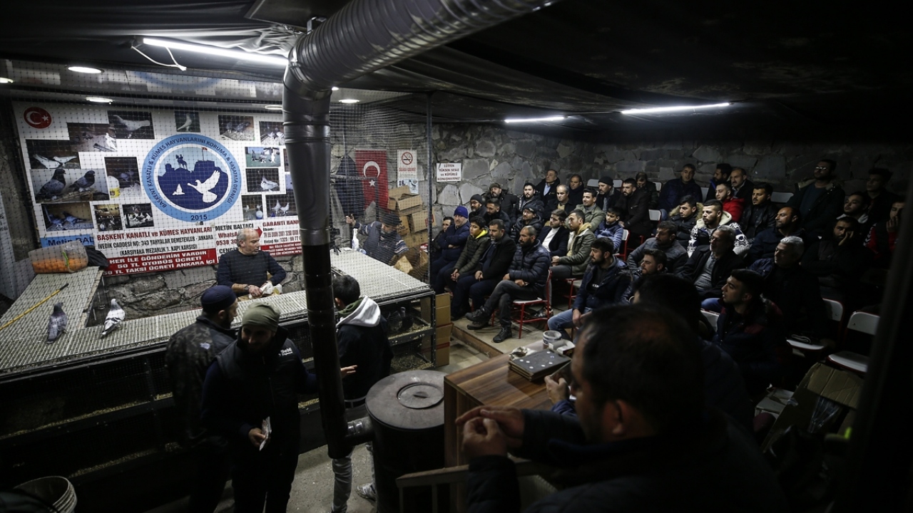 Yenimahalle ilçesinde Başkent Kanatlı ve Kümes Hayvanlarını Araştırma Geliştirme ve Üreticileri Derneği`nin lokalinde, güvercin mezadı için bir araya gelen kuş sahipleri, gözleri gibi baktıkları hayvanlarını görücüye çıkarıp satıyor.