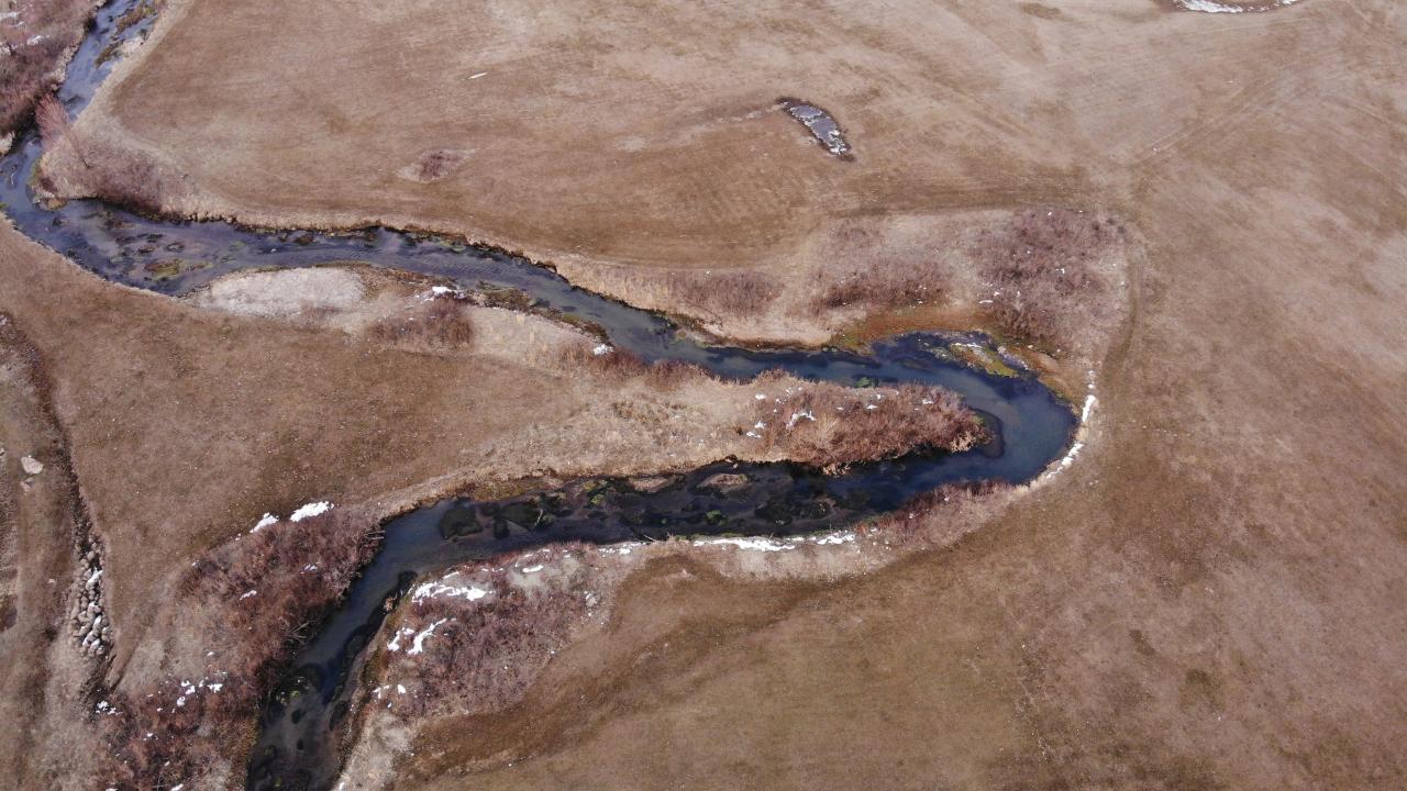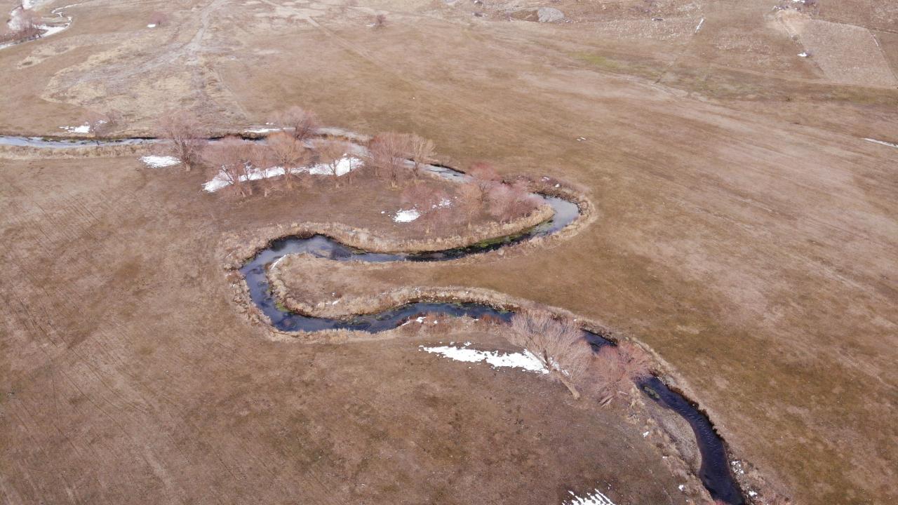Dümdüz ovanın içerisinde kilometrelerce uzayan mendereslerin kıvrımlı yapısı ise havadan görüntülendi.