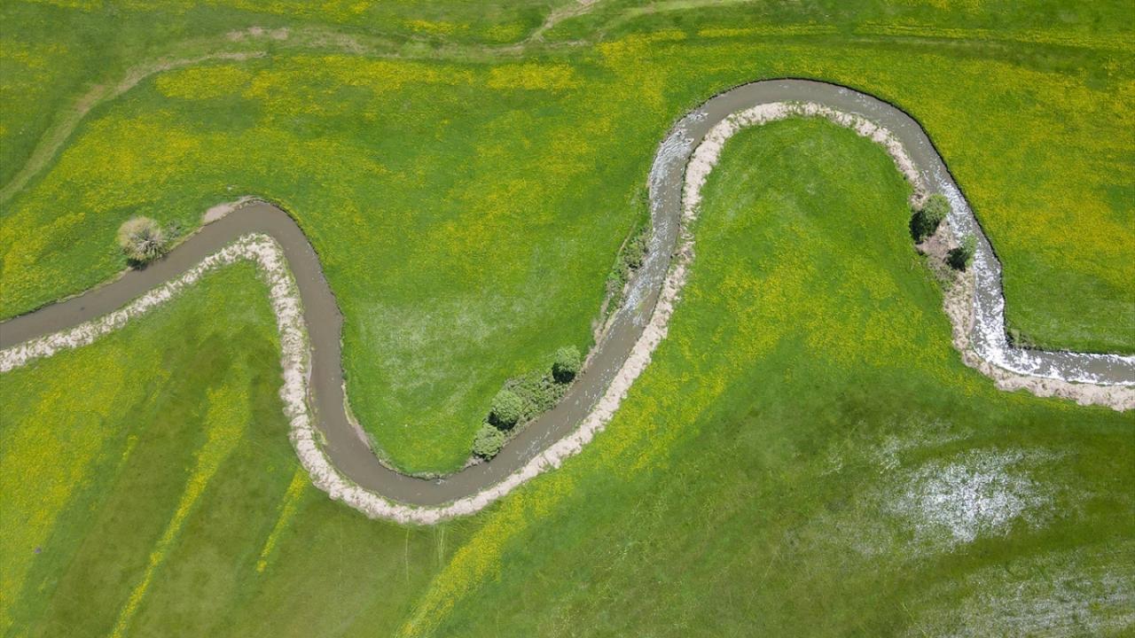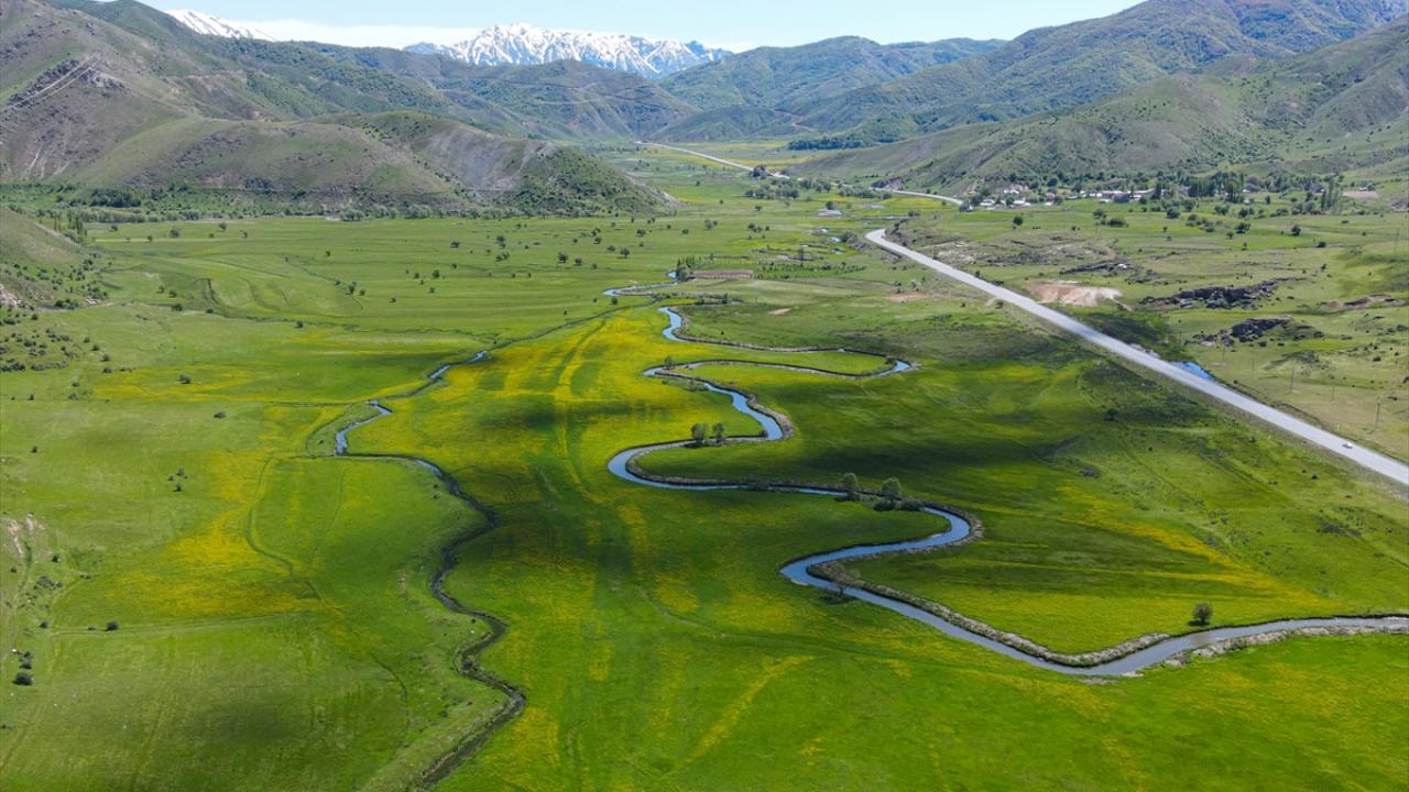 Bitlis'in Tatvan ile Hizan ilçeleri arasında bulunan Güzeldere Vadisi’ndeki menderesler, havaların ısınmasıyla birlikte sarı çiçeklerle bezendi.